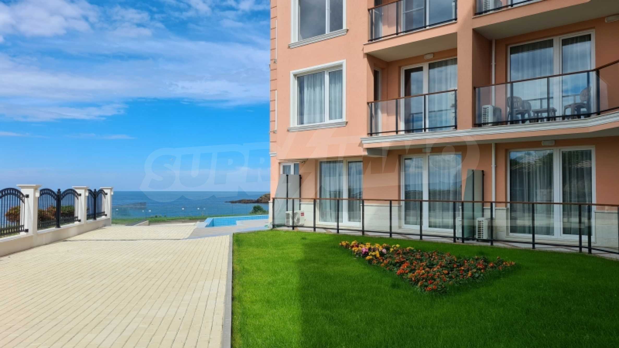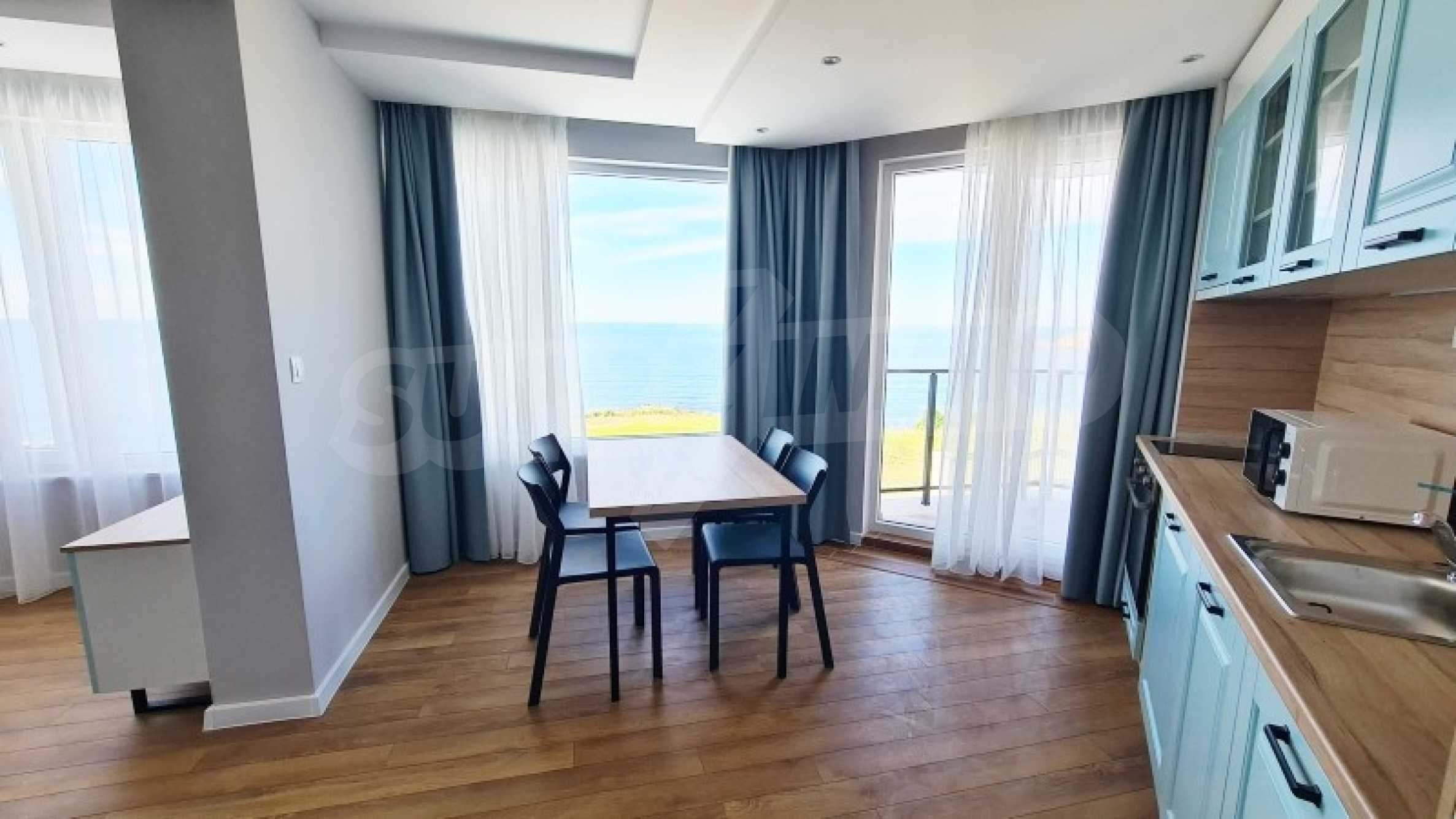 Имотът в такъв комплекс е сбъдната мечта - много стил и елегантност, впечатляваща морска гледка, зелени площи и модерен панорамен басейн на абсолютна първа линия. Луксозните апартаменти и студиа са мебелирани с вкус и модерен подход, създаващ предпоставка за една прекрасна семейна или романтична почивка в този тих и спокоен регион на Българското Черноморие.