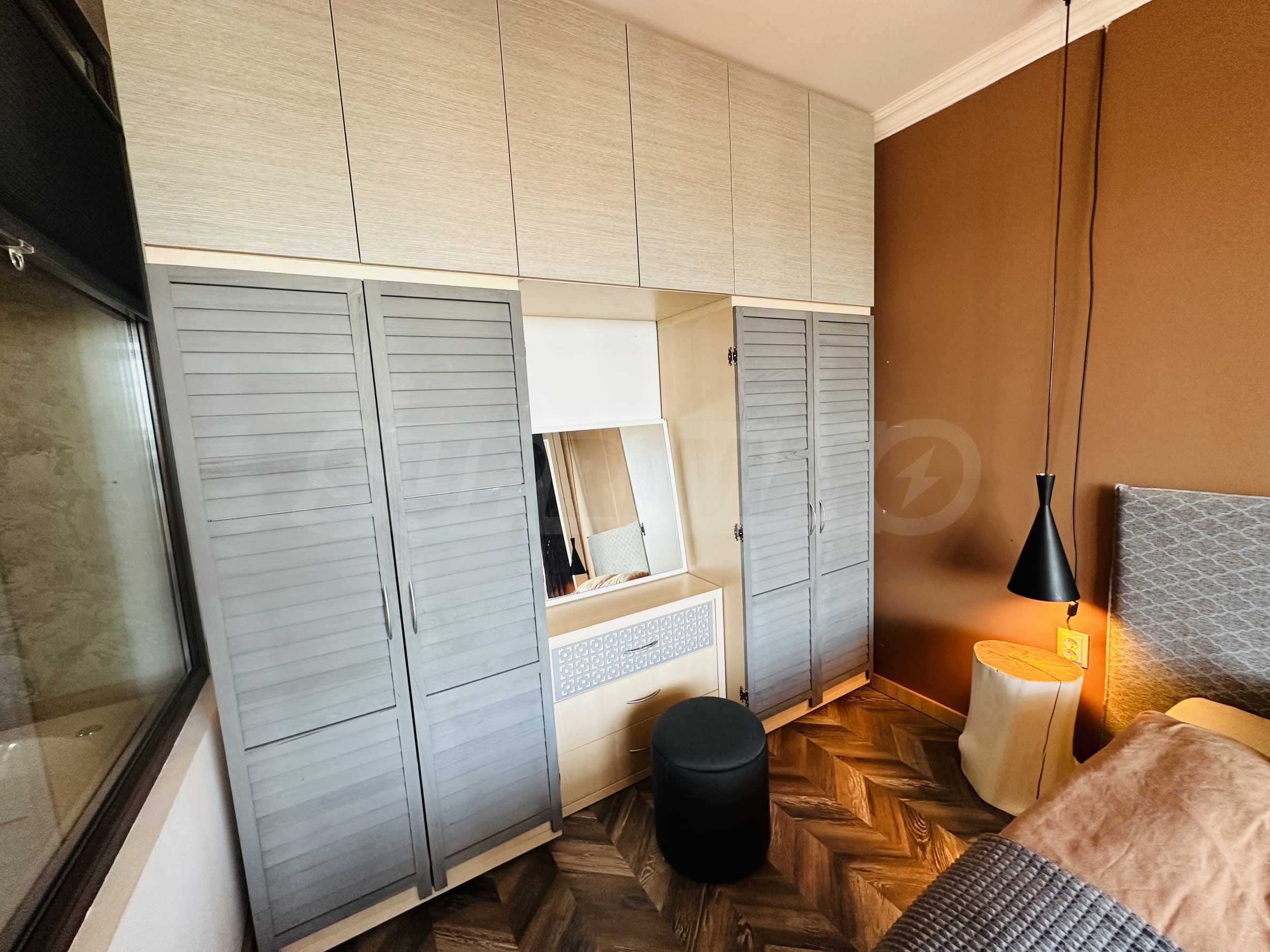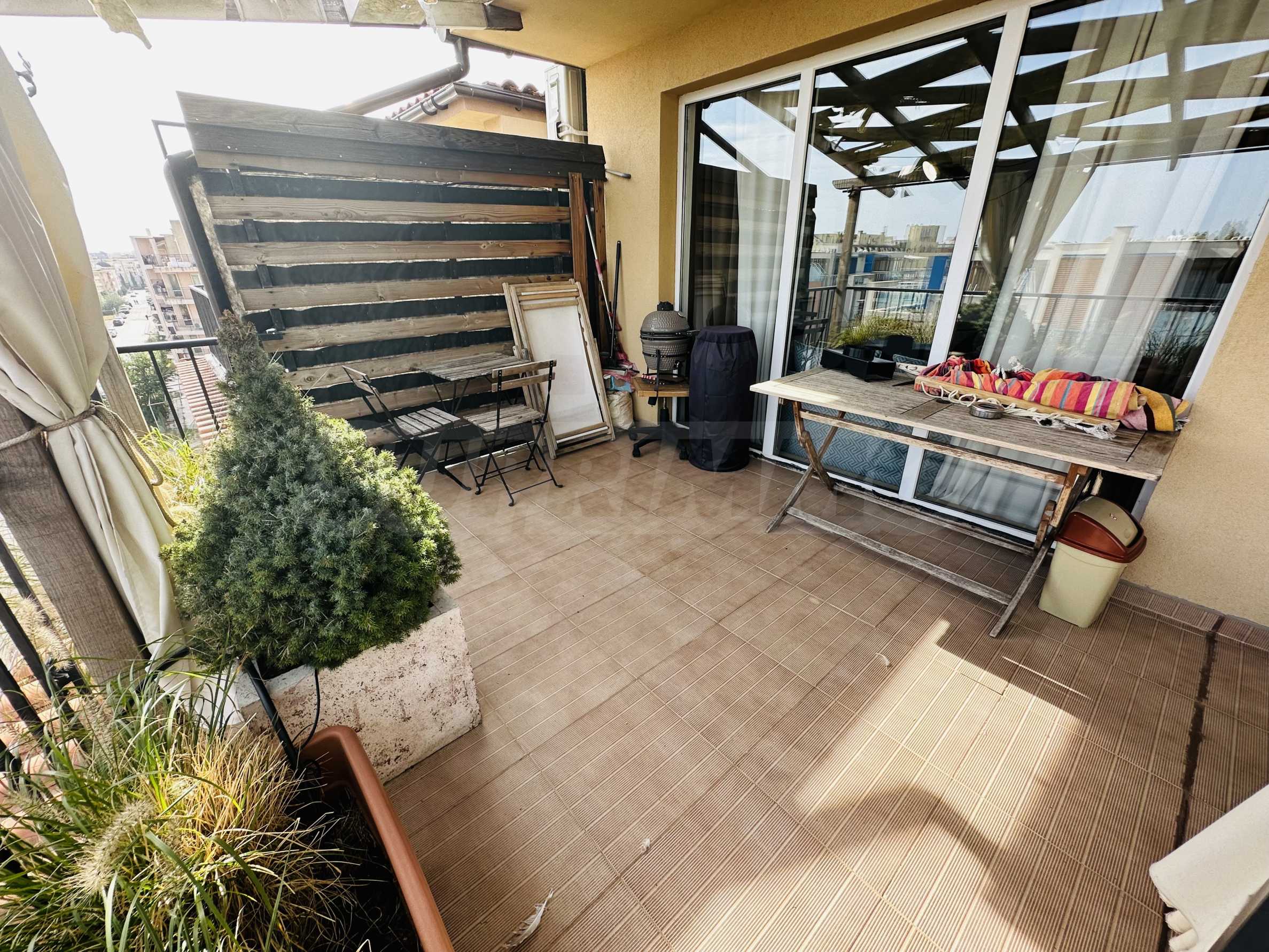 Имотът се намира на 6-и етаж, с обща площ 77.50 кв.м и се състои от дневна със зона за отдих, уютна спалня, баня и обширна тераса. Напълно мебелиран, апартаментът е подходящ вариант както за целогодишно ползване, така и за отдаване под наем през летен сезон.