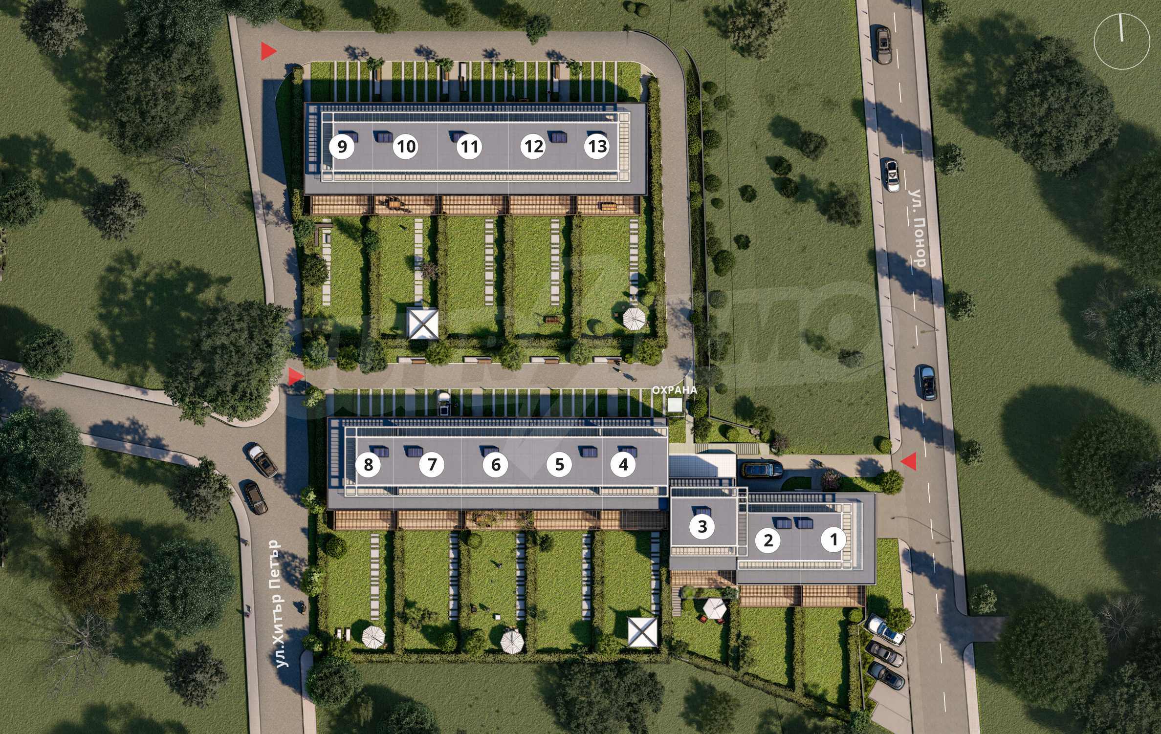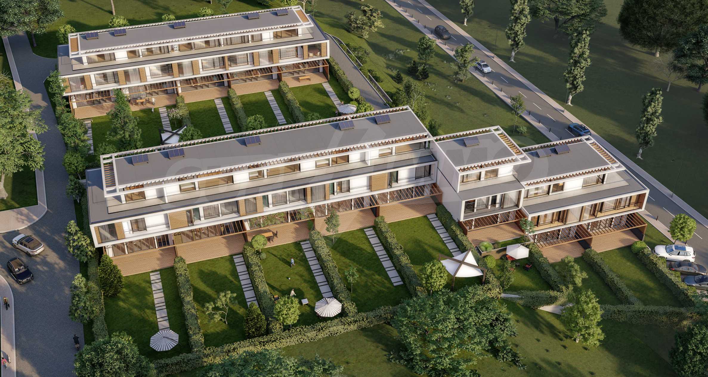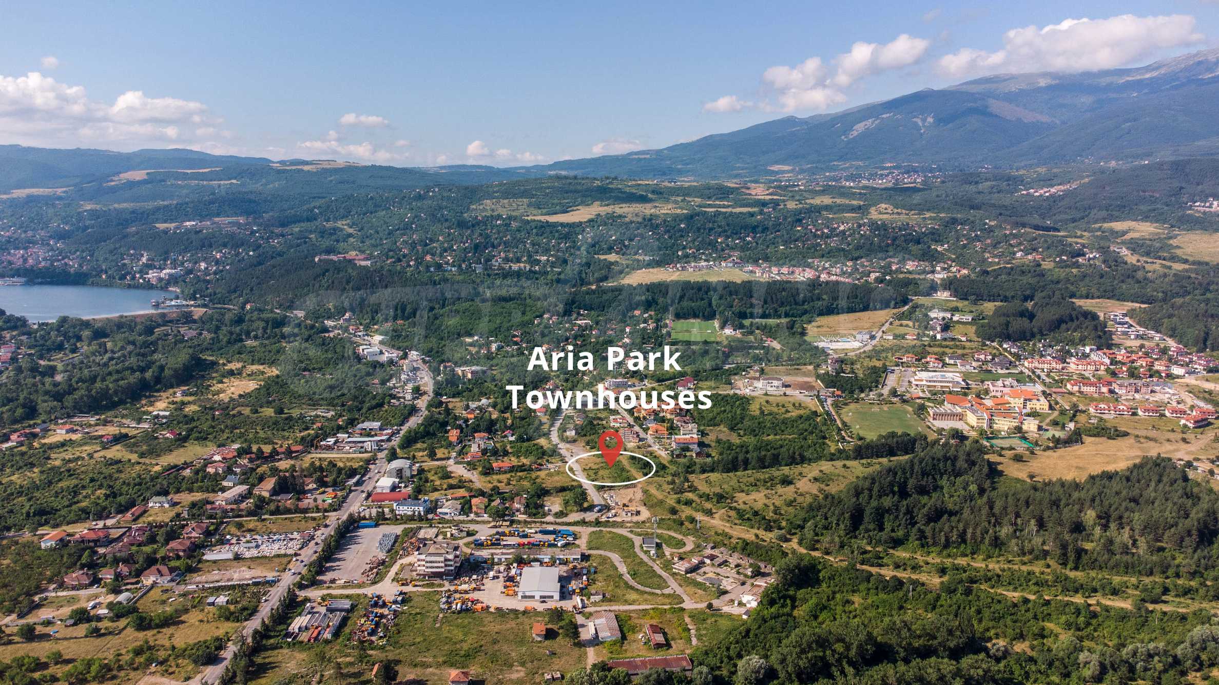 Локацията е избрана неслучайно. Разположен на естествен хълм, Aria Park Townhouses осигурява максимално слънцегреене през всички годишни сезони, както и гаранция за чист и свеж въздух на крачка от града. Достъпът се осъществява по съществуваща инфраструктурна мрежа в отлично състояние, като комплексът също така ще бъде свързан и с централната канализация. Районът е населен и застроен с нови и красиви къщи.