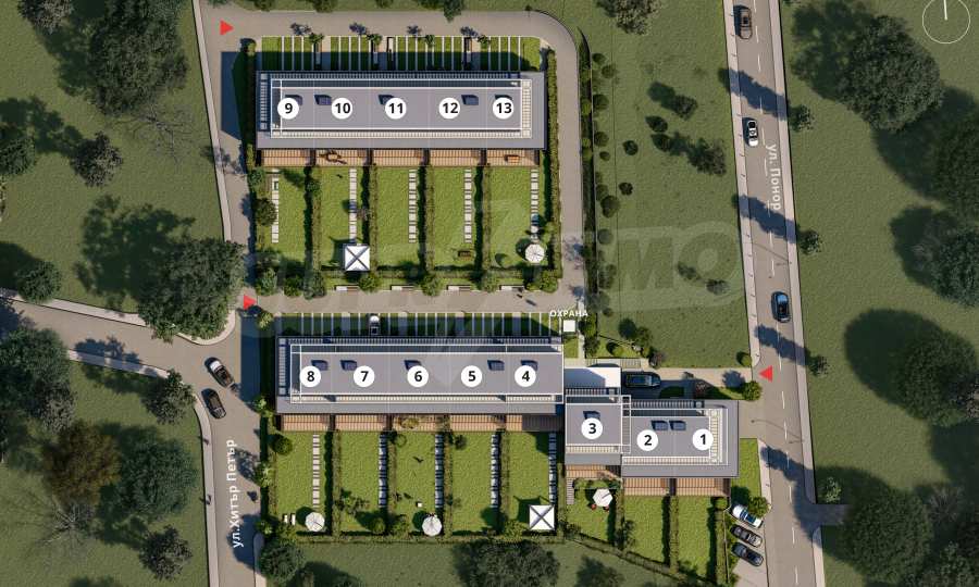 Алеи, подходи и паркинг за гости: 656,67 кв.м.