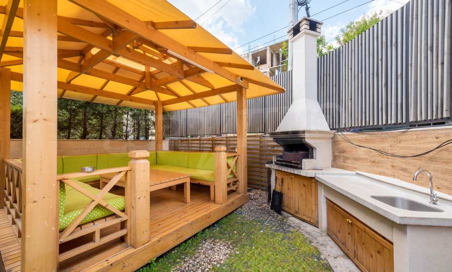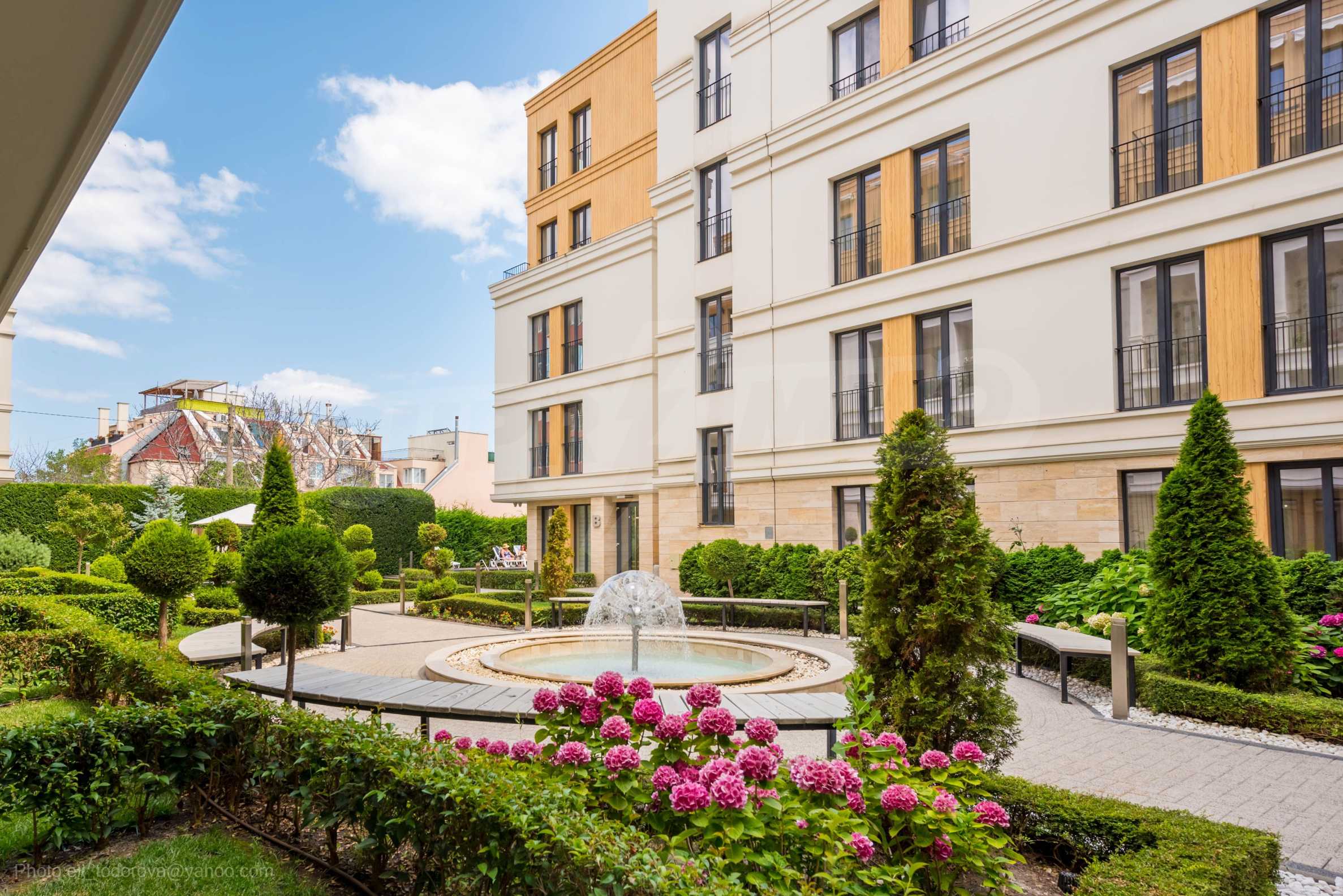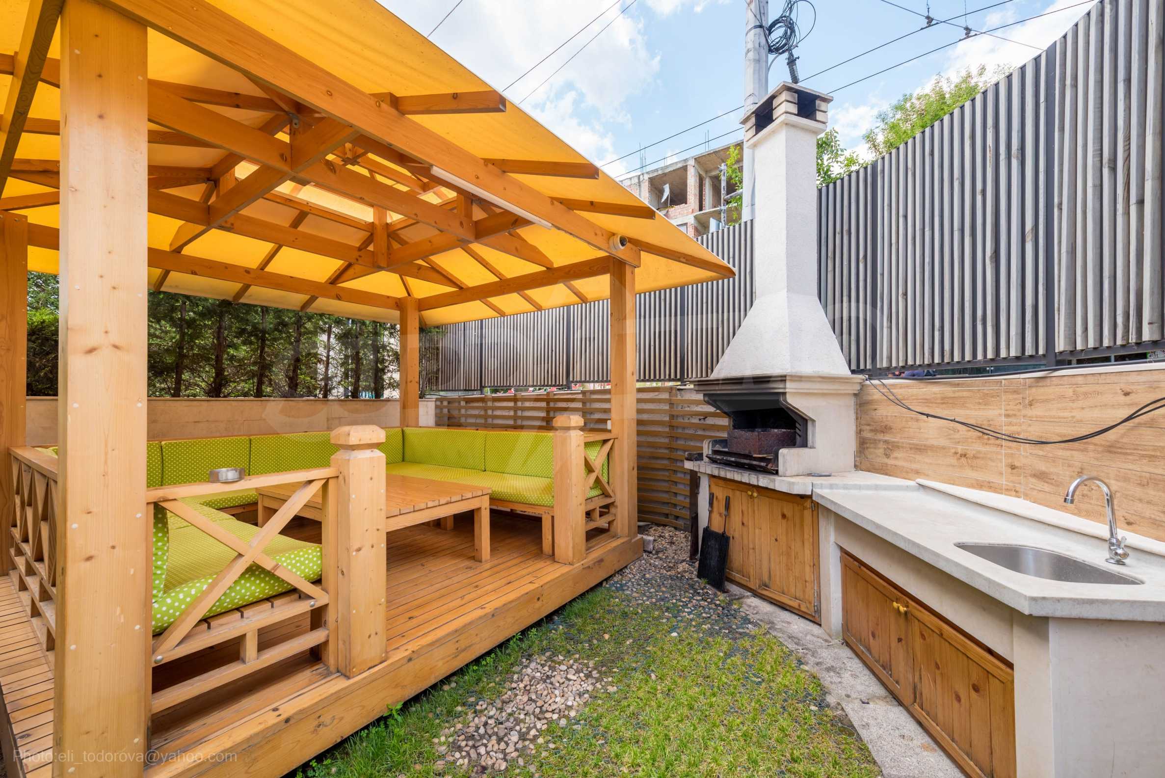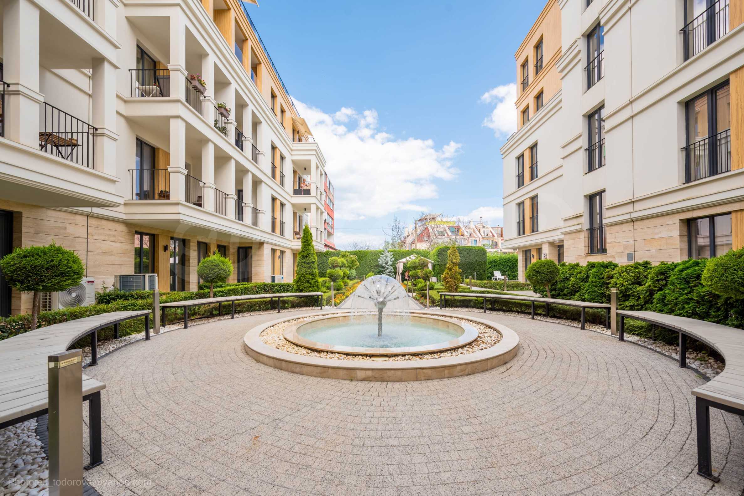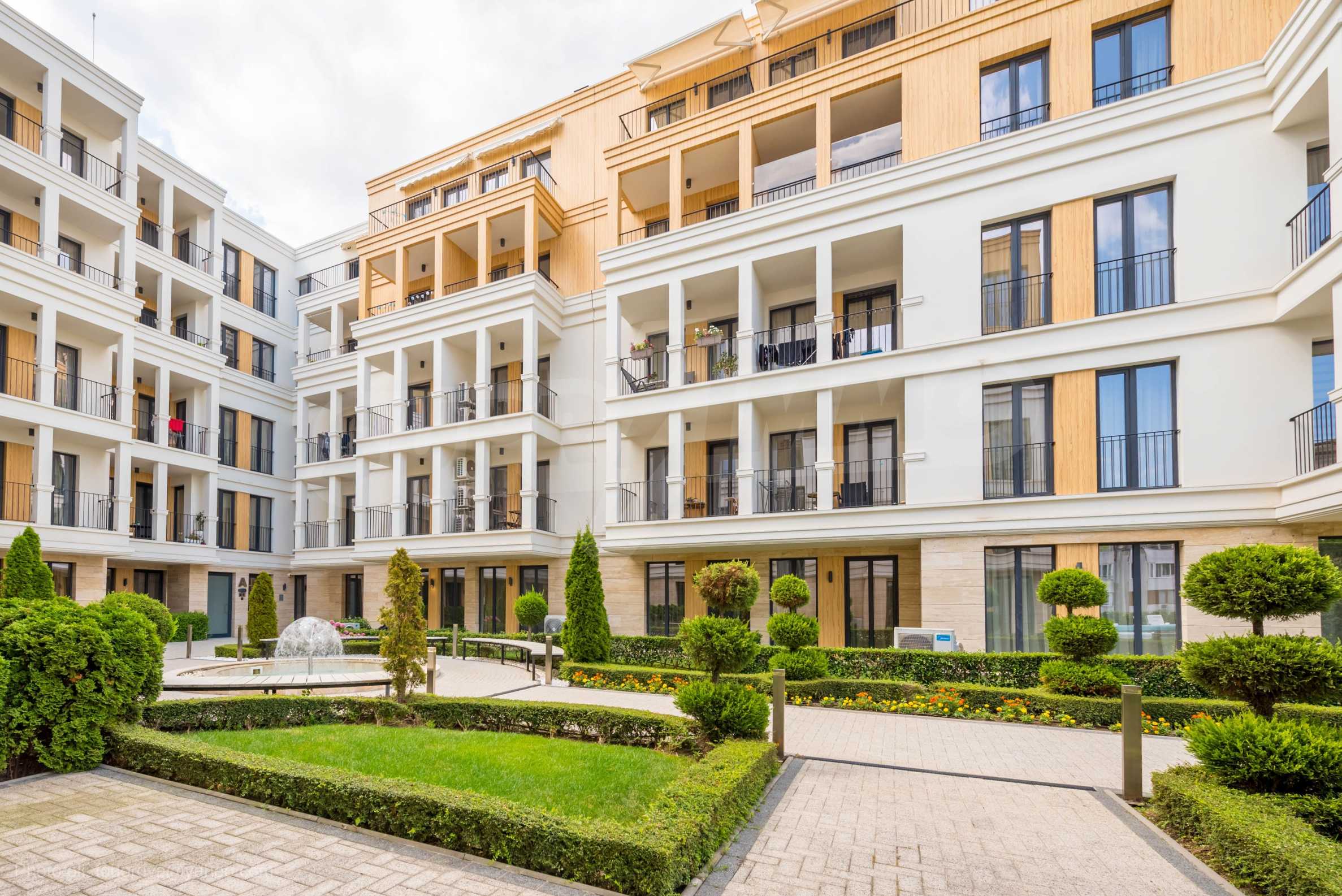 - озеленен парк с фонтан и алеи, басейн, беседка с барбекю, осигурен паркинг;