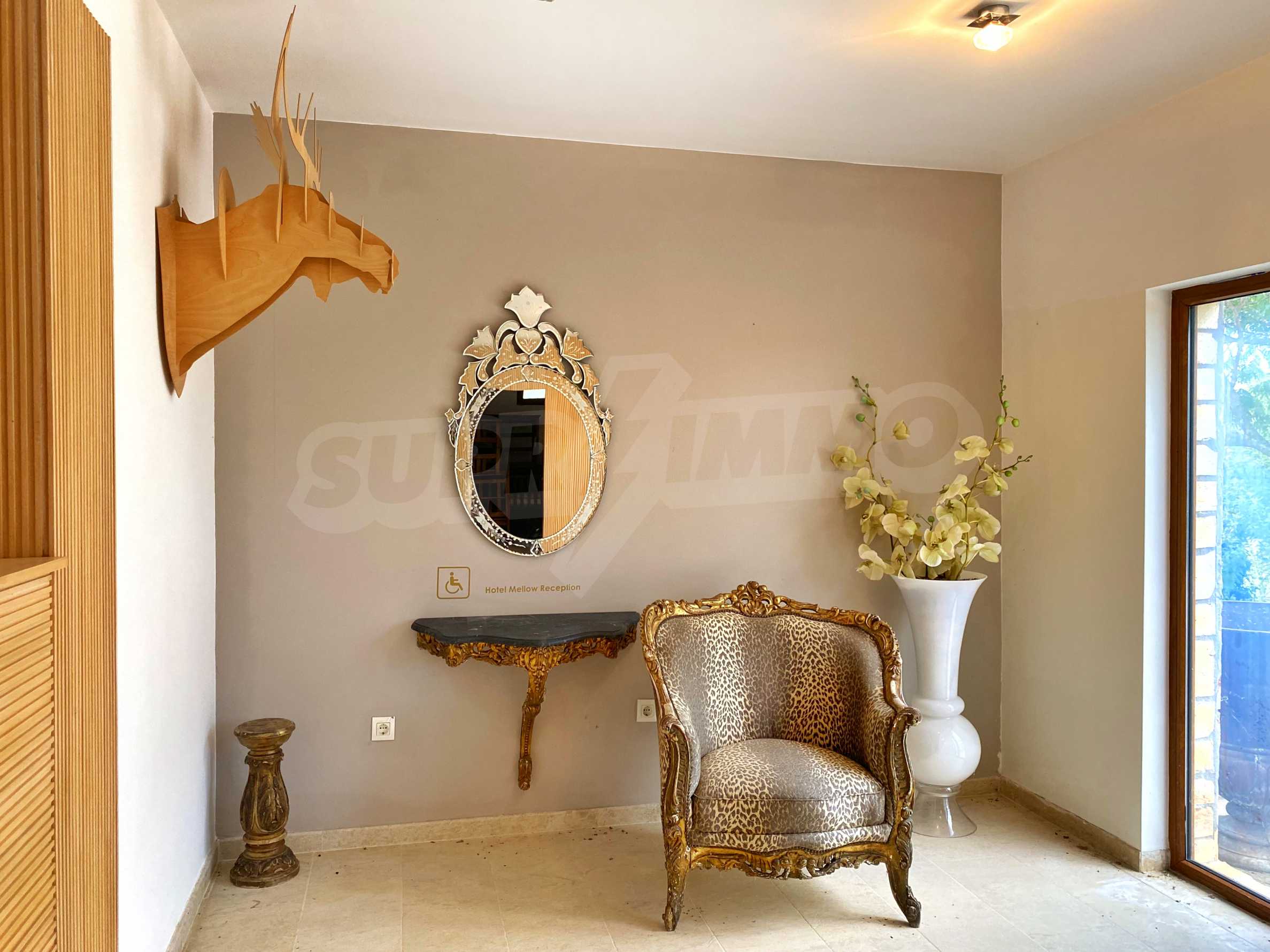 - рецепцията се намира в югозападната част на хотела, с помещения за архив и склад, тоалетна.