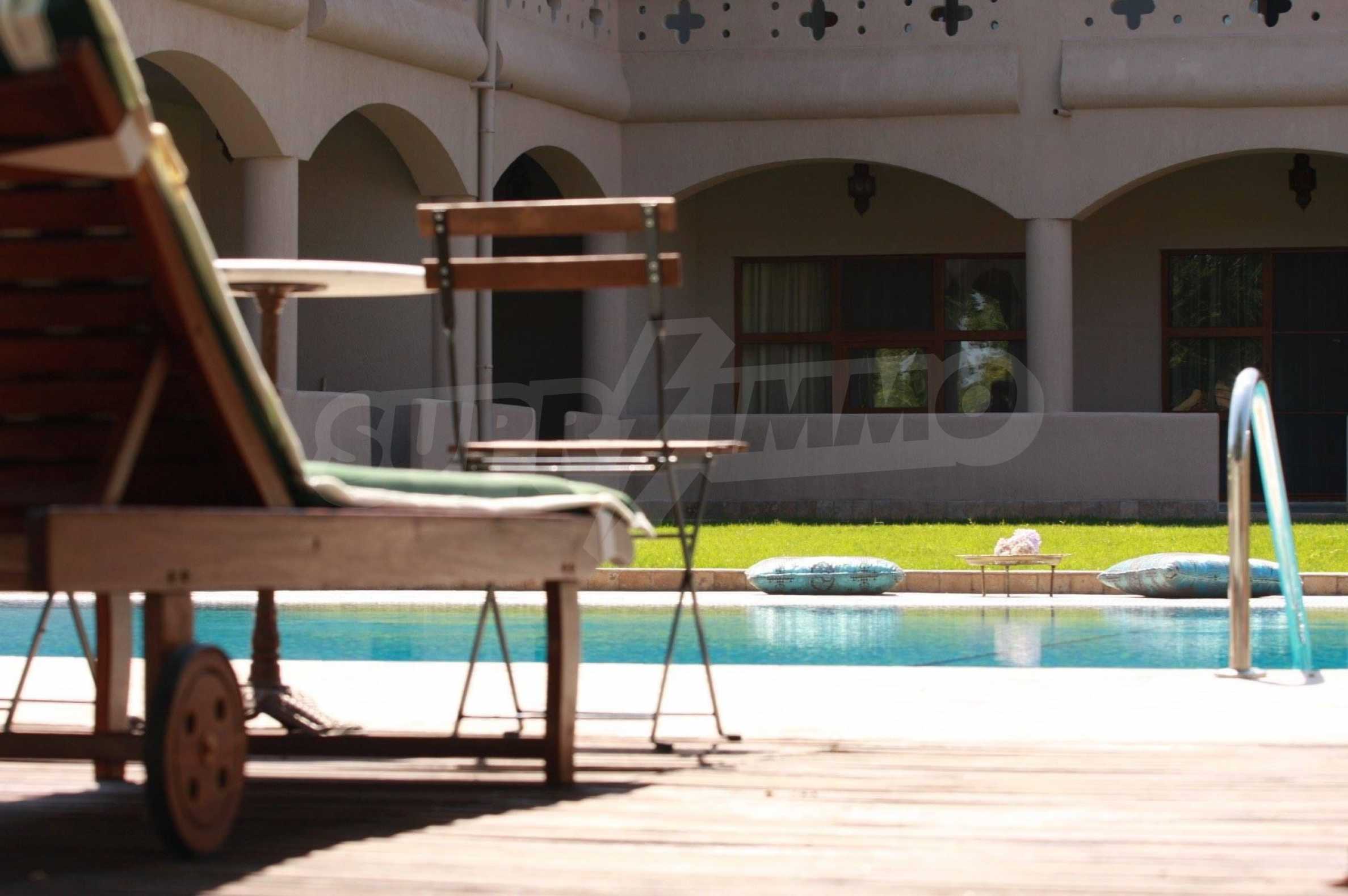 Спа центърът, басейнът, амфитеатърът и готическата стена допринасят за създаването на спокойната атмосфера. Летният бар е чудесно място за незабравими летни вечери под звездите.