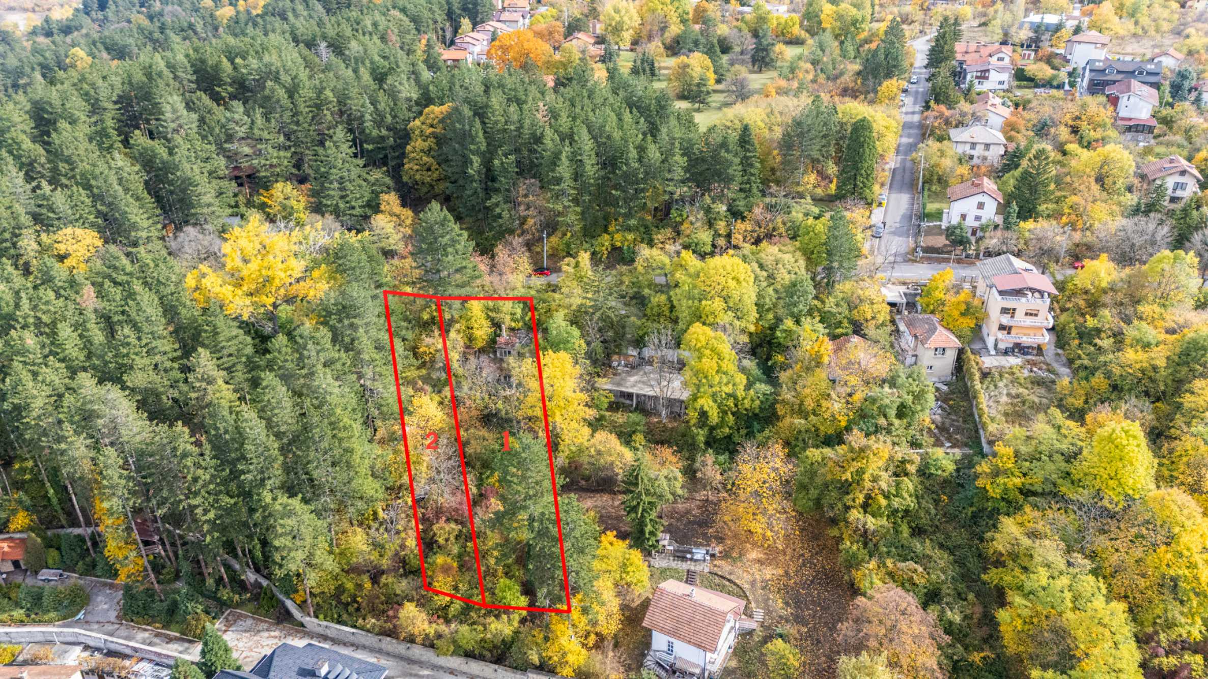 In the first photo in the gallery, the plot is numbered 1. The neighboring one can also be purchased for the purpose of unification and achieving a building with a larger area.