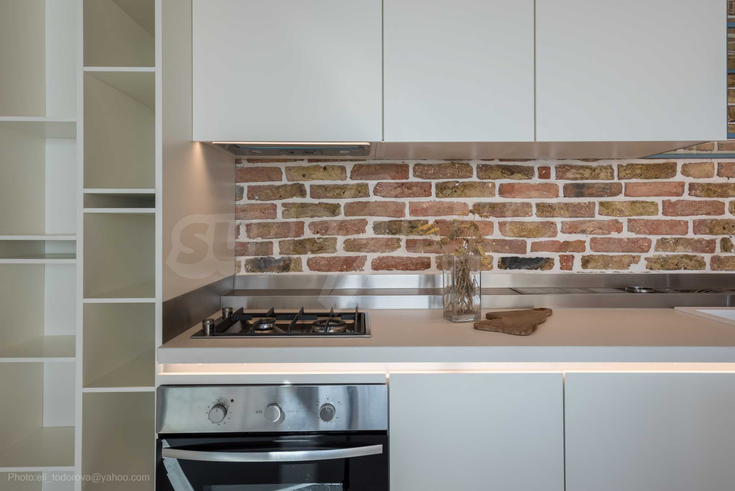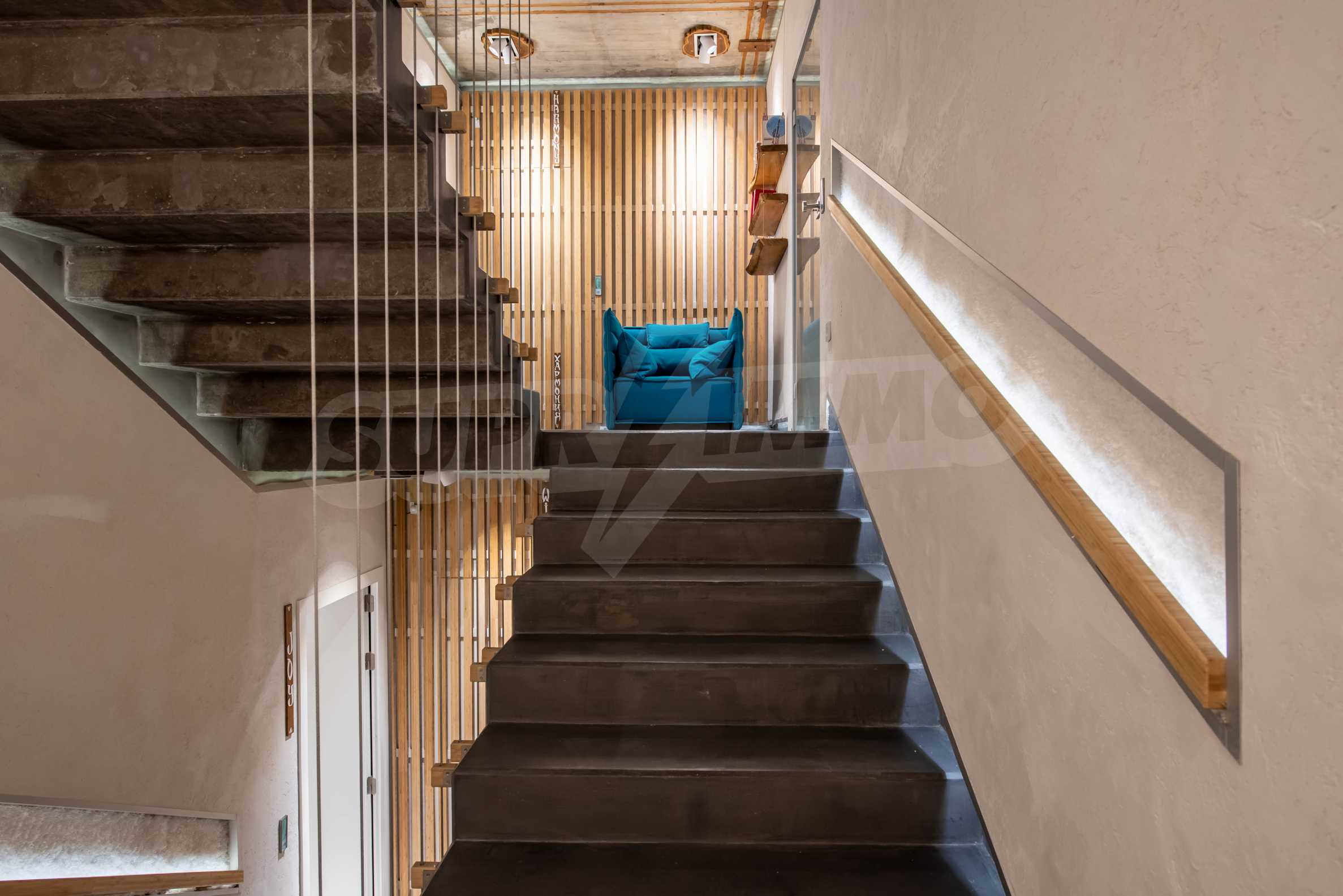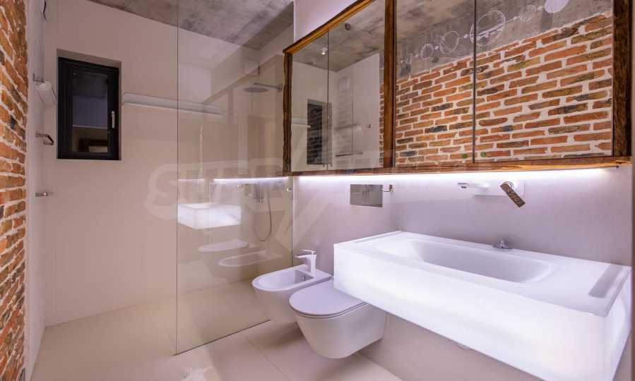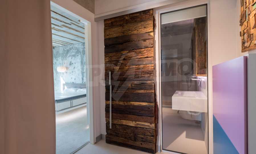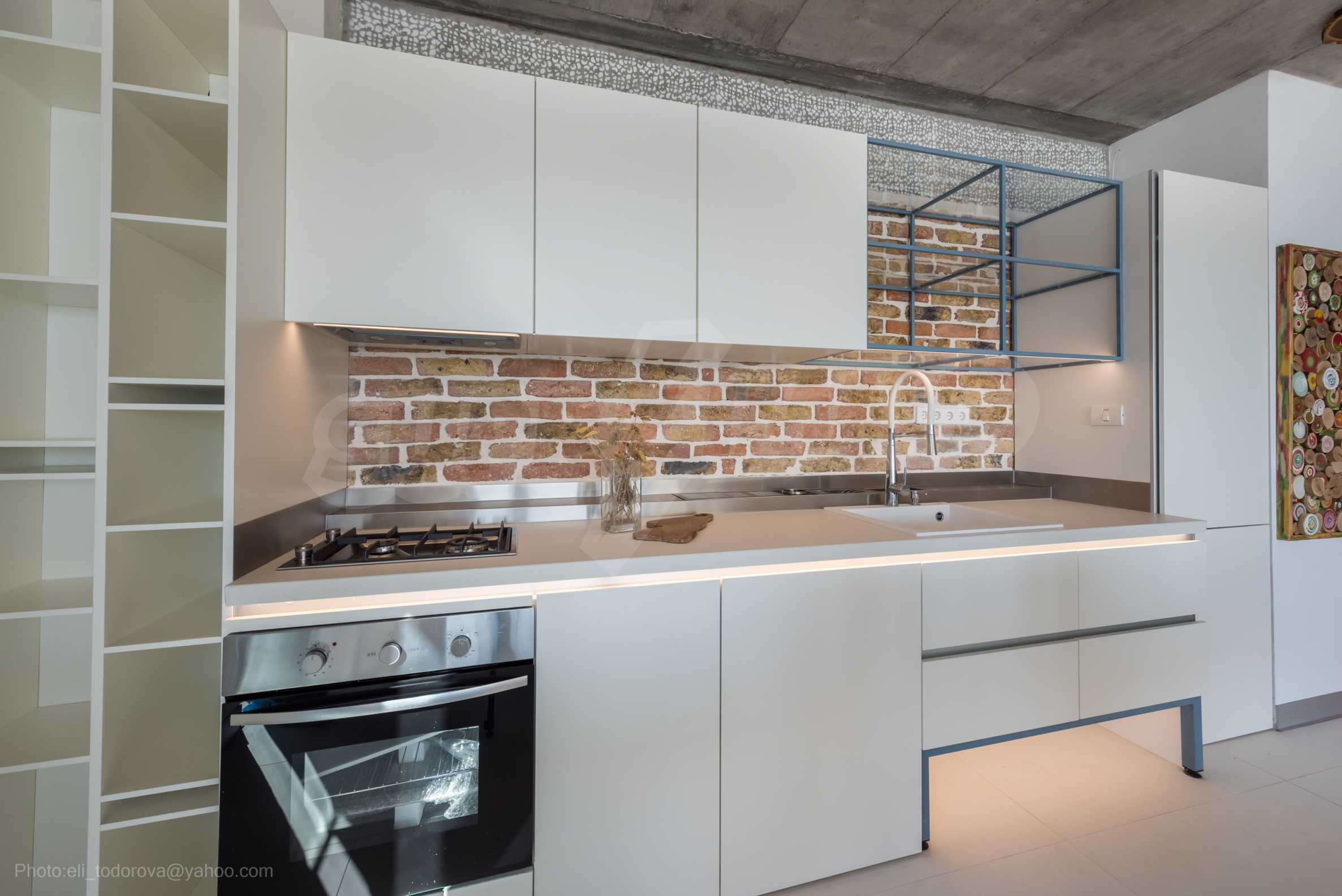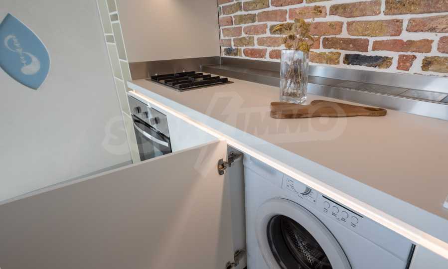 The design is unique - natural and modern, challenging and bright, carrying the message of autonomy, relaxation and sea atmosphere. Natural concrete acacia ornaments are built into the concrete slabs on the ceiling of the apartment. Brick walls and concrete are used for natural decoration, as they are additionally treated, impregnated and primed. Luxuriously furnished, with furniture, kitchen, mattresses and sofas, attractive tiles, lighting fixtures - all of famous Italian brands.