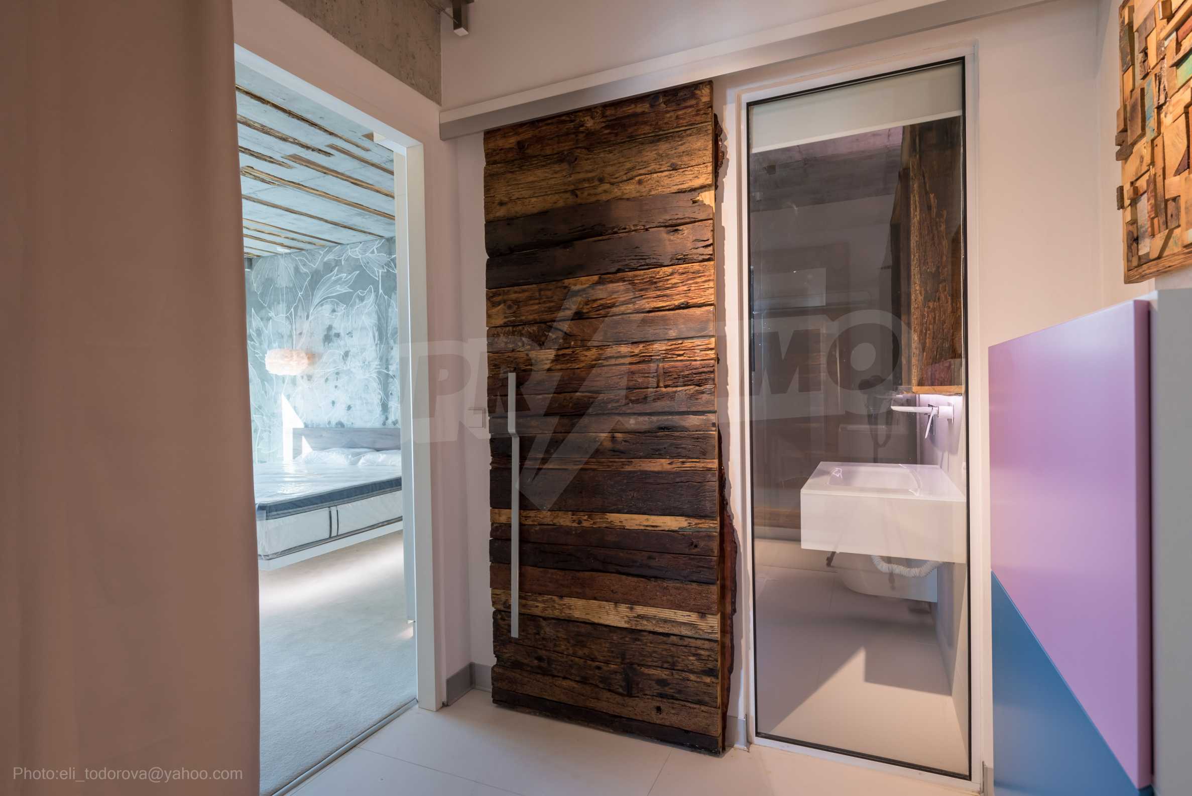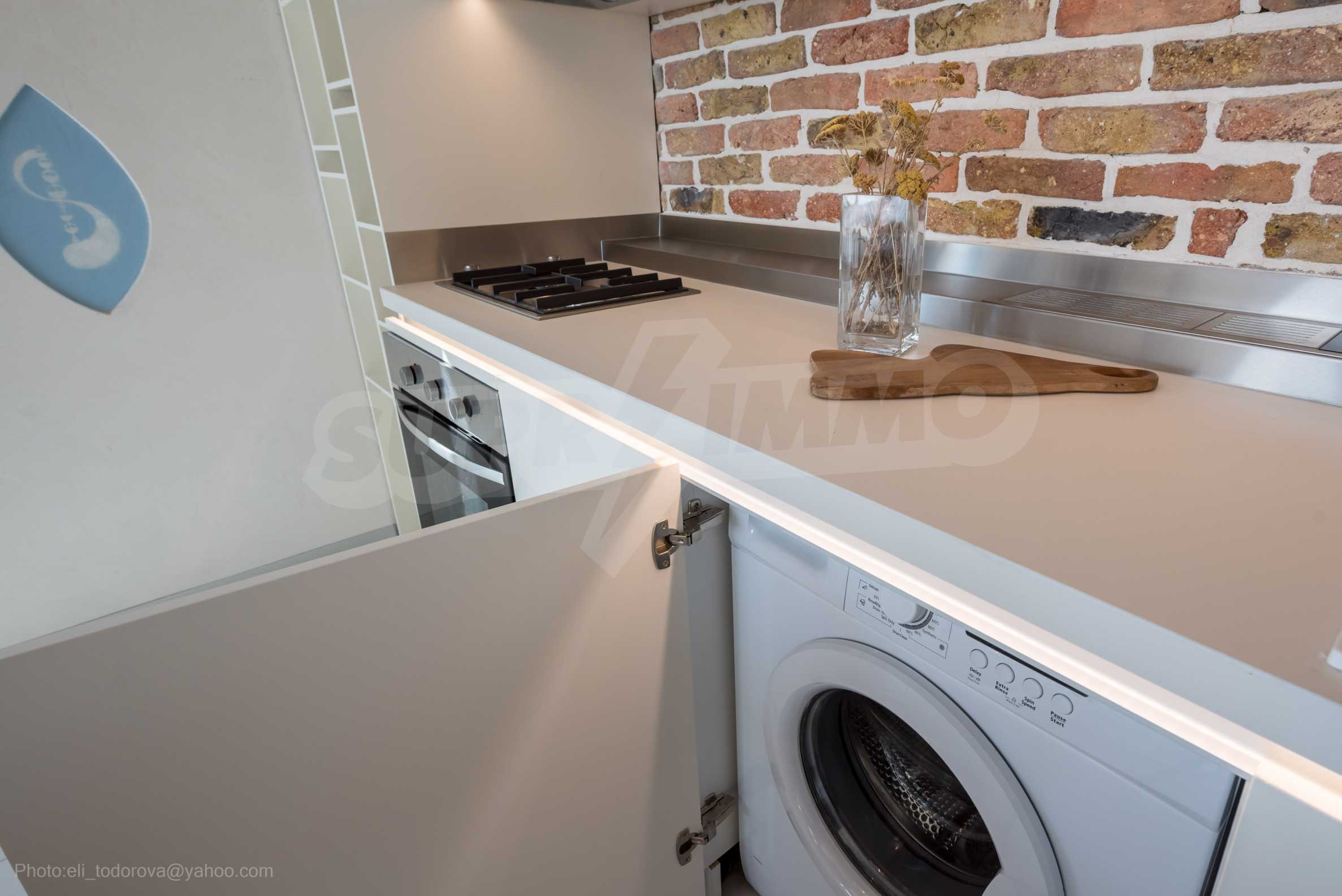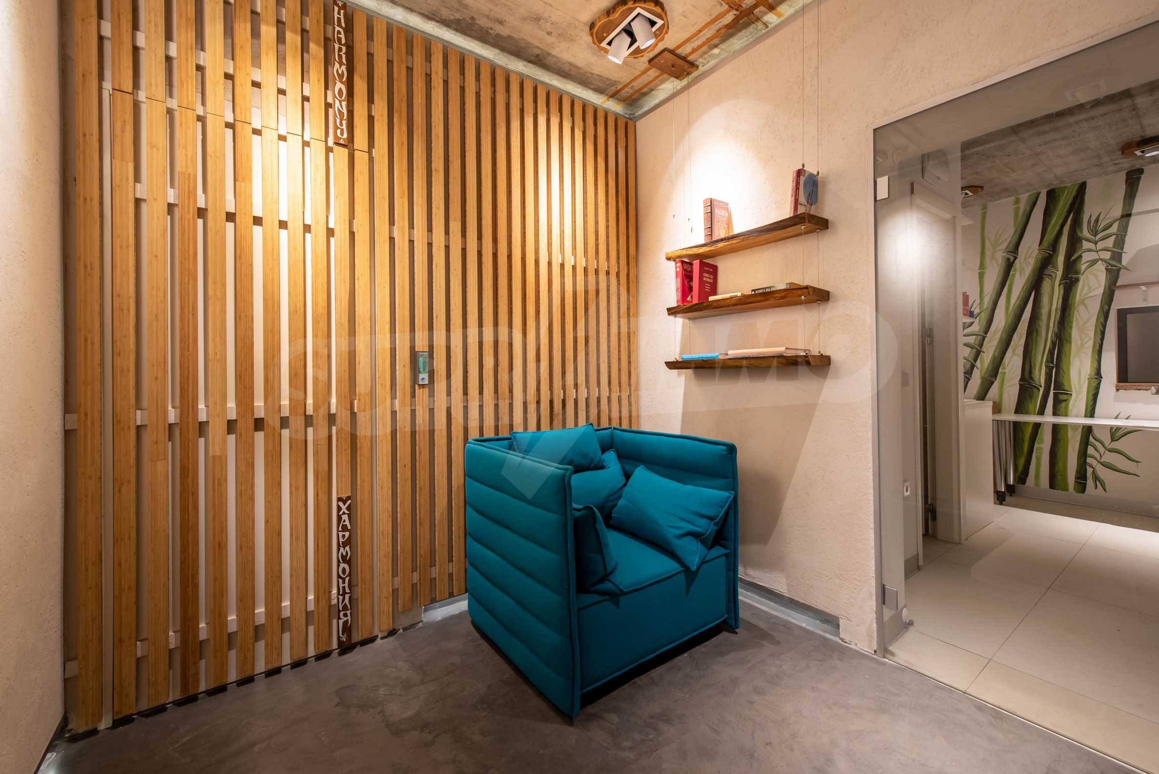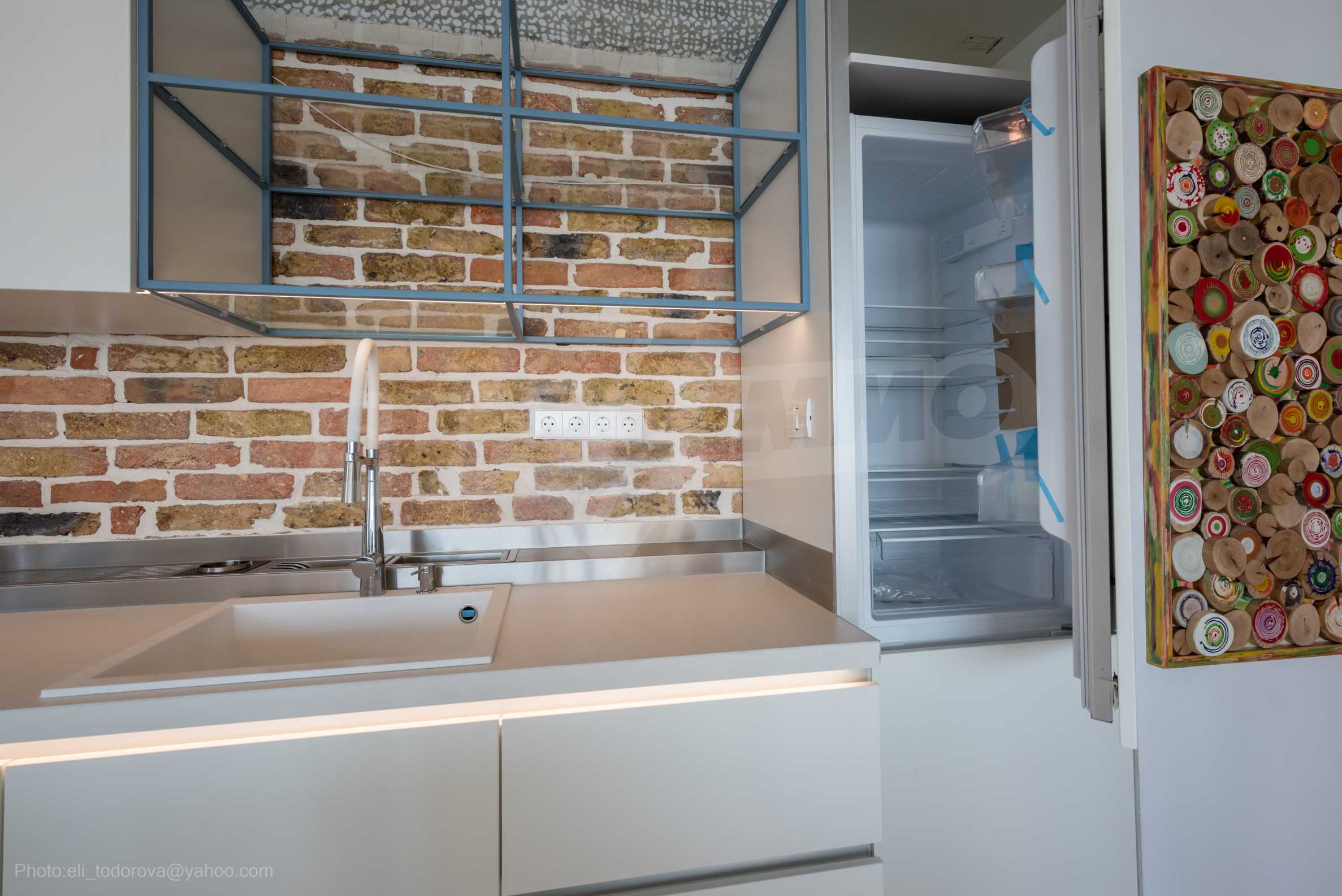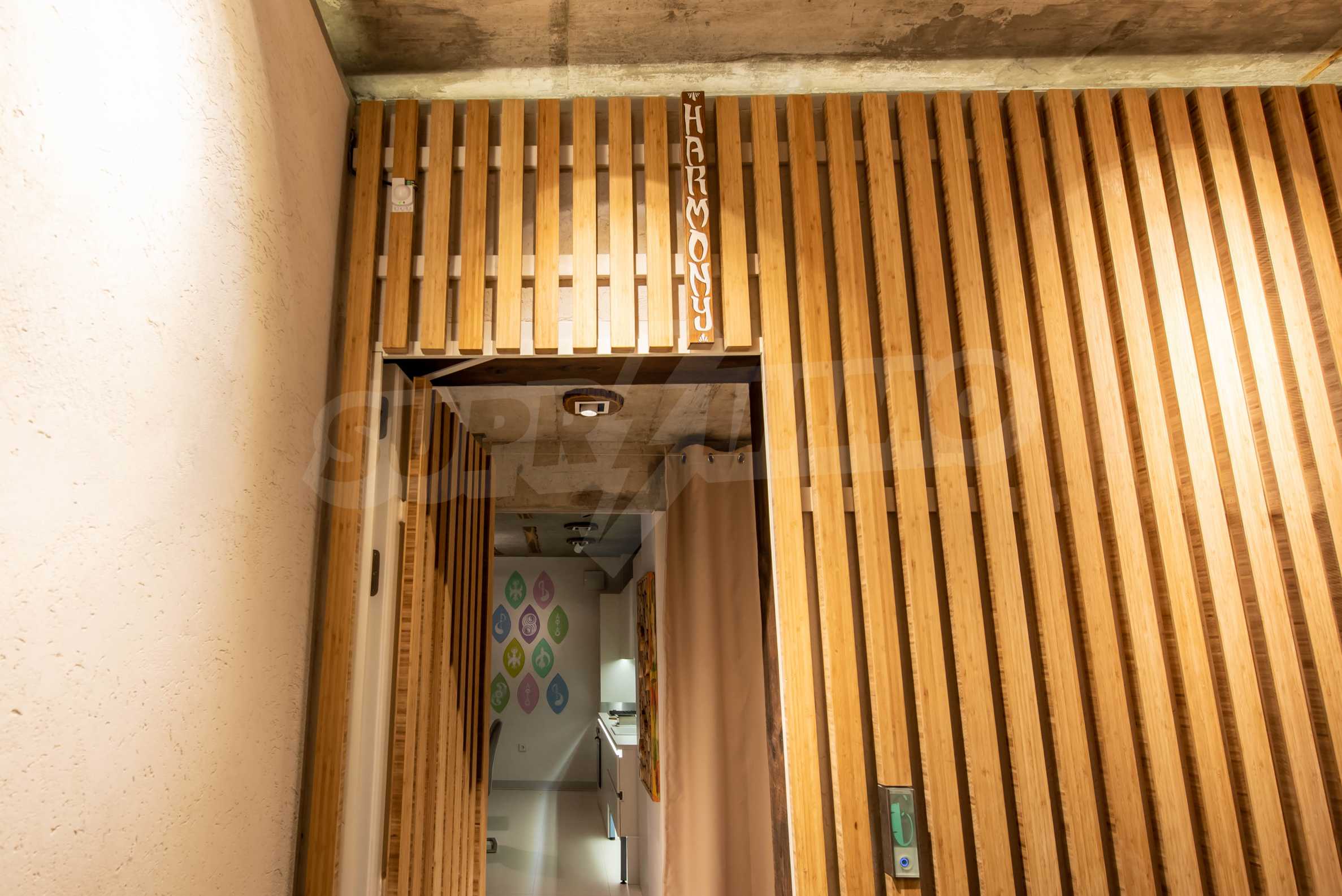 The design is unique - natural and modern, challenging and bright, carrying the message of autonomy, relaxation and sea atmosphere. Natural concrete acacia ornaments are built into the concrete slabs on the ceiling of the apartment. Brick walls and concrete are used for natural decoration, as they are additionally treated, impregnated and primed. Luxuriously furnished, with furniture, kitchen, mattresses and sofas, attractive tiles, lighting fixtures - all of famous Italian brands.
