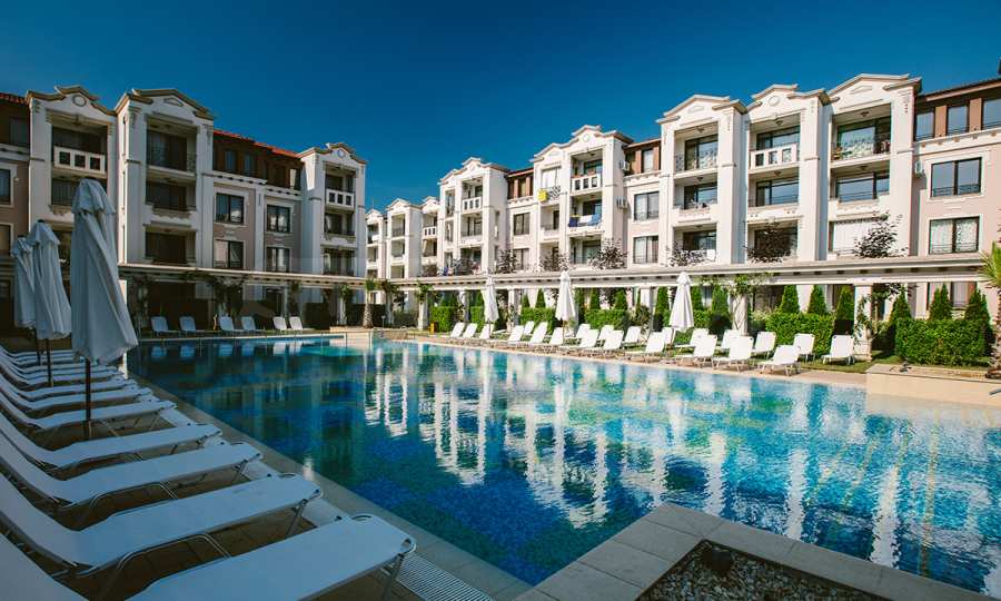 The popular complex has been awarded the prestigious award for luxury construction, architecture and design "LUXURY PROPERTY AWARDS 2016" for "Best Holiday Complex". The premium class complex offers its own, first-class infrastructure for living, family recreation and sports. Built in a Mediterranean style, the complex has numerous water spaces, harmoniously combined with the architecture and the rich landscape, captivating with beauty and giving a feeling of the unity of man and nature.