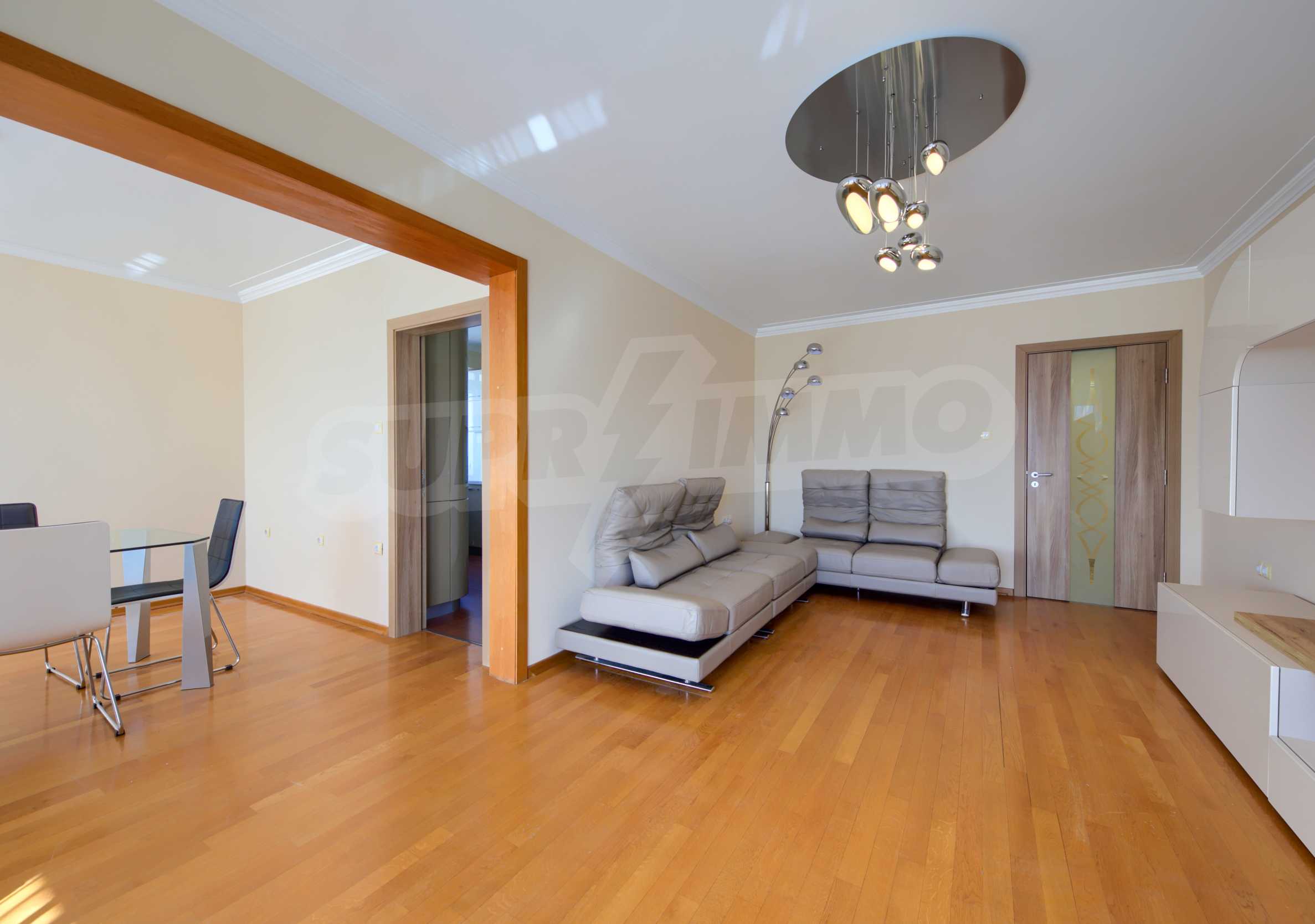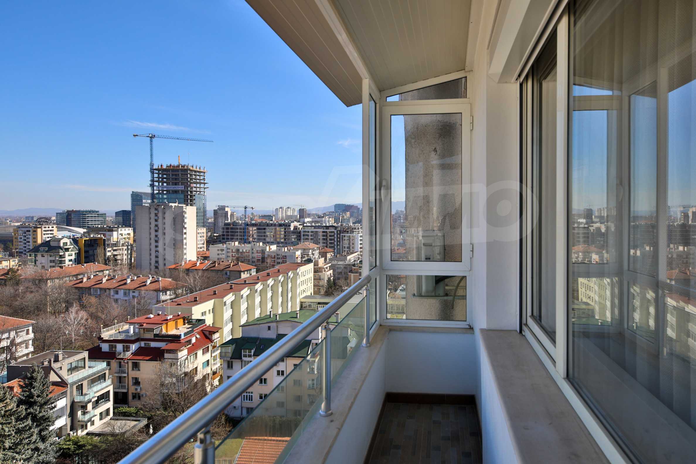 We present to your attention a spacious and completely renovated three-bedroom apartment with panoramic views in the elite district "East" in Sofia.