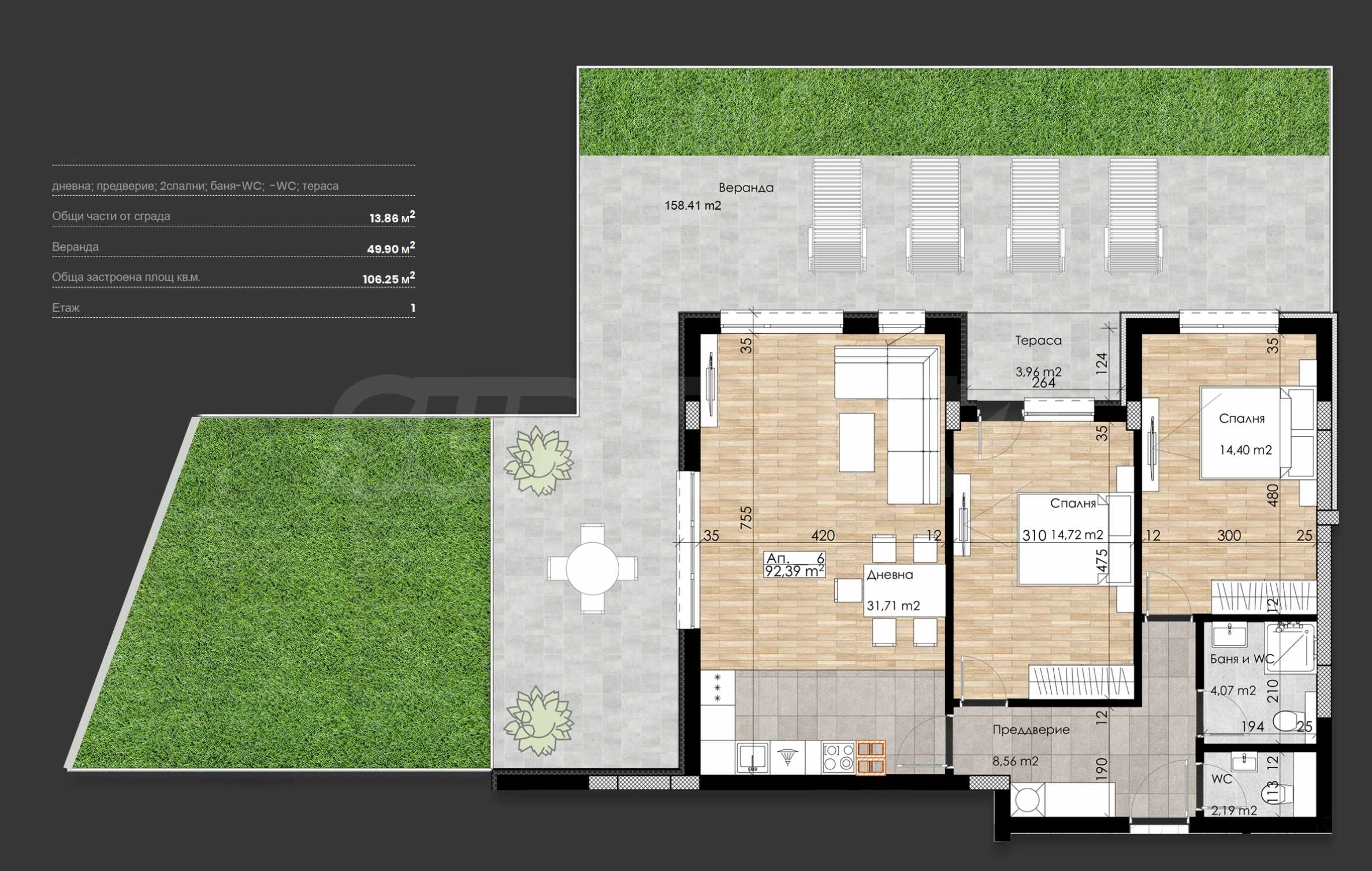 We are pleased to present for sale a three-room apartment with an area of 268.61 m2., located on the 1st floor (out of 4) in a new residential complex, in the southern part of the city of Plovdiv, in the "Ostromila" district.
