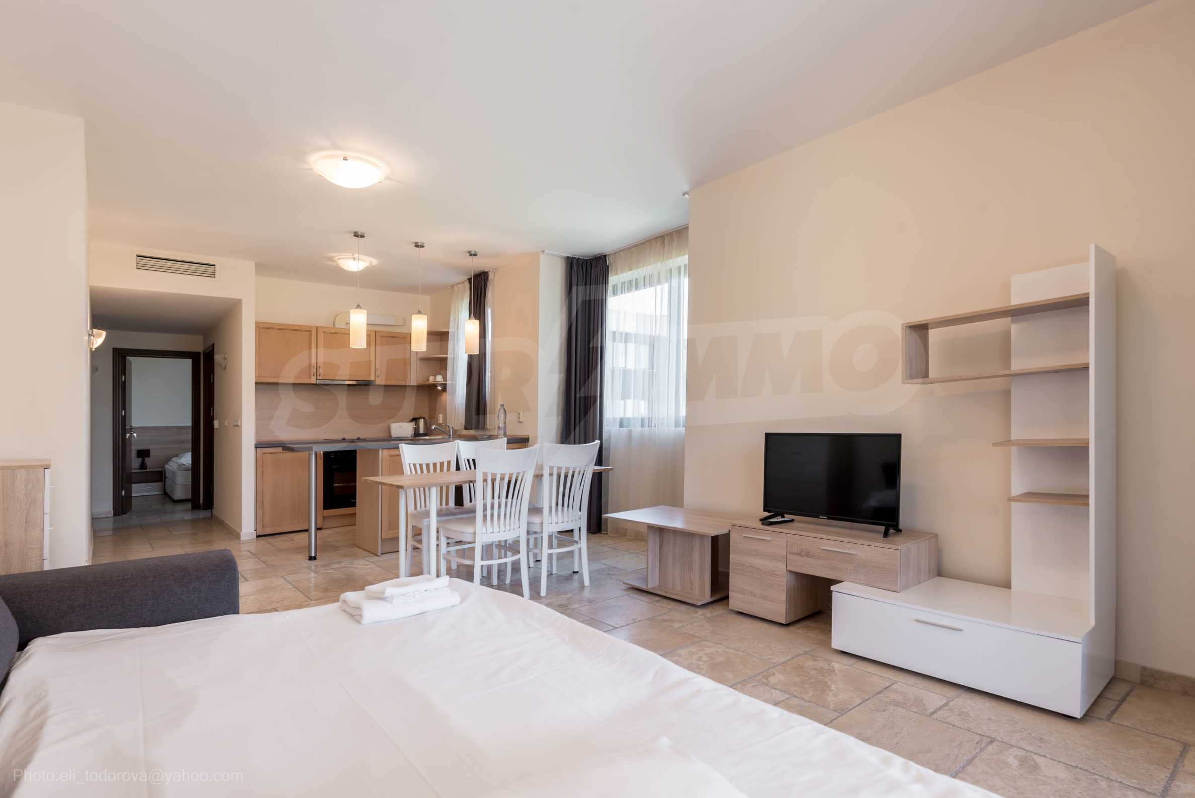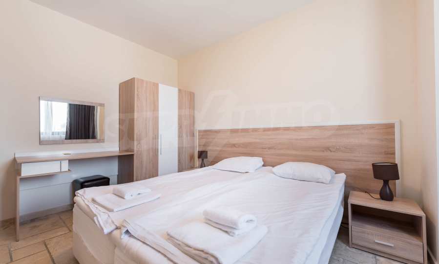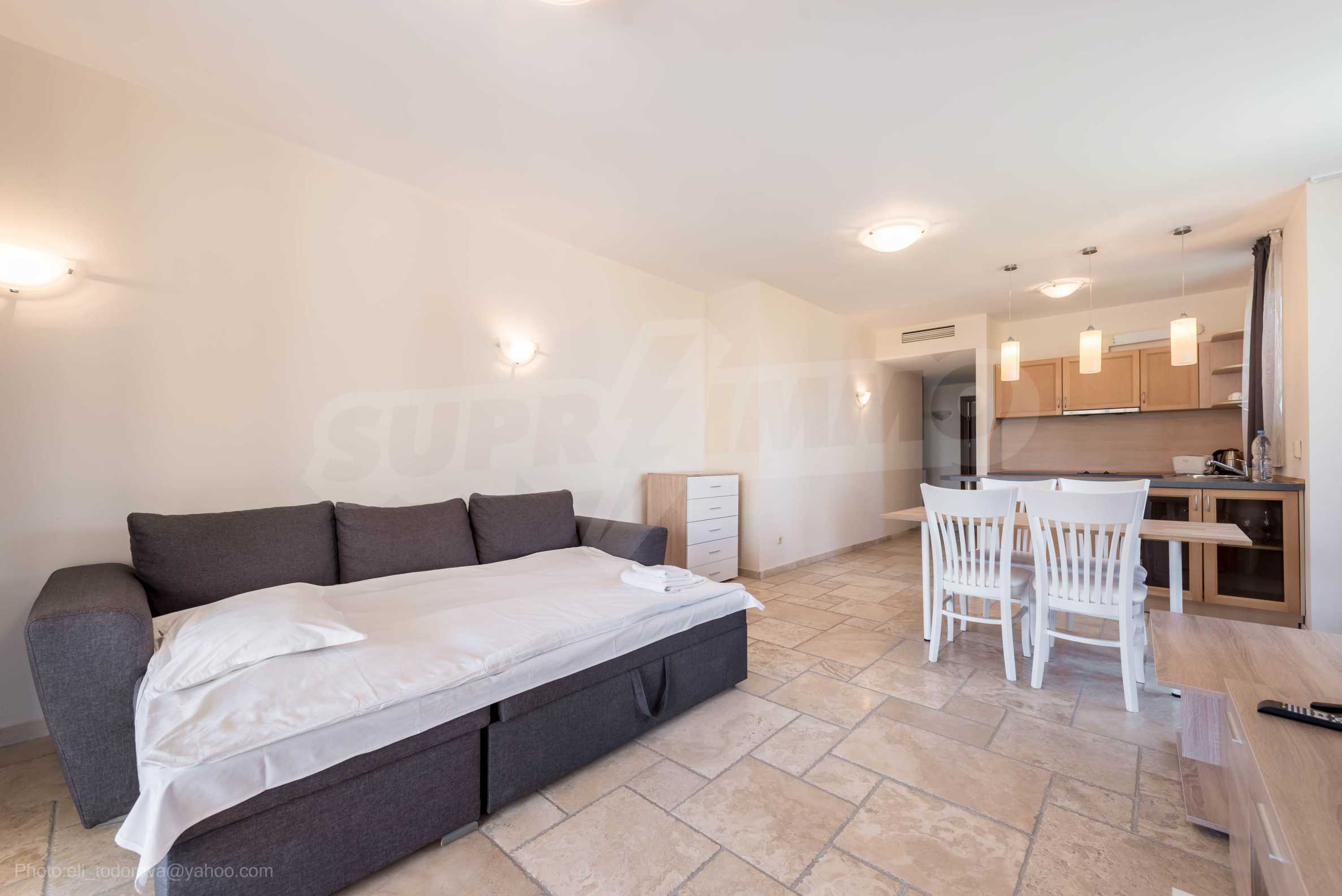 We present a two-room apartment, part of a popular complex with first-class amenities, located near Kavarna and Balchik. The complex offers views of the Gary Player Golf Course as well as Kavarna Bay which stretches from Cape Kaliakra to Albena and Golden Sands. It is a picturesque and peaceful place, suitable for family recreation in any season.
