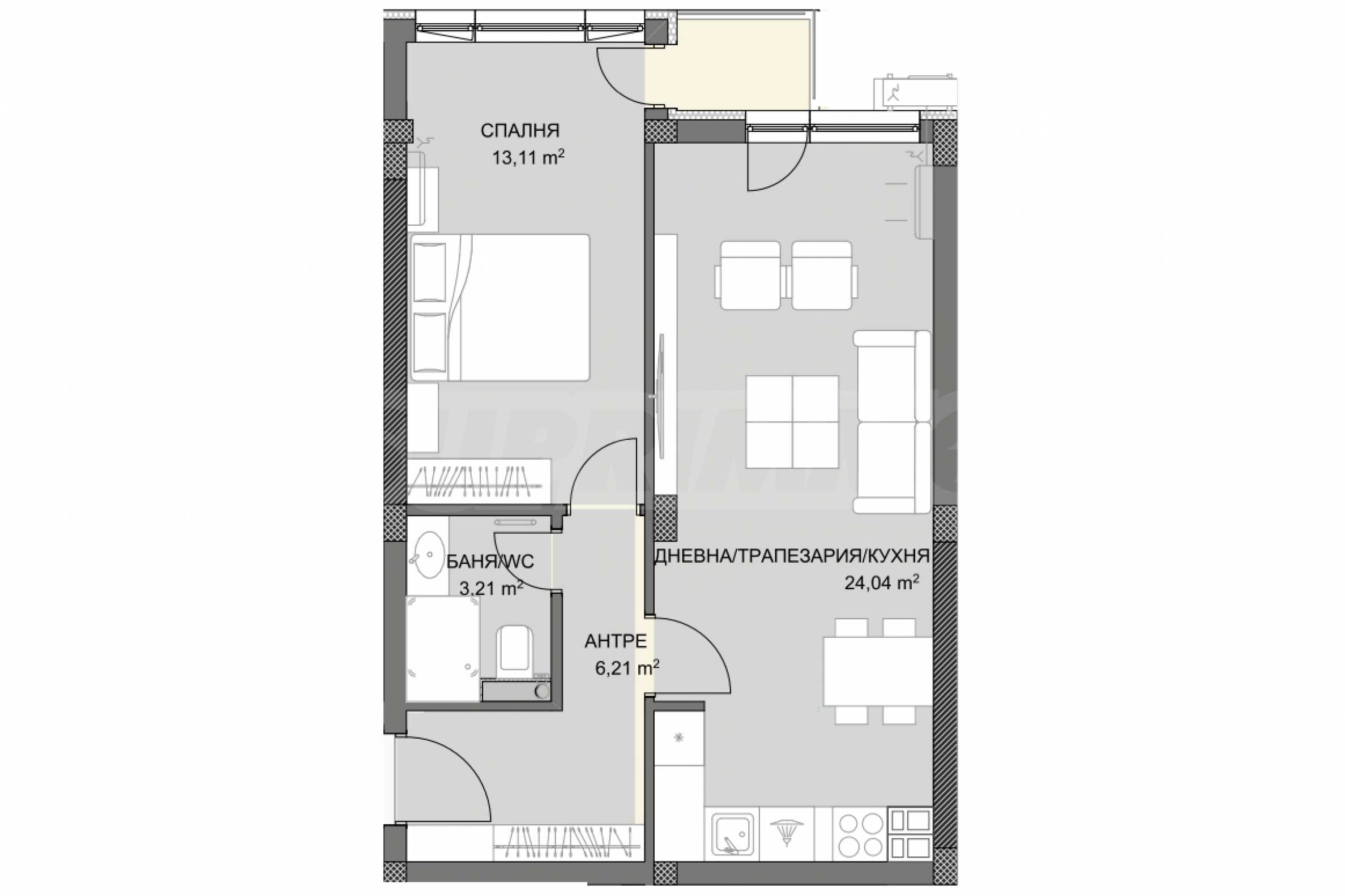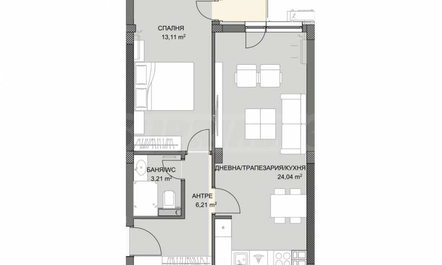 We present a two-room apartment in a new complex, located in one of the greenest and most peaceful areas in Plovdiv, just 50 m from the Grebna base.