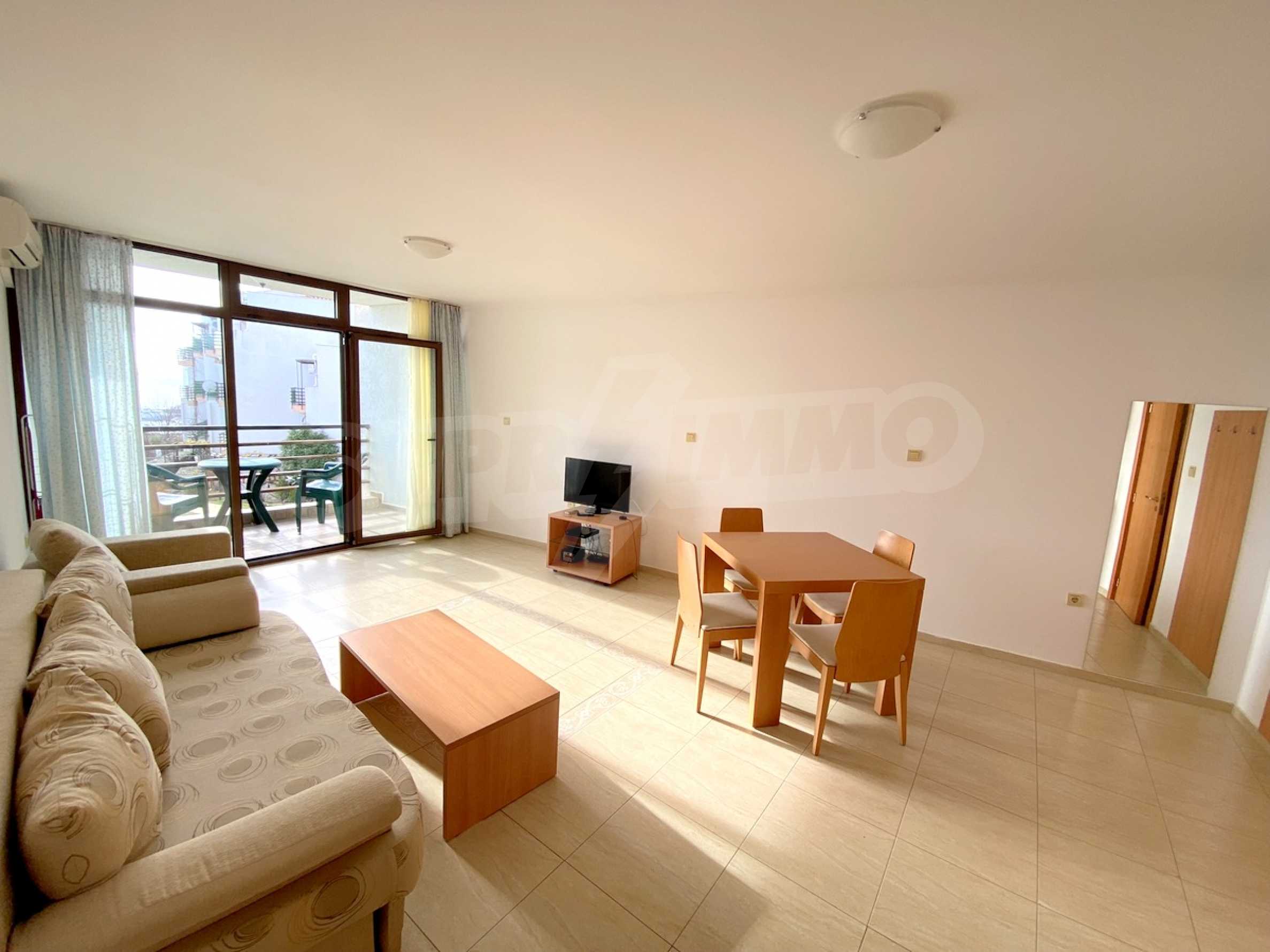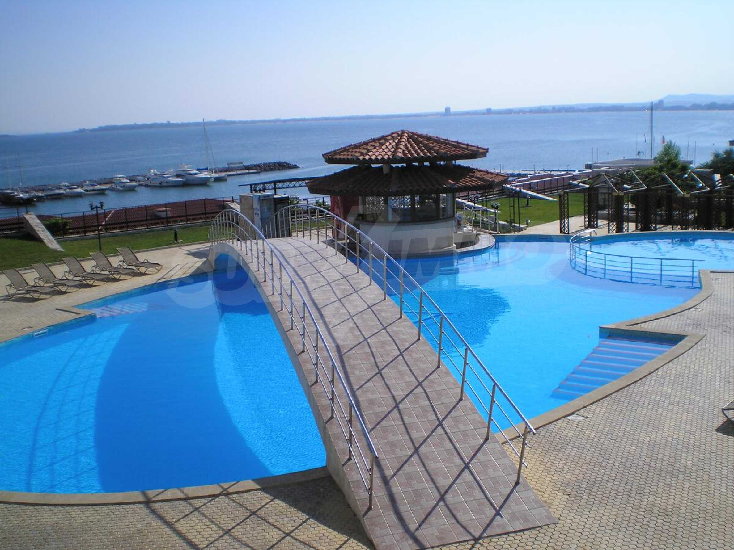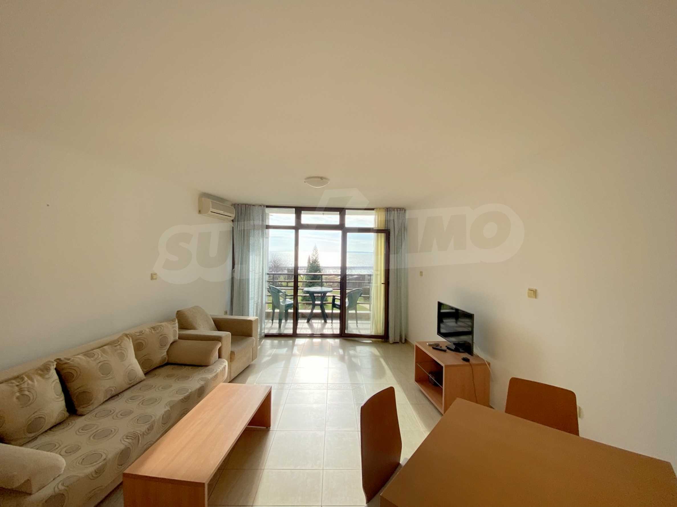 We present a spacious one-bedroom apartment for sale, located on the first line of the sea, next to the marina "Marina Dinevi".