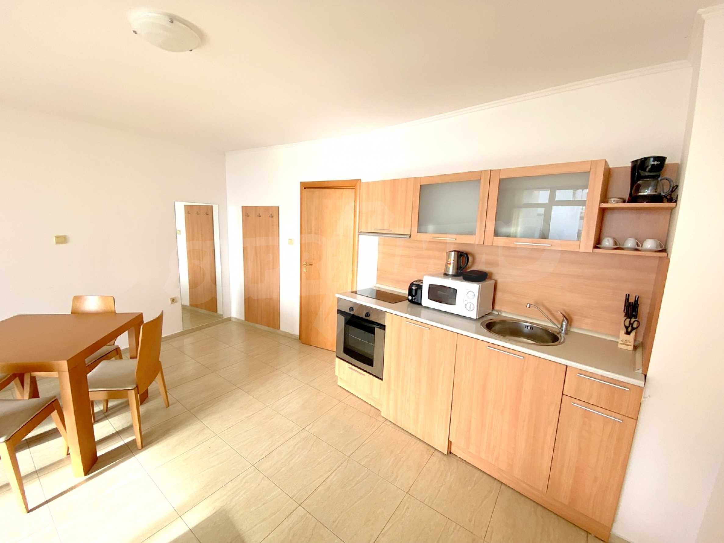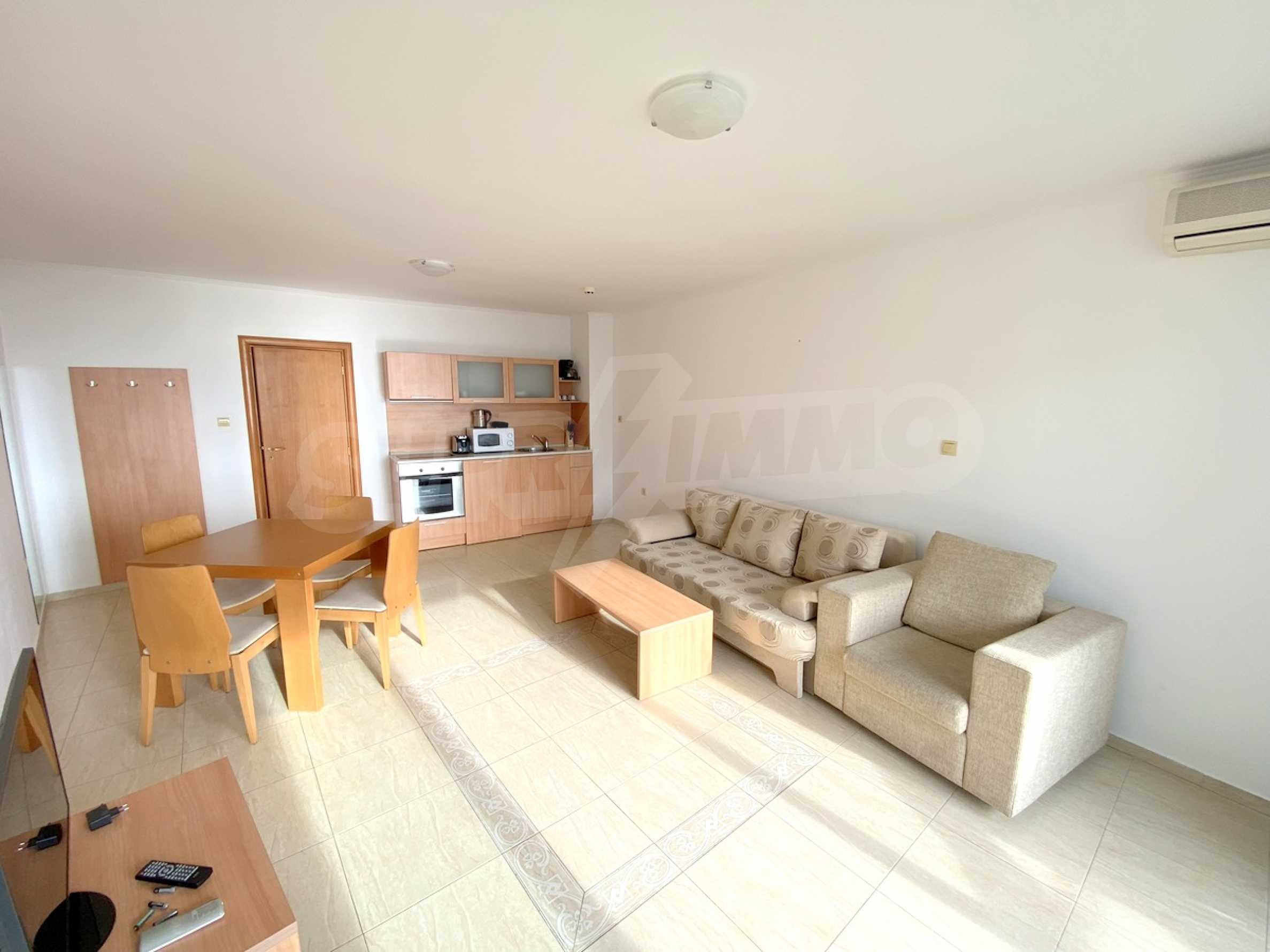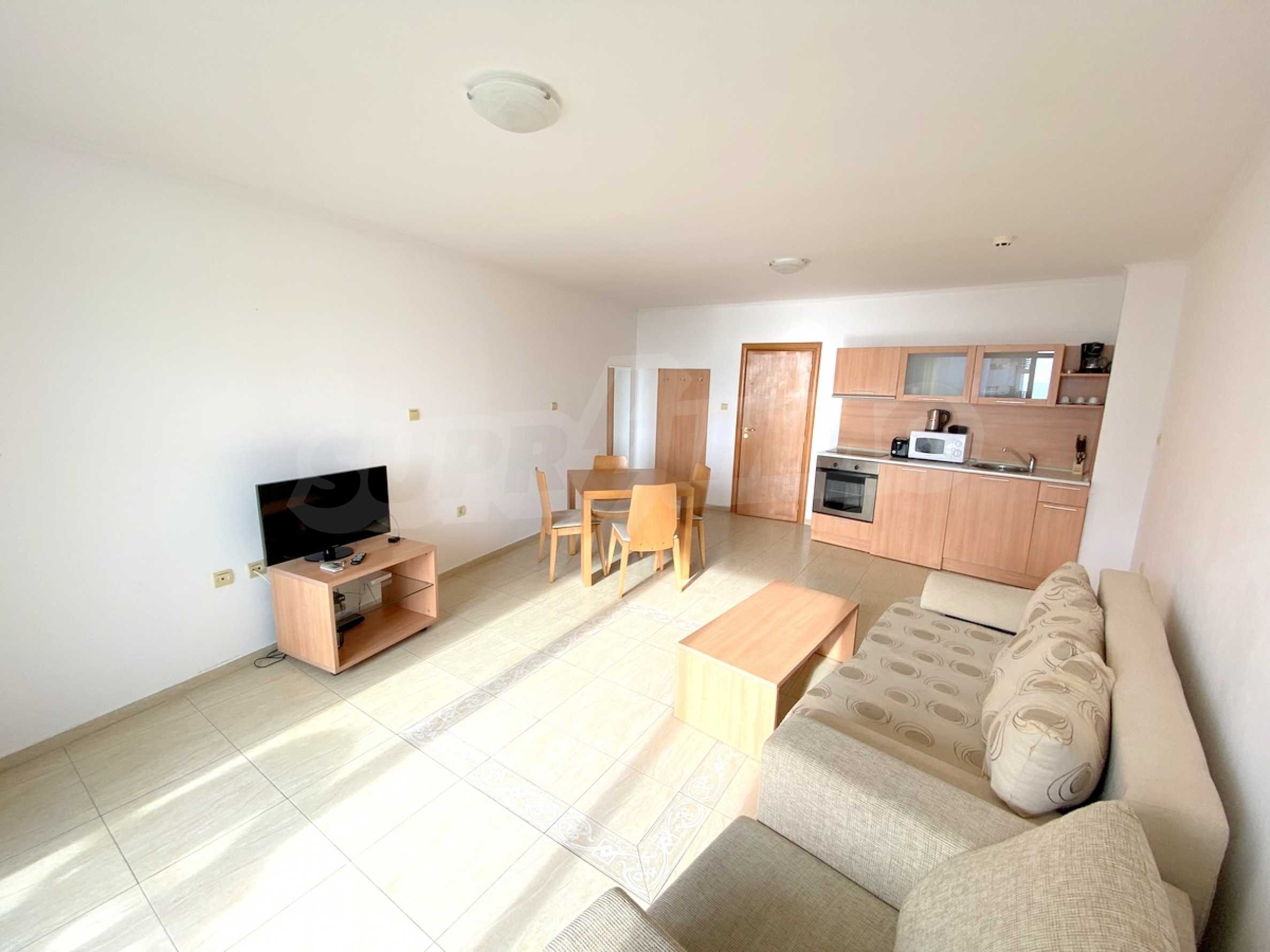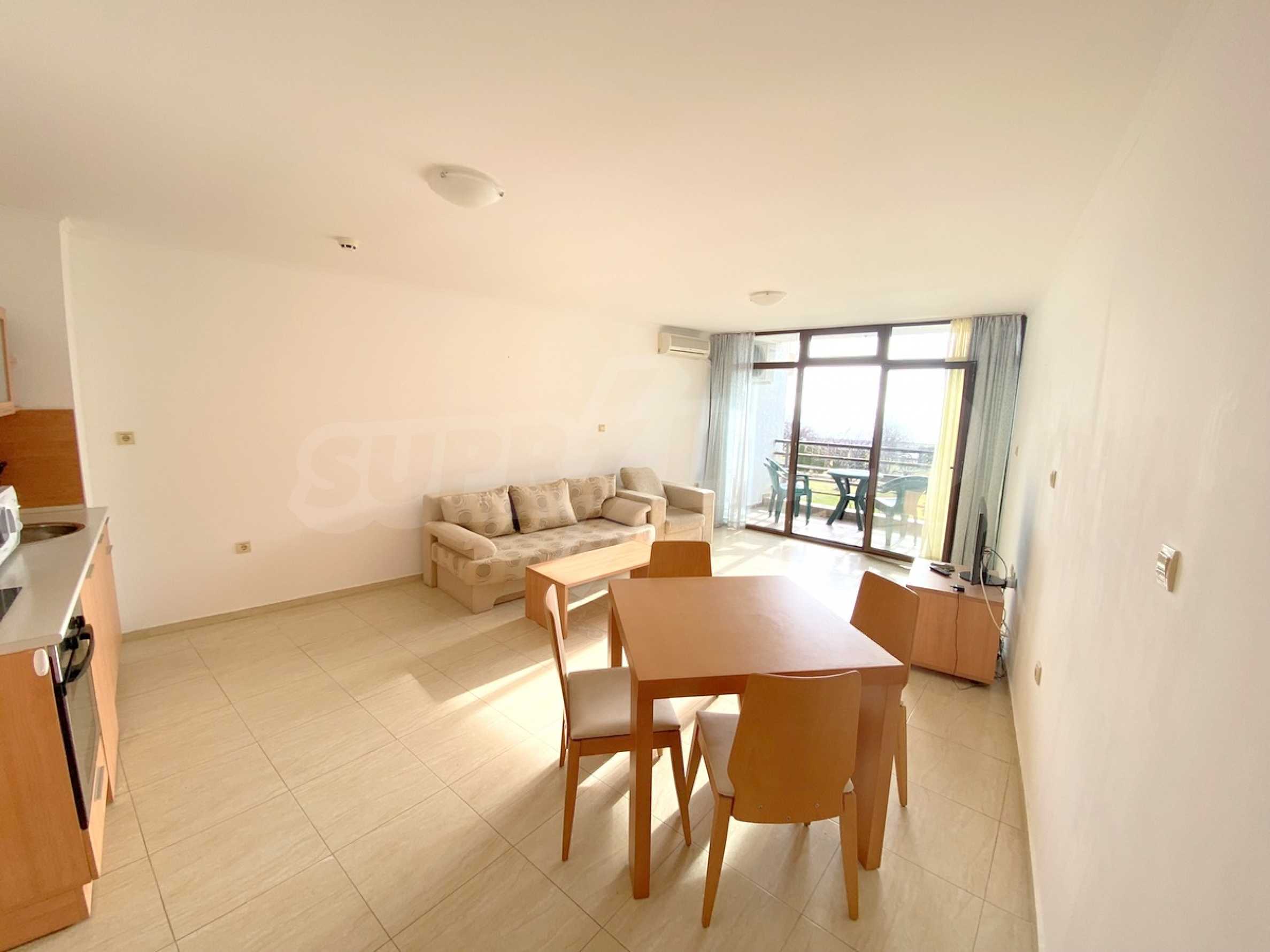 We present a spacious one-bedroom apartment for sale, located on the first line of the sea, next to the marina "Marina Dinevi".