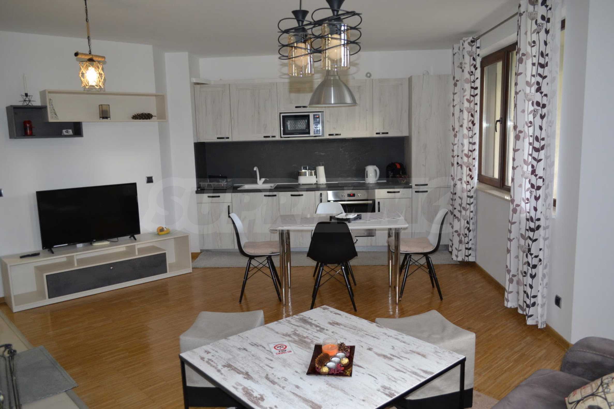 We present a furnished one-bedroom apartment in a gated complex in the Rhodope Mountains, at the entrance to the town of Smolyan, on the side of the Pamporovo resort. It is located 3 km from the center of Smolyan, 8 km south of Pamporovo and 5 km from the Smolyan Lakes.