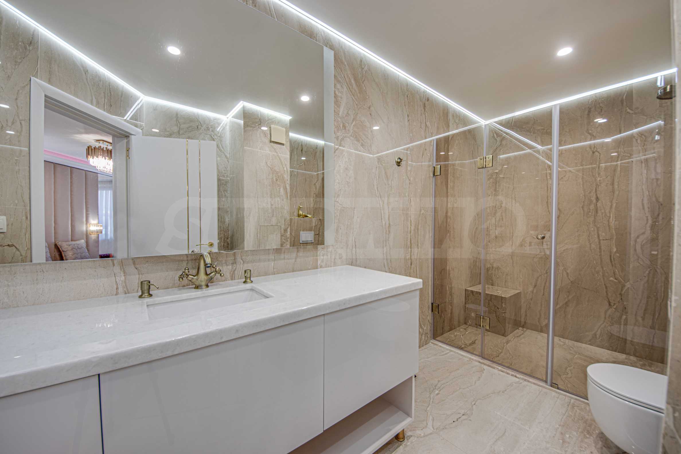 The interior is finished with high-quality materials - marble, wood and onyx, selected modern furniture, gold accents, attractive lighting fixtures and top-of-the-line electrical appliances. The heating is provided by gas underfloor heating.