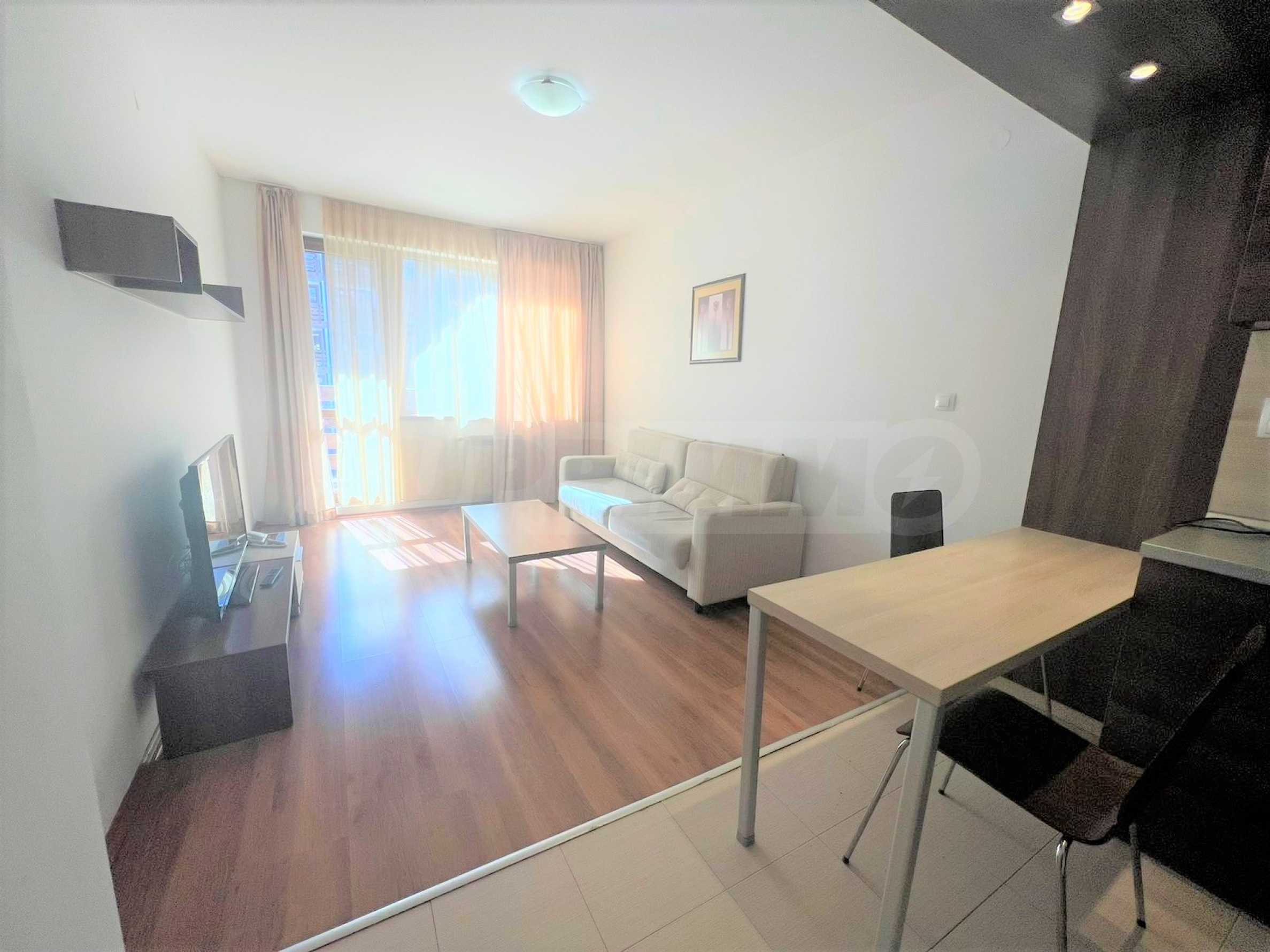Living room - fully furnished with a double sofa bed, a coffee table, a TV and a cabinet for it;