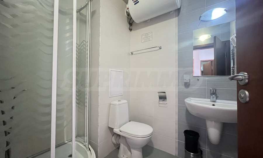 Bathroom - furnished with shower cabin, sink with mirror, toilet and boiler;