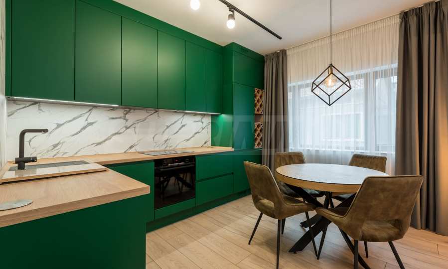 The apartment is located on the 2nd floor of a building 50 meters from the pedestrian zone of Knyaz Boris I Blvd. The building has no elevator. There is a garage in the yard, which can be used for an additional fee by the tenants. There is also a designated barbecue area on the plot.