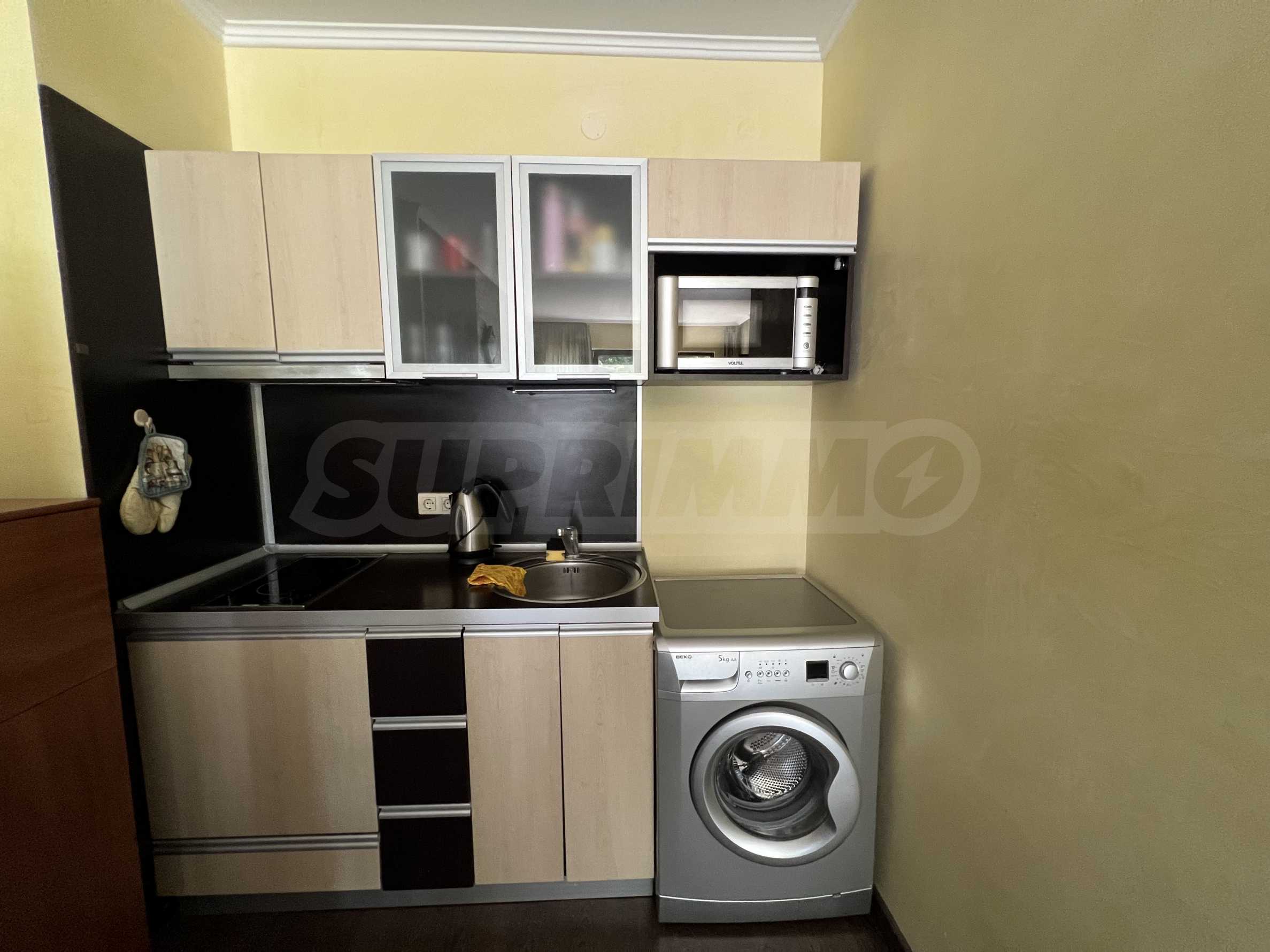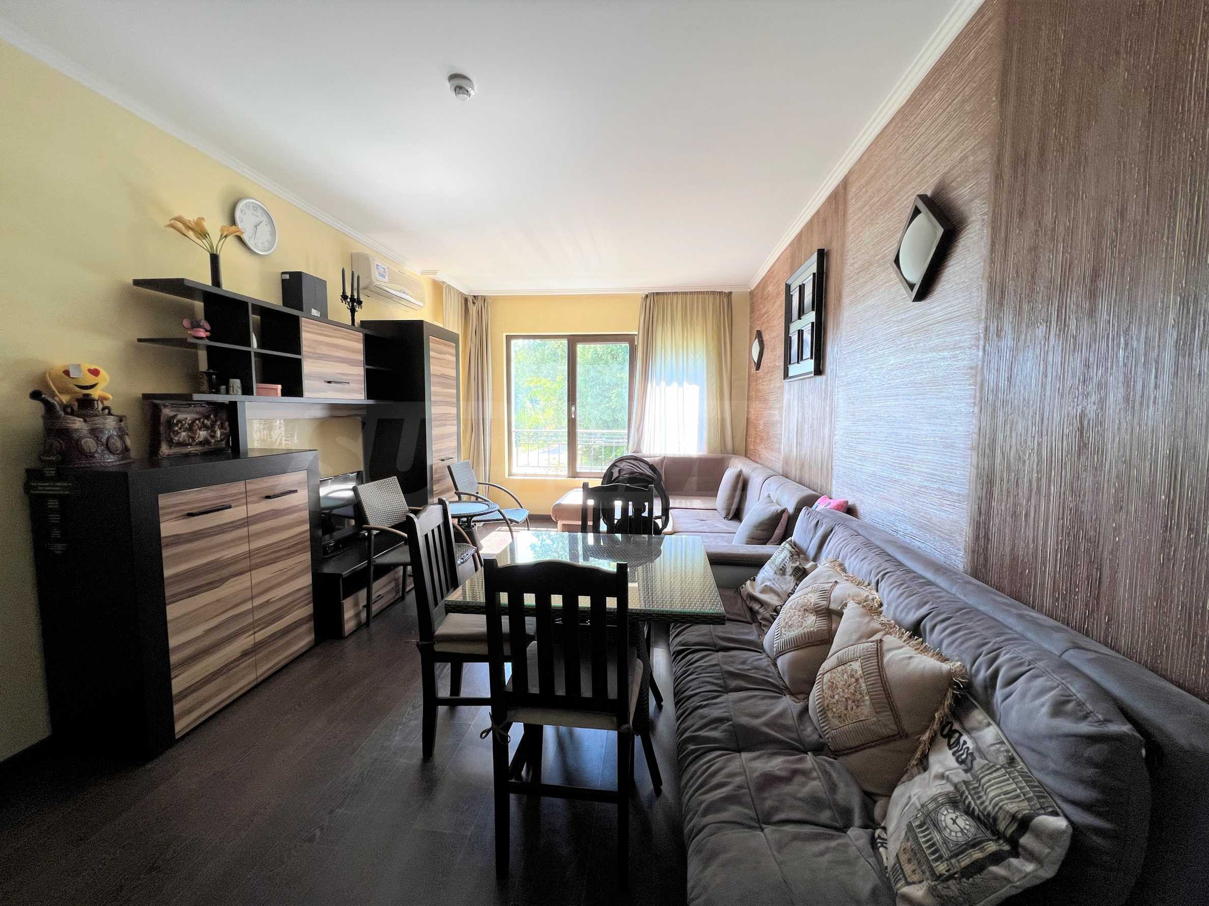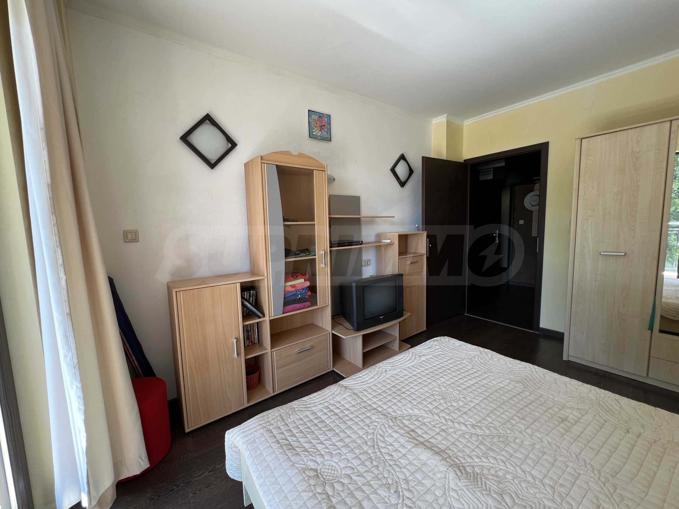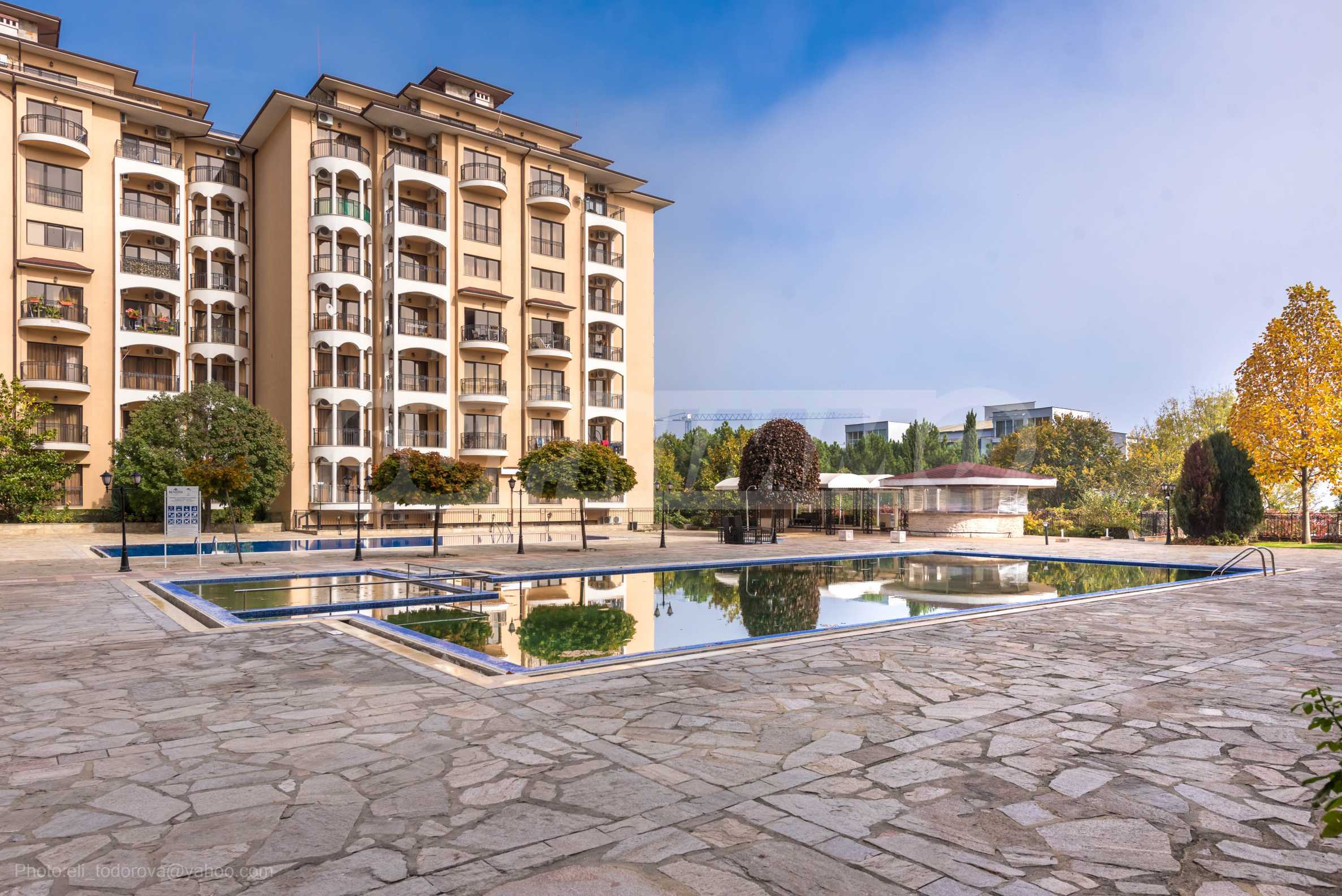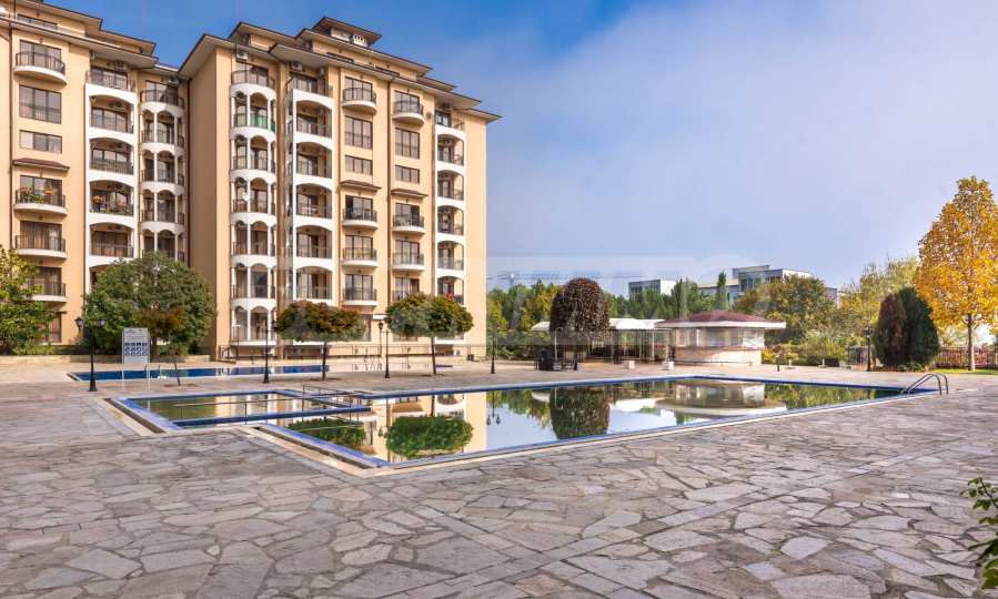We present a furnished one-bedroom apartment for sale in a complex with a pool and amenities in the Golden Sands resort.