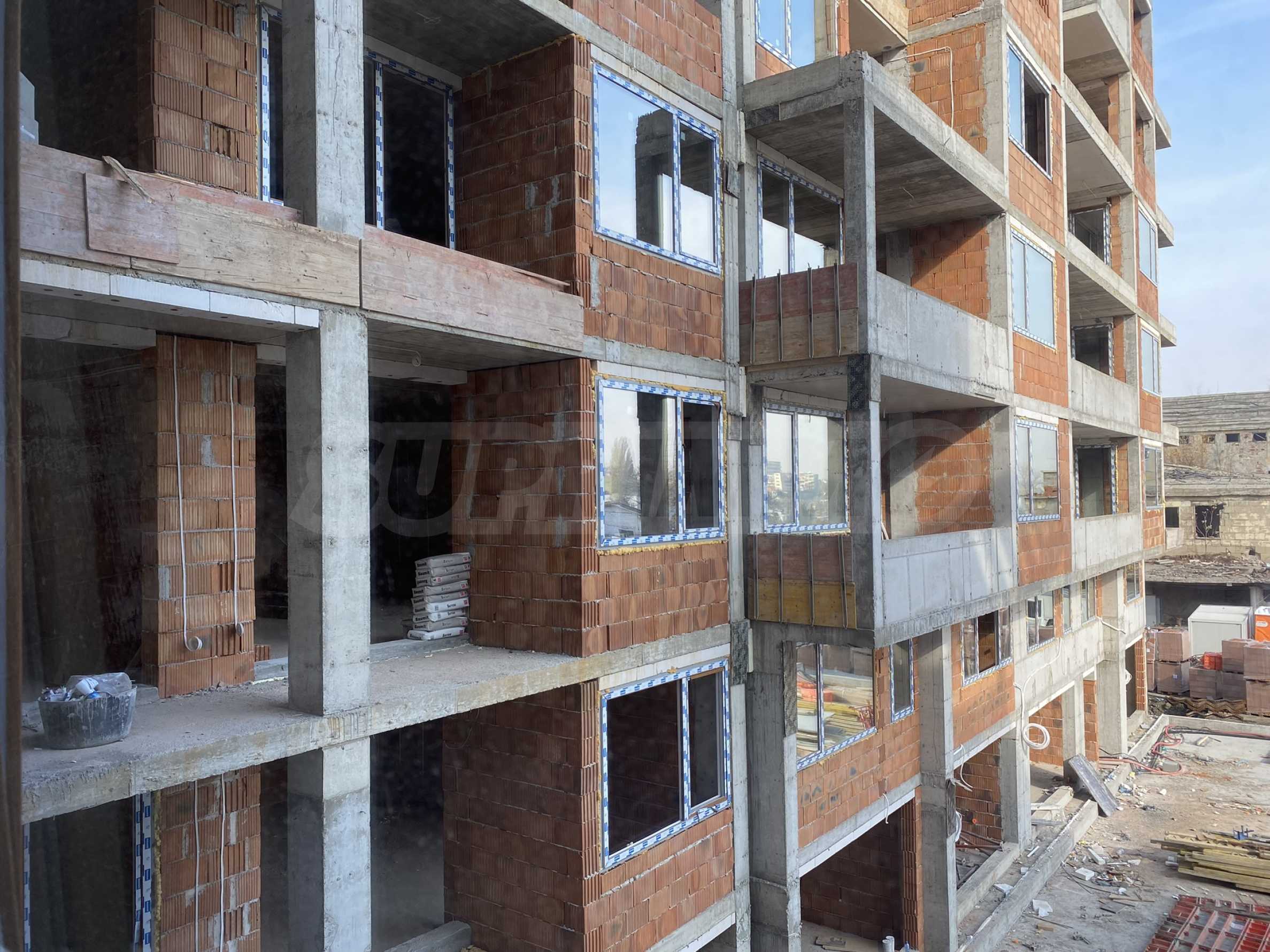 - brickwork of the "Mirkovo" Ceramic Factory - brick 25 N+F type Wienerberger, the thickness is 38 cm on the enclosing walls of the facade, with the corresponding thermal insulation of mineral wool, 25 cm - on the dividing walls between the apartments and studios and 12 cm - for internal partition walls;