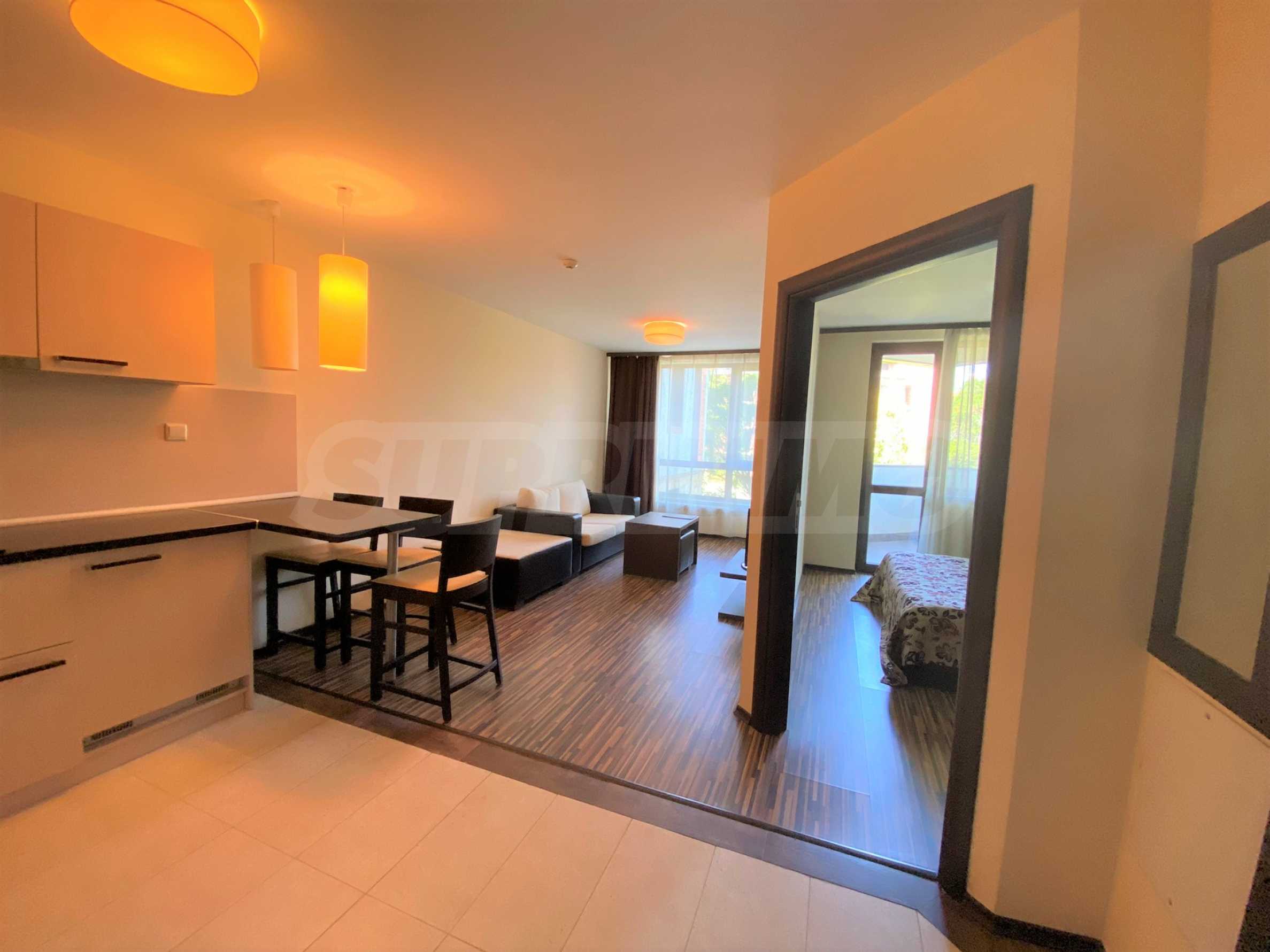 We present a fully furnished one-bedroom apartment in a luxury complex within walking distance of the center and only 350 m from the ski lift of the popular mountain resort.