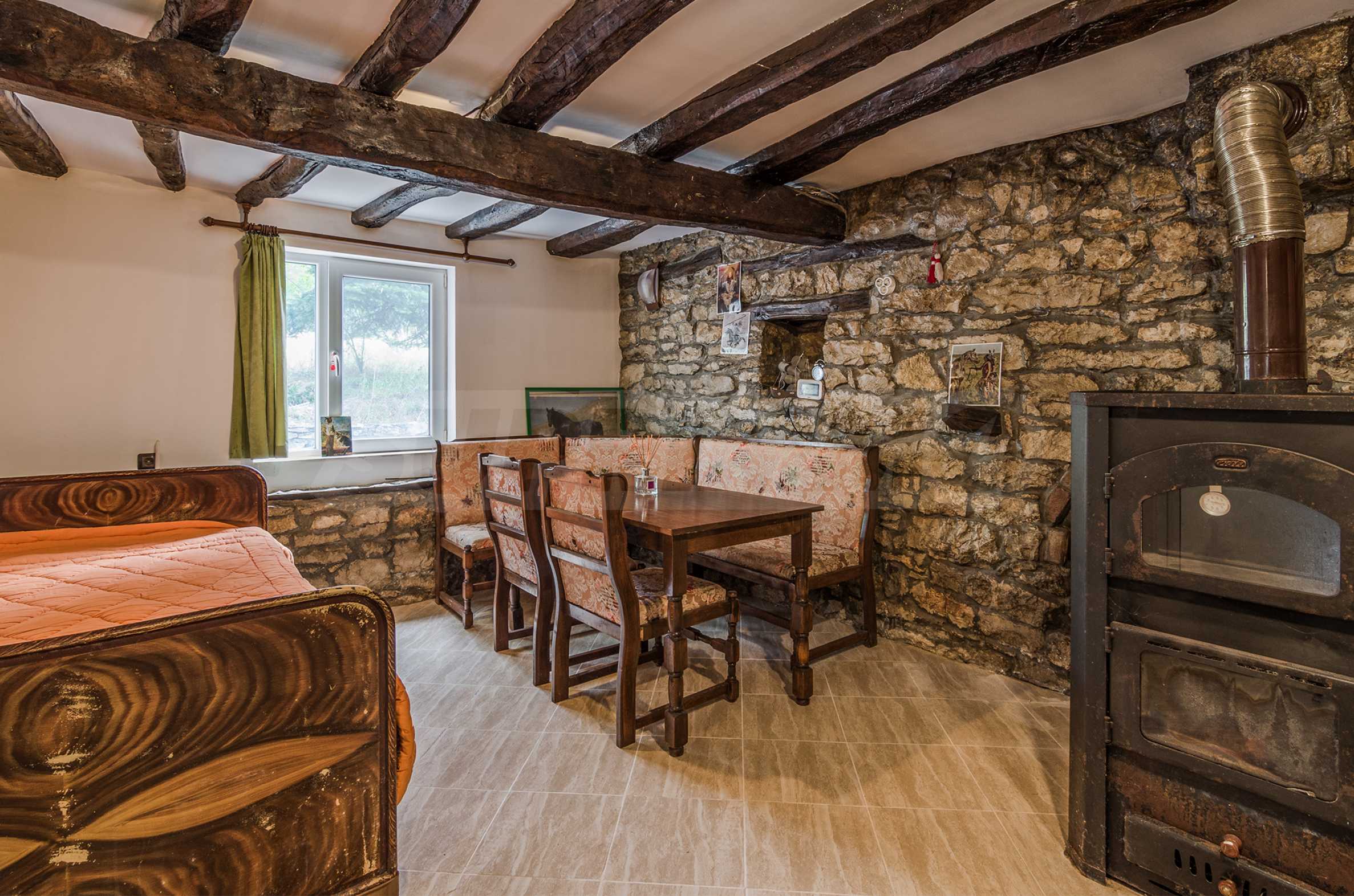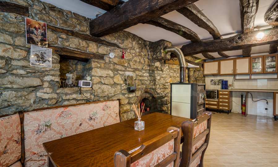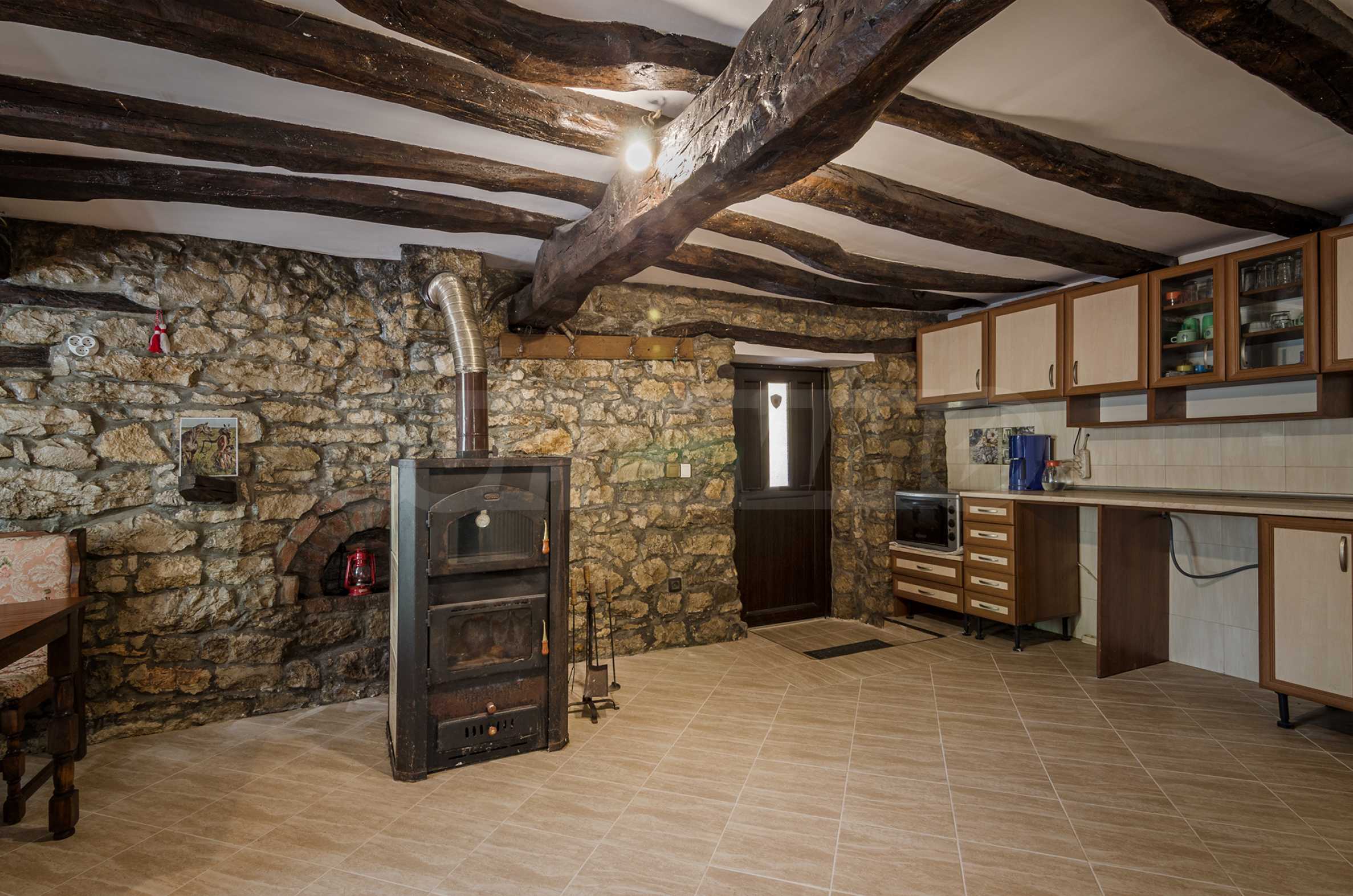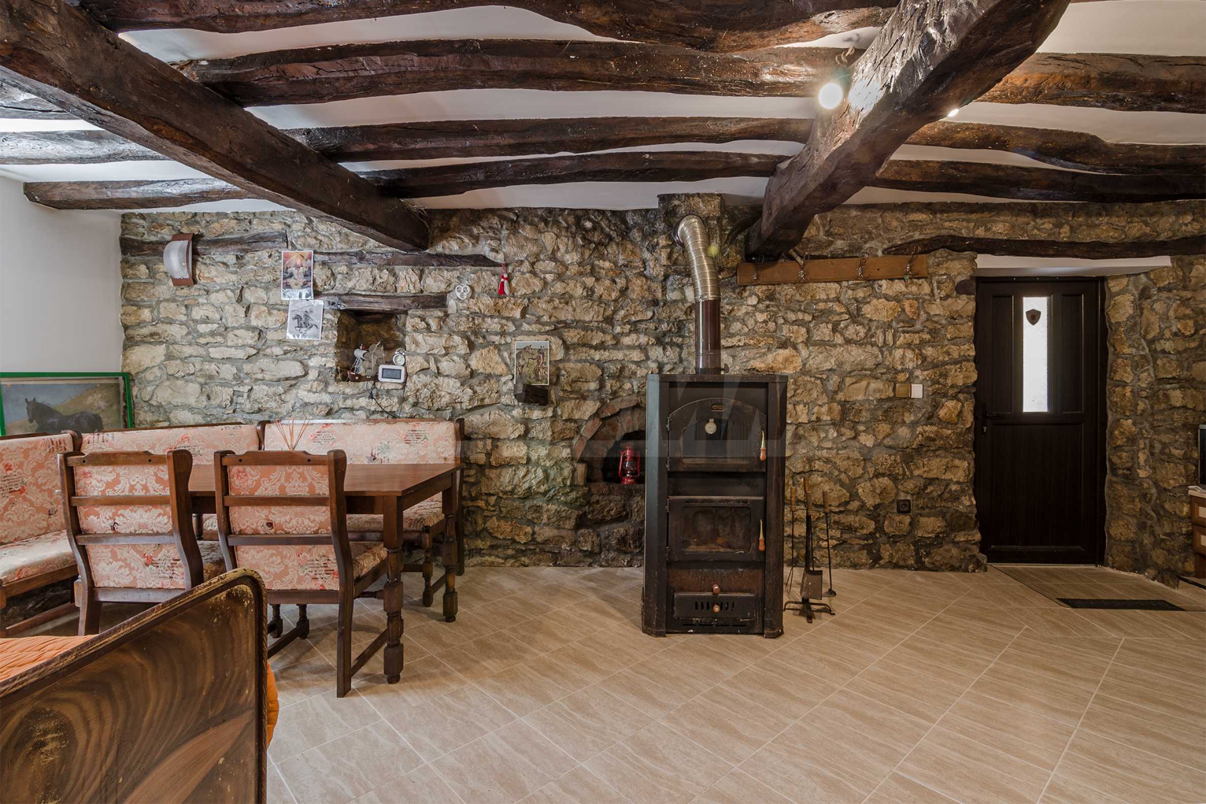 The house is old, on two floors with 75 m2. area per floor with beams. There are two entrances on the first floor. No warm connection between the two floors. Mainly restored and furnished from the inside. Completely new roof. Plastic windows. Septic tank. Insulation on the outside of the house, painted. Pavement in front.