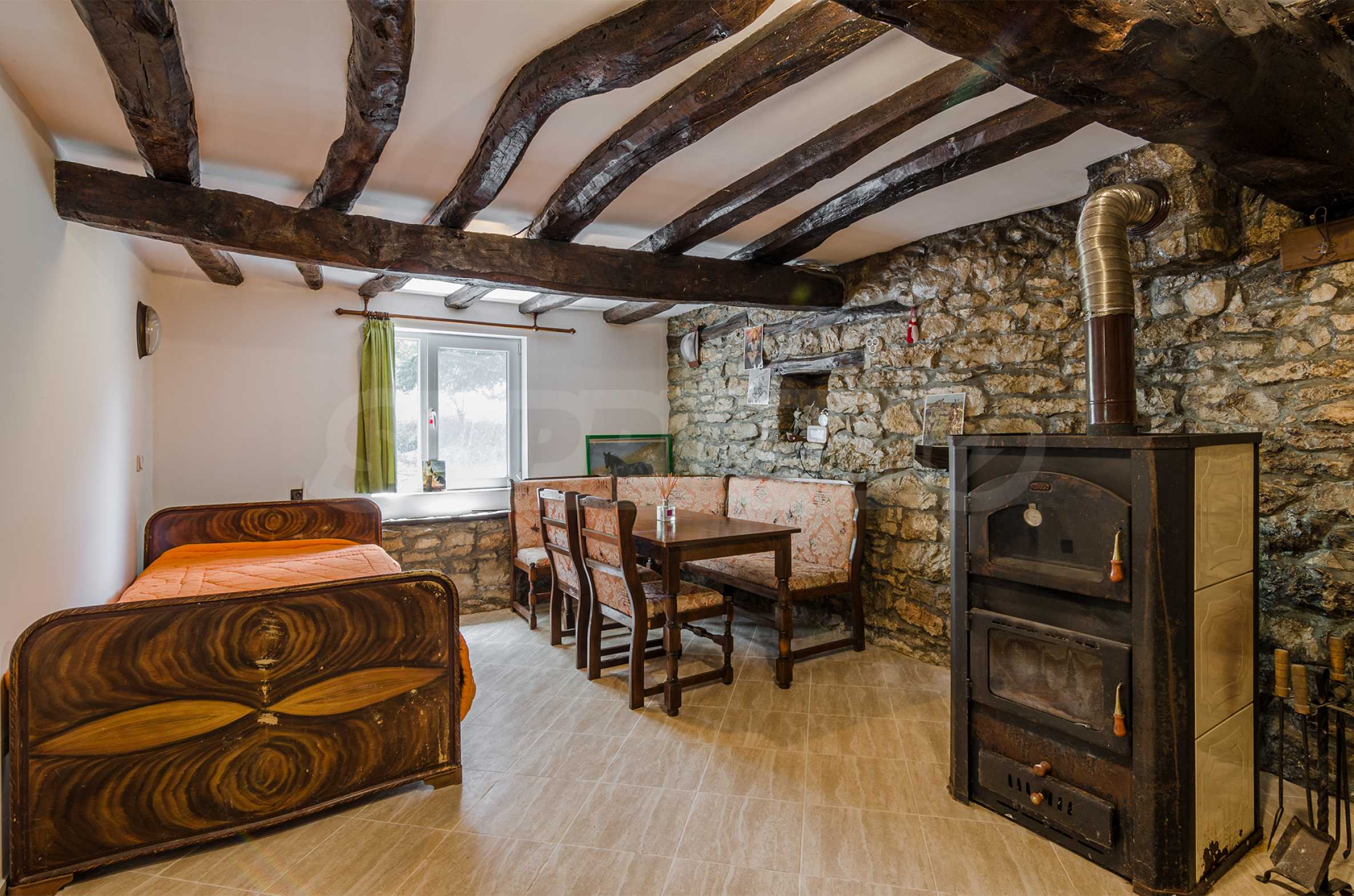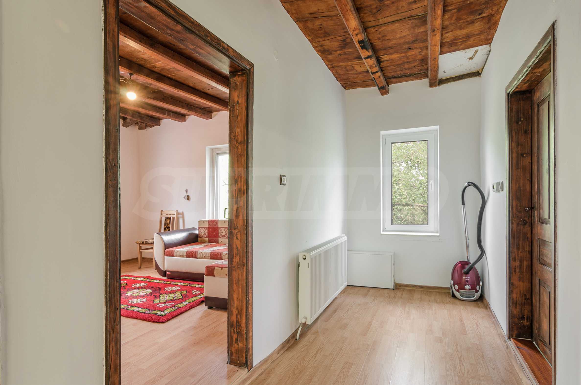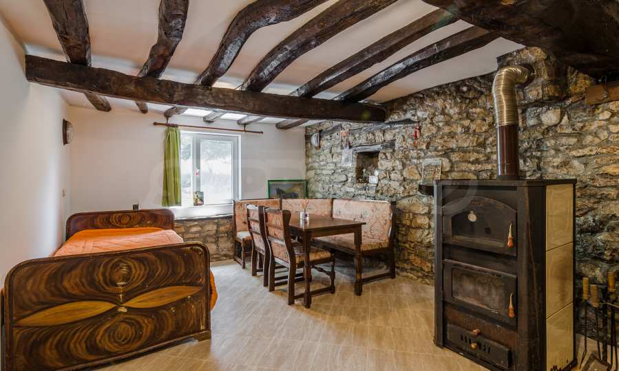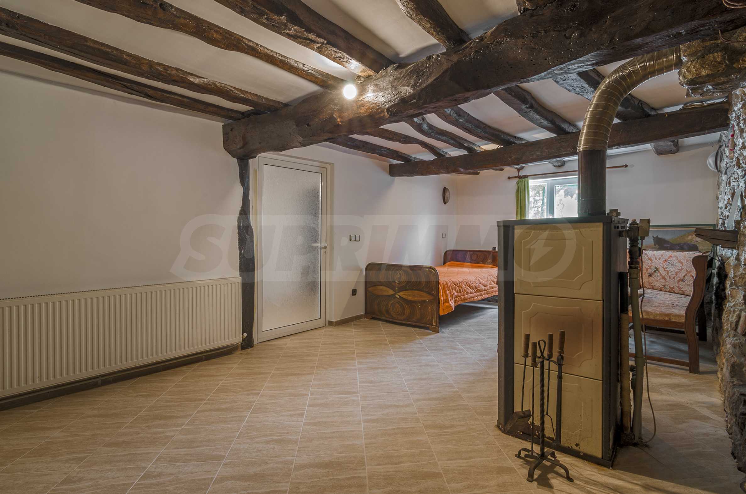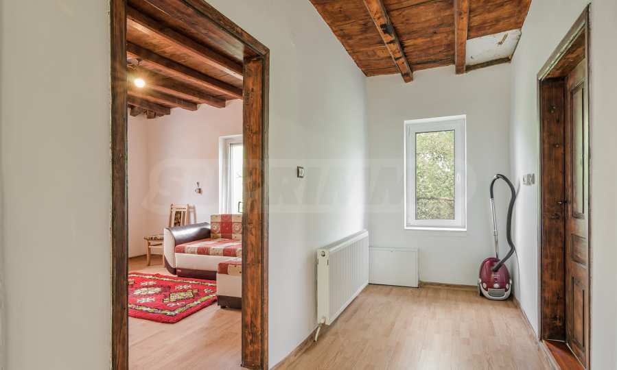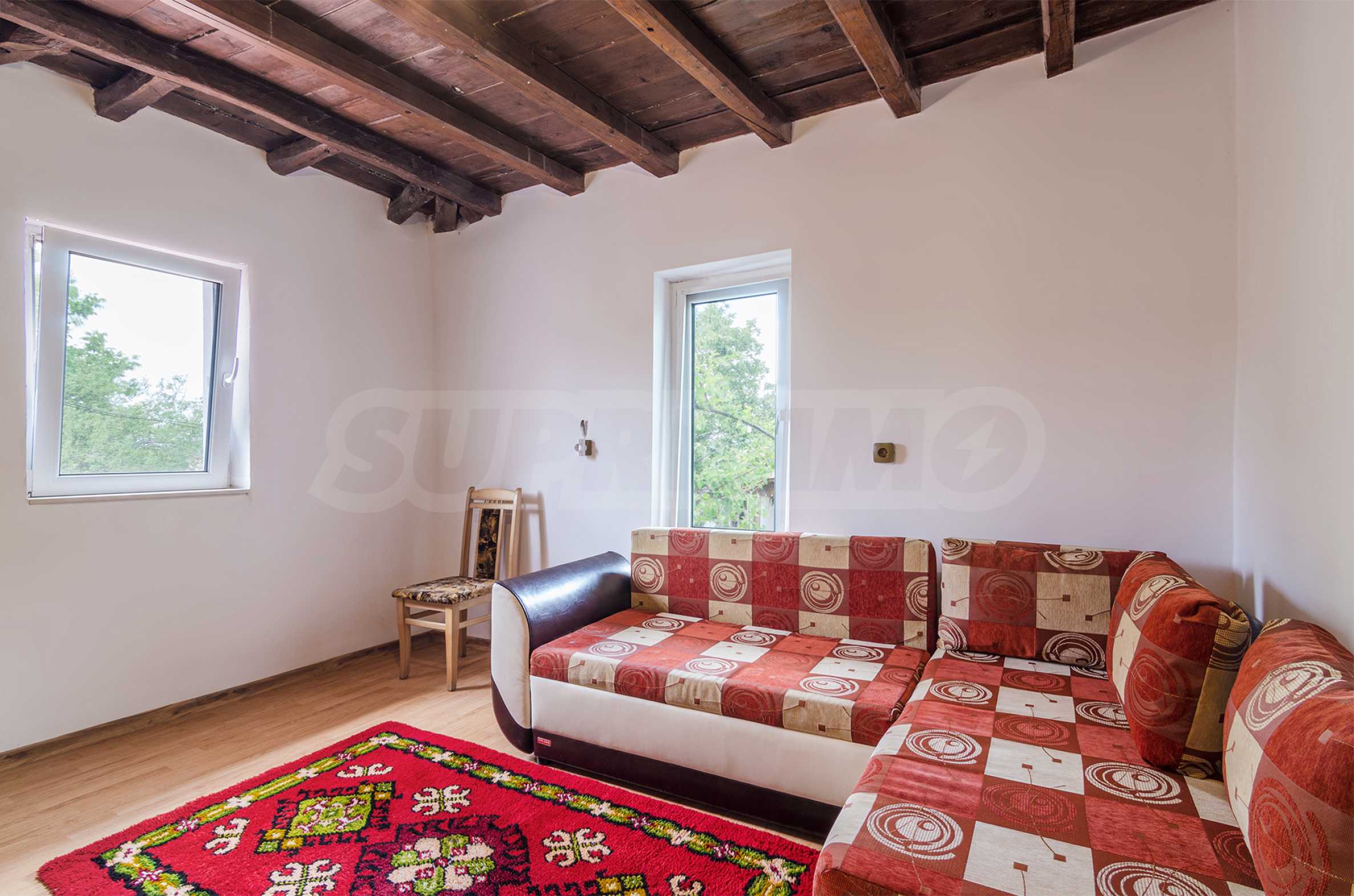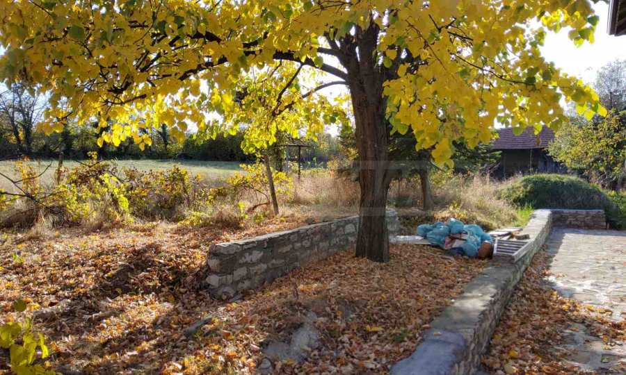 The yard is very large - 3350 sq m. It has a well, fruit trees, several large walnut trees and two preserved farm buildings of about 100 sq m and a garage.