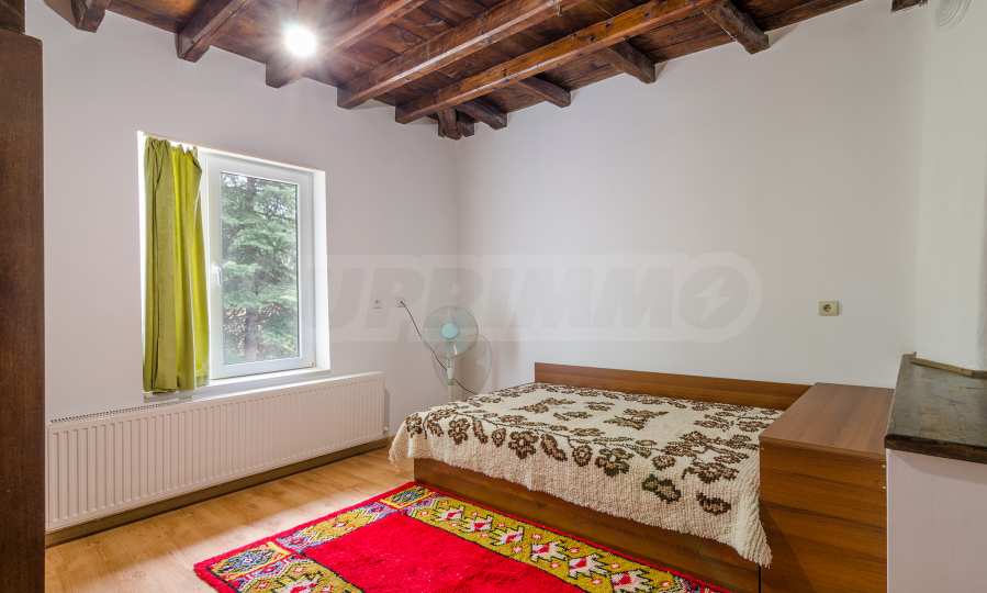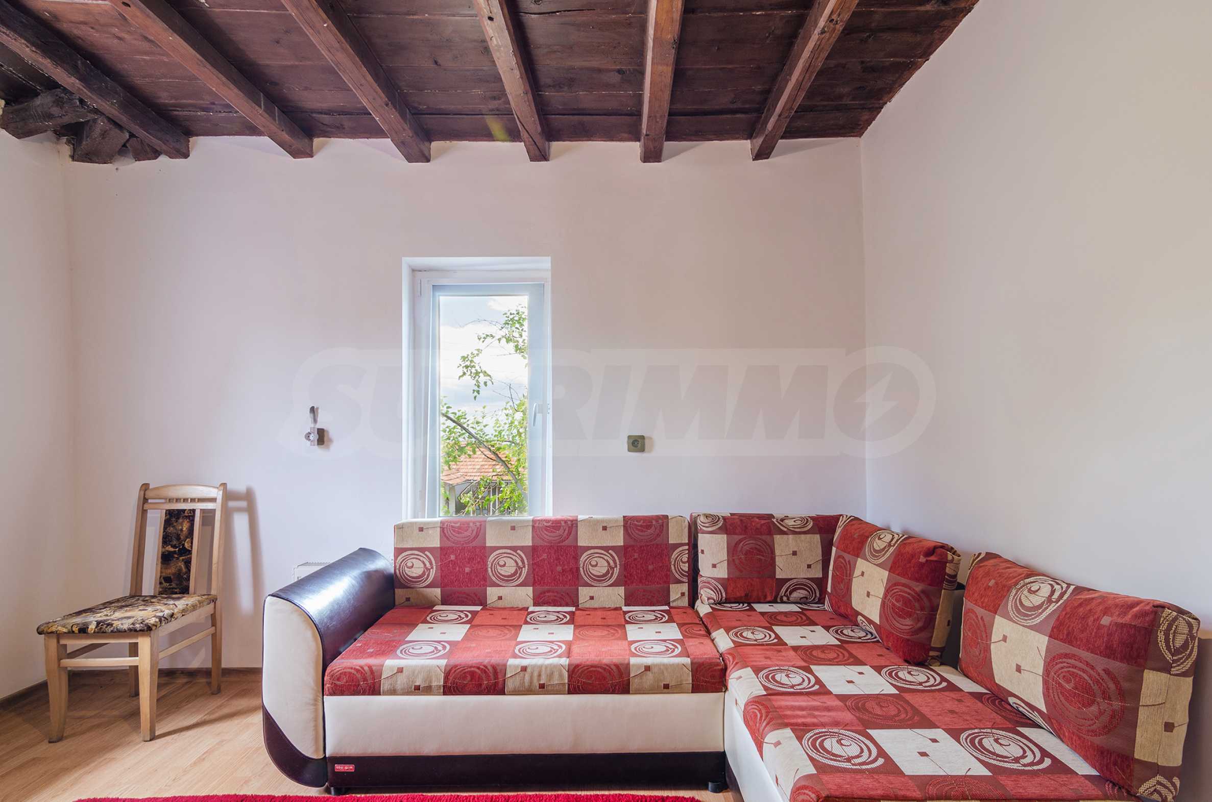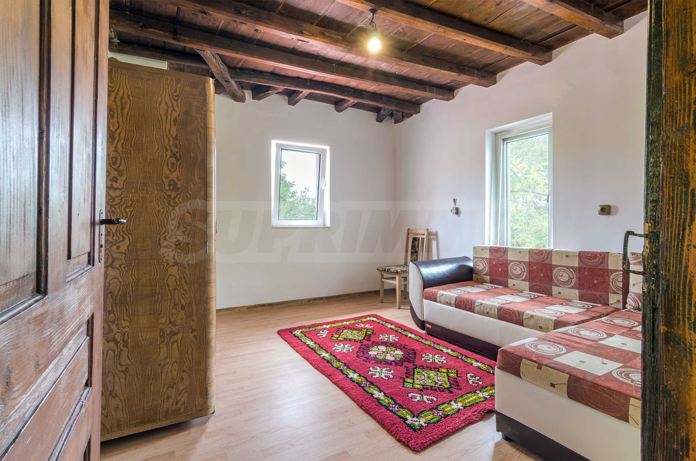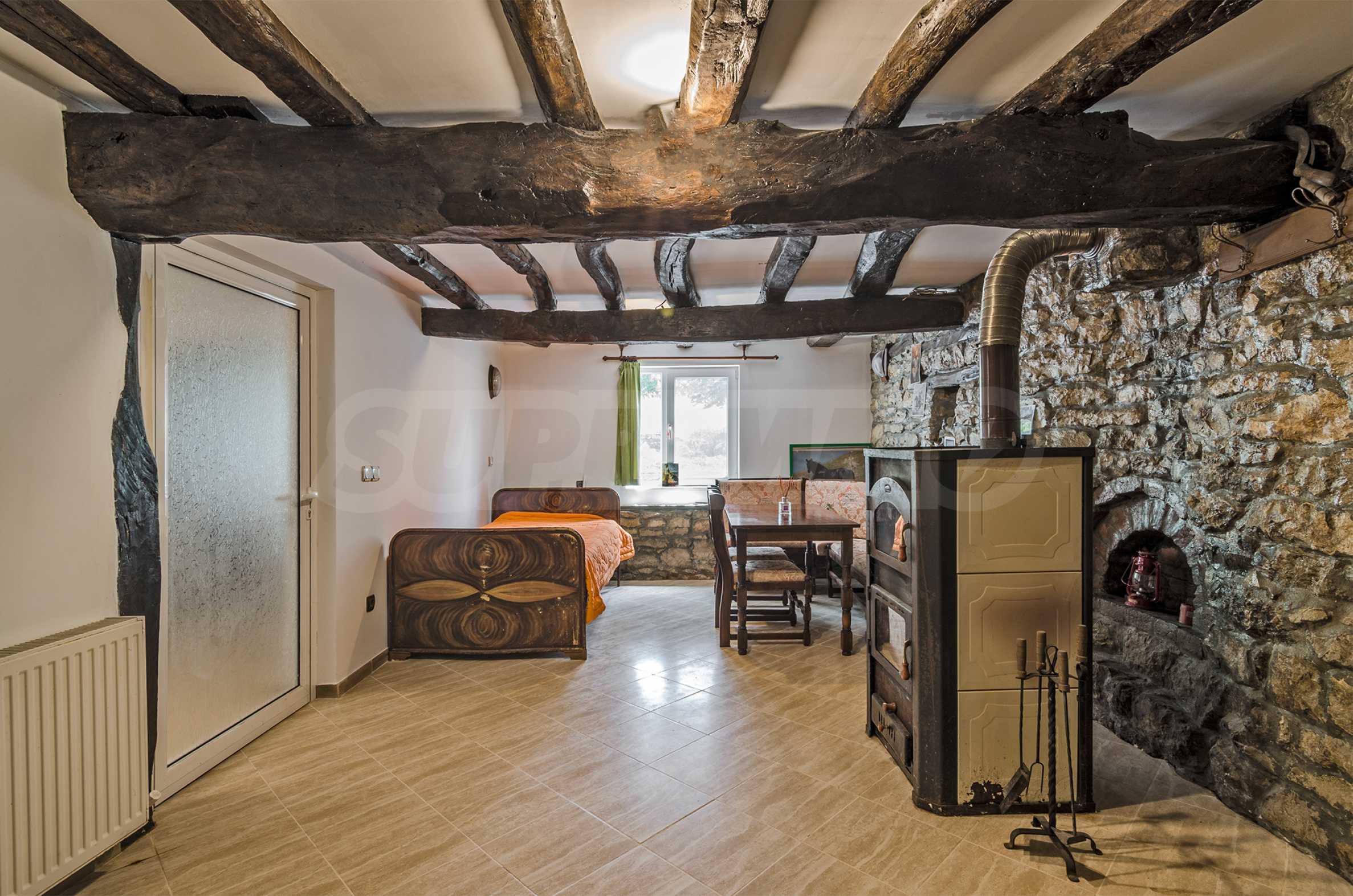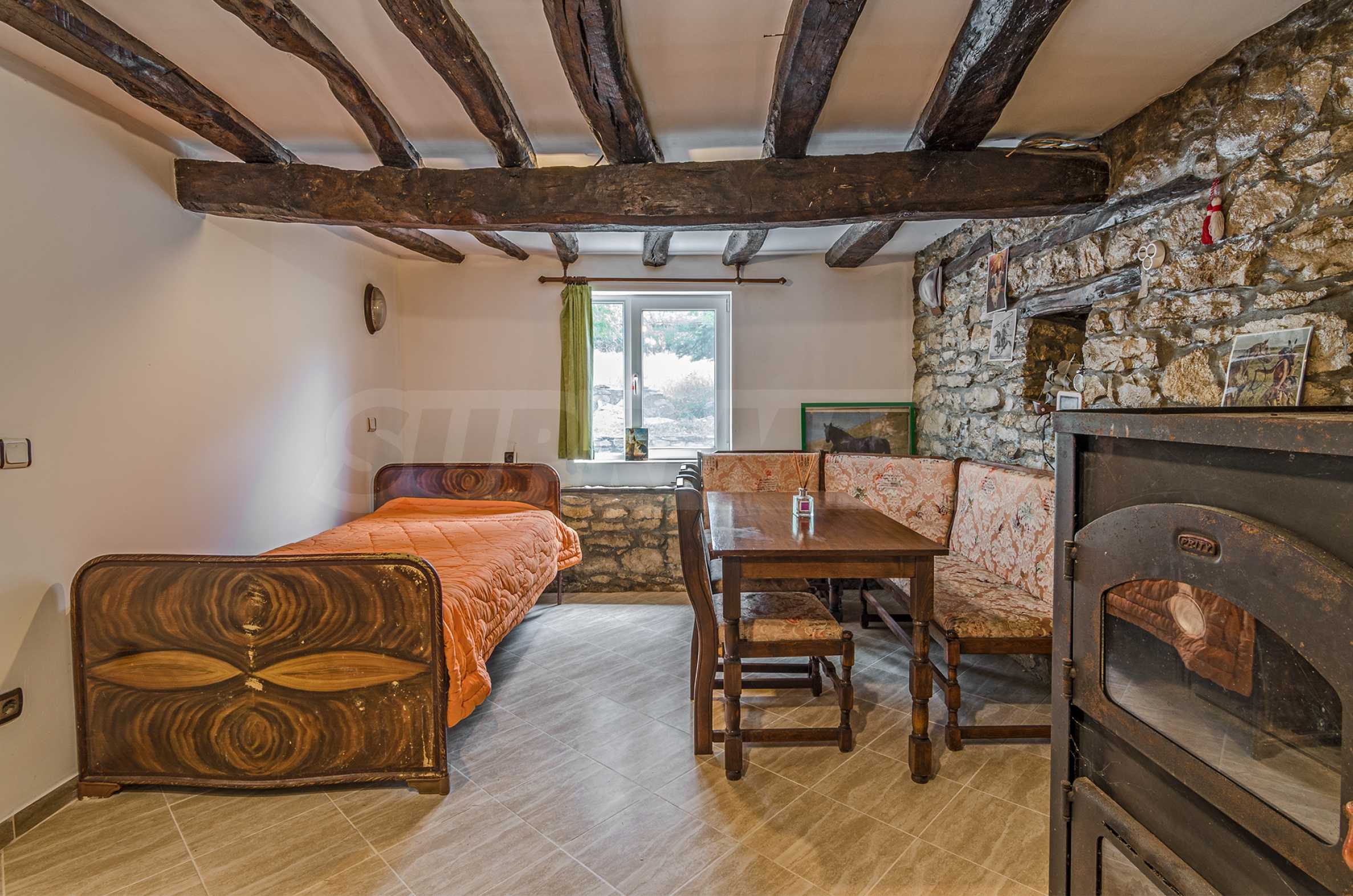 The yard is very large - 3350 sq m. It has a well, fruit trees, several large walnut trees and two preserved farm buildings of about 100 sq m and a garage.