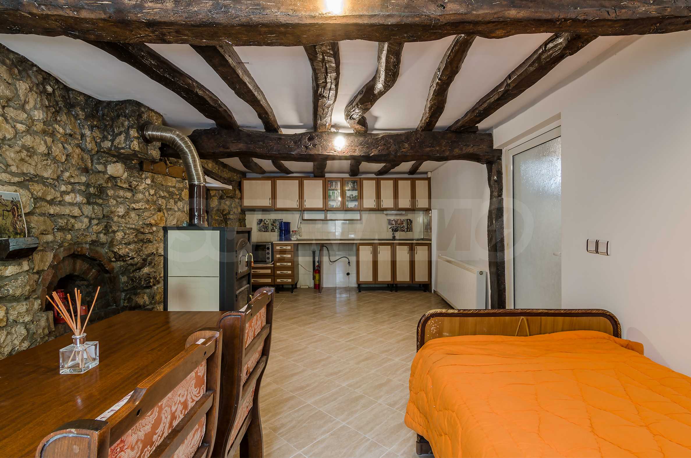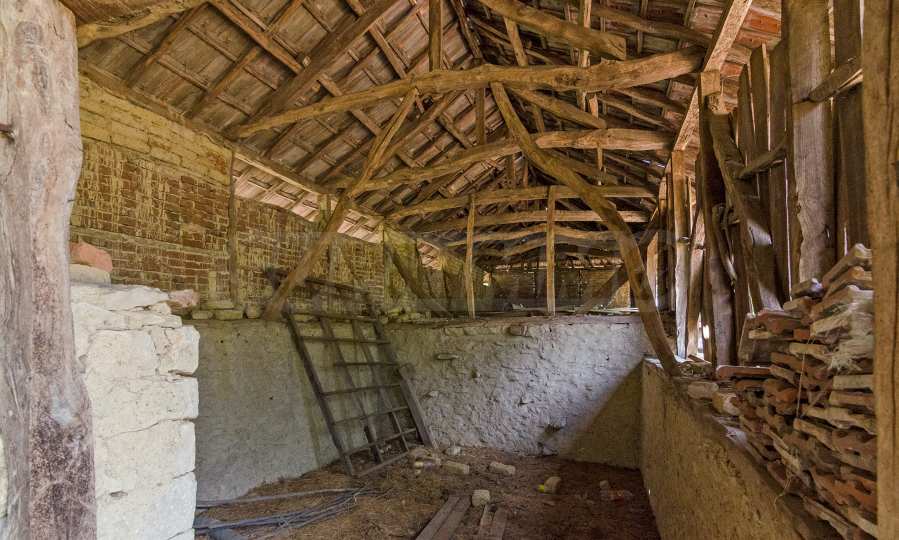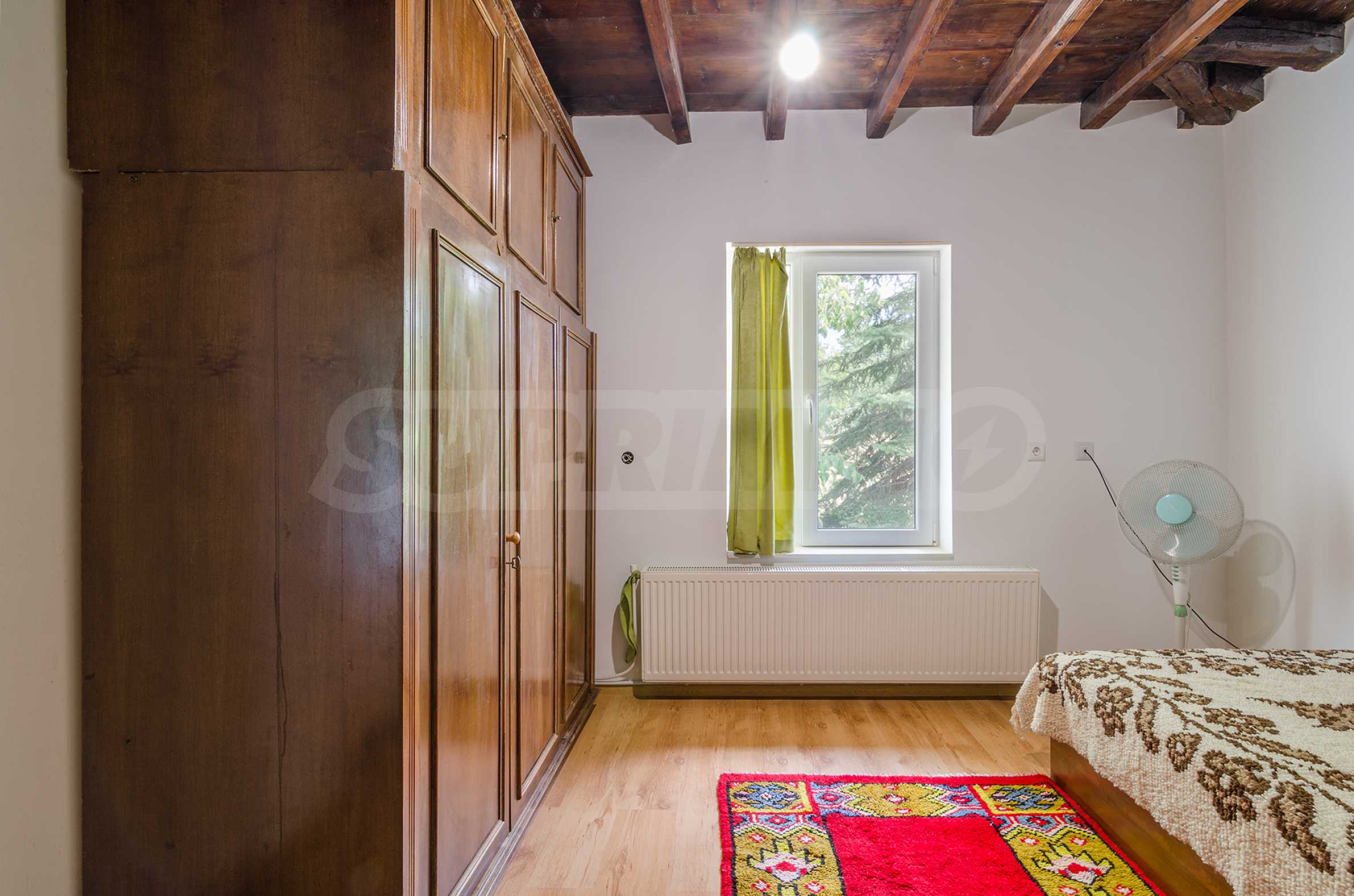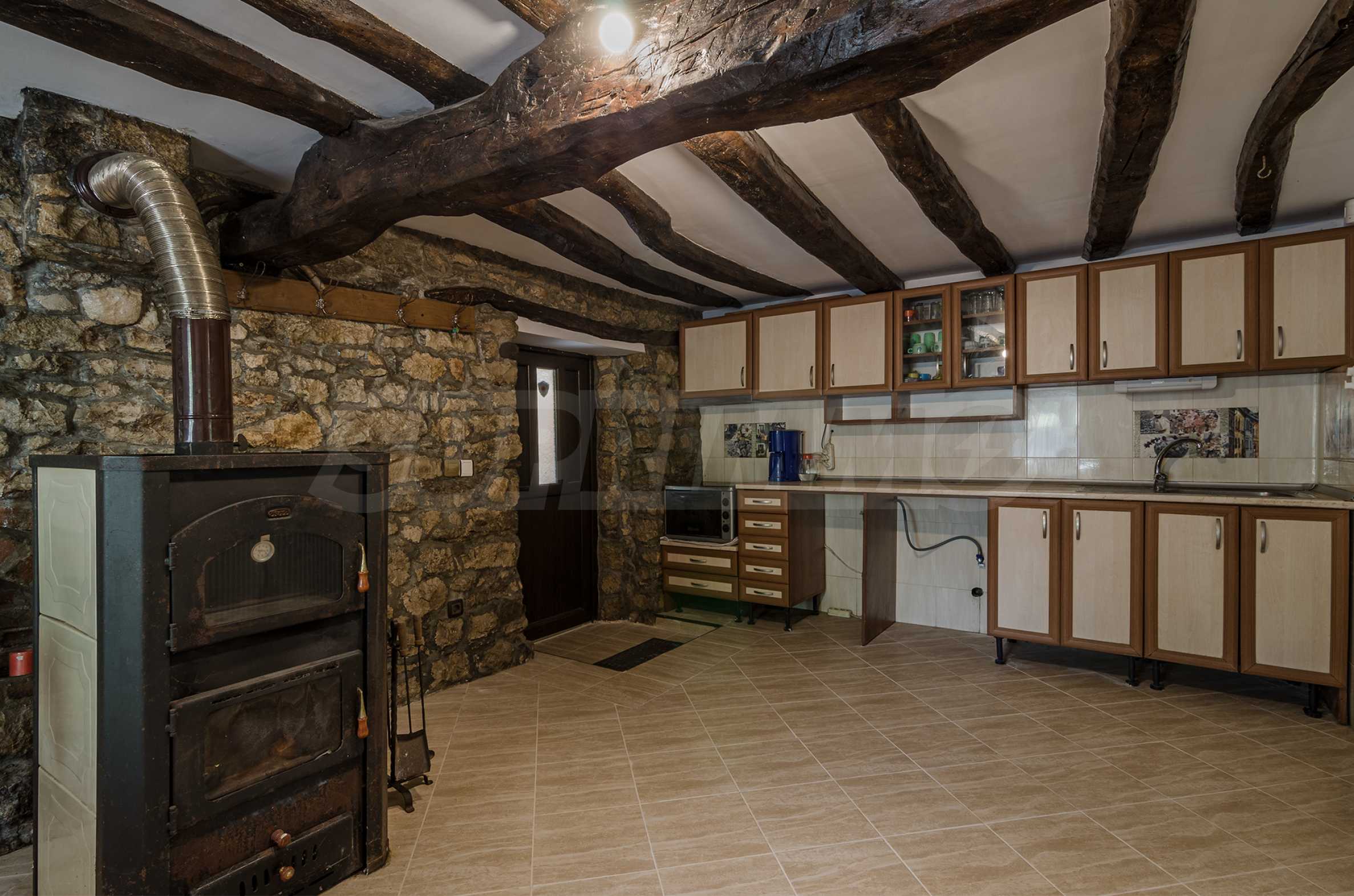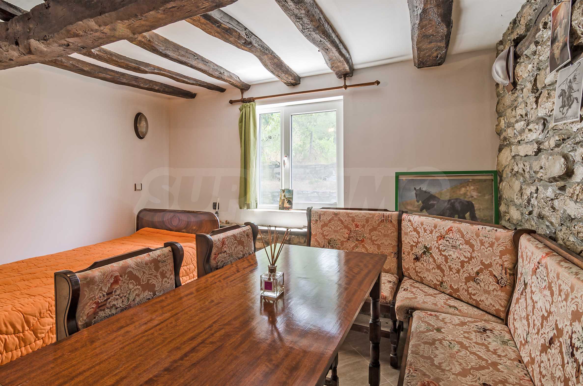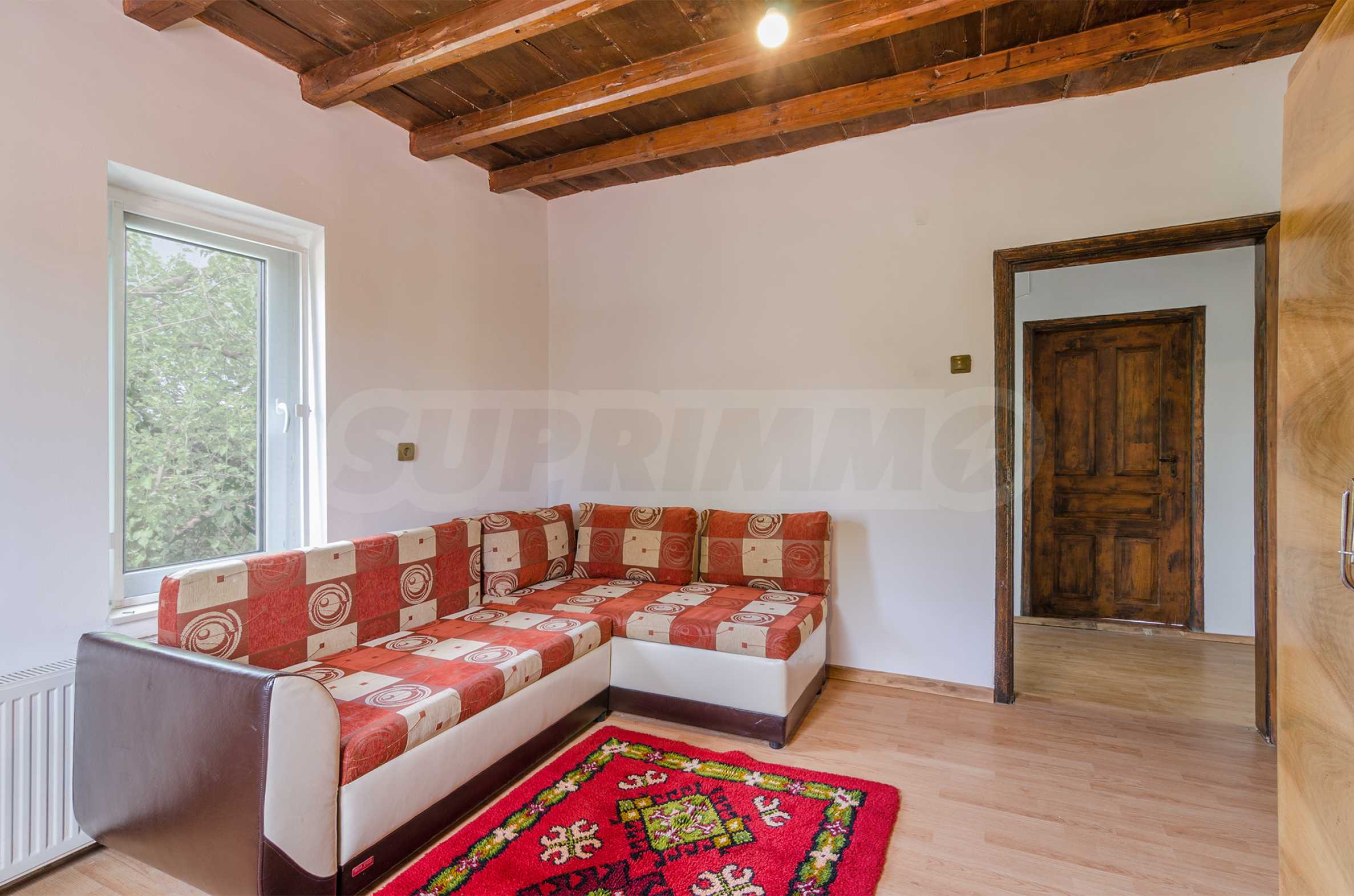 The yard is very large - 3350 sq m. It has a well, fruit trees, several large walnut trees and two preserved farm buildings of about 100 sq m and a garage.