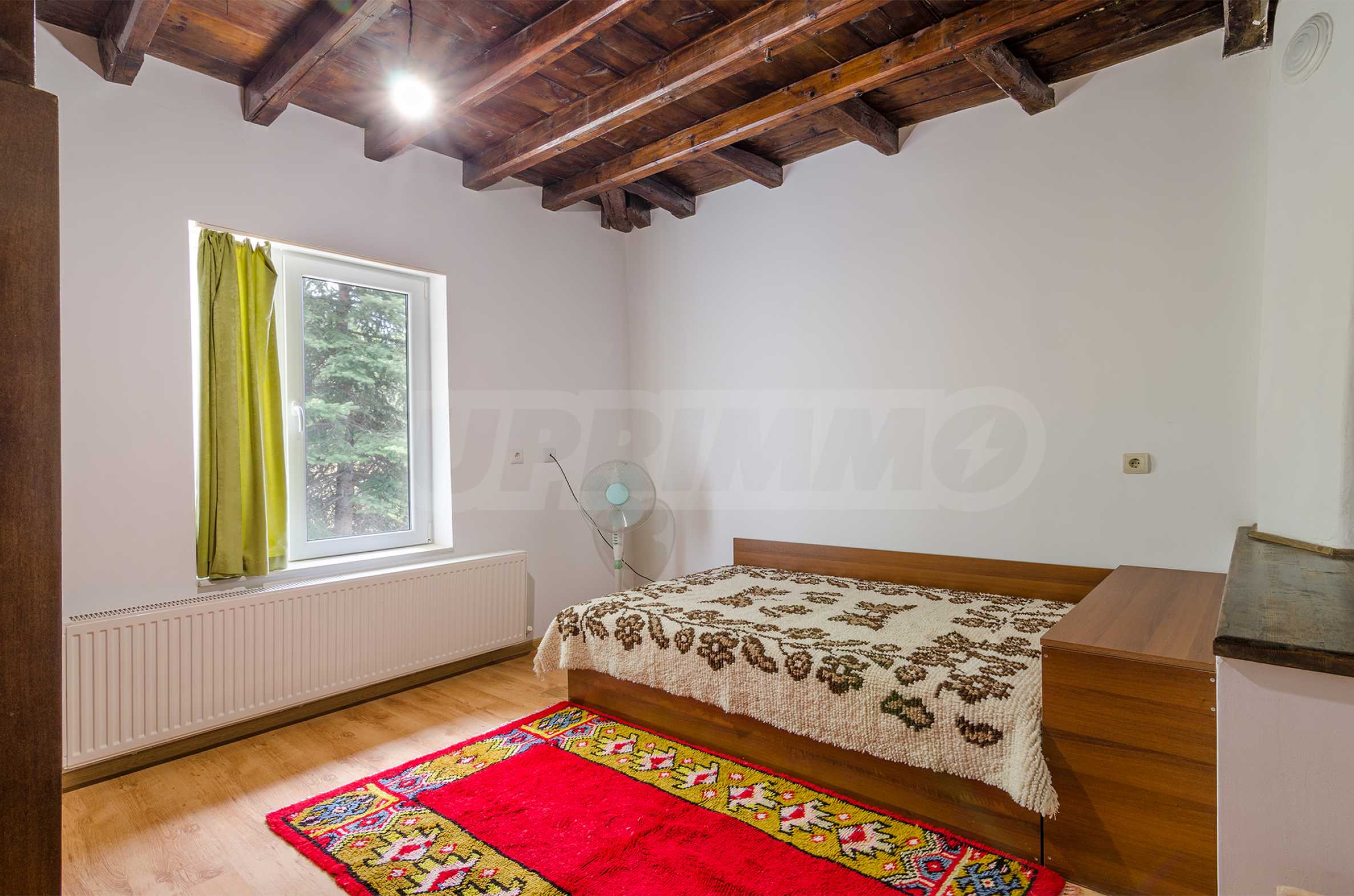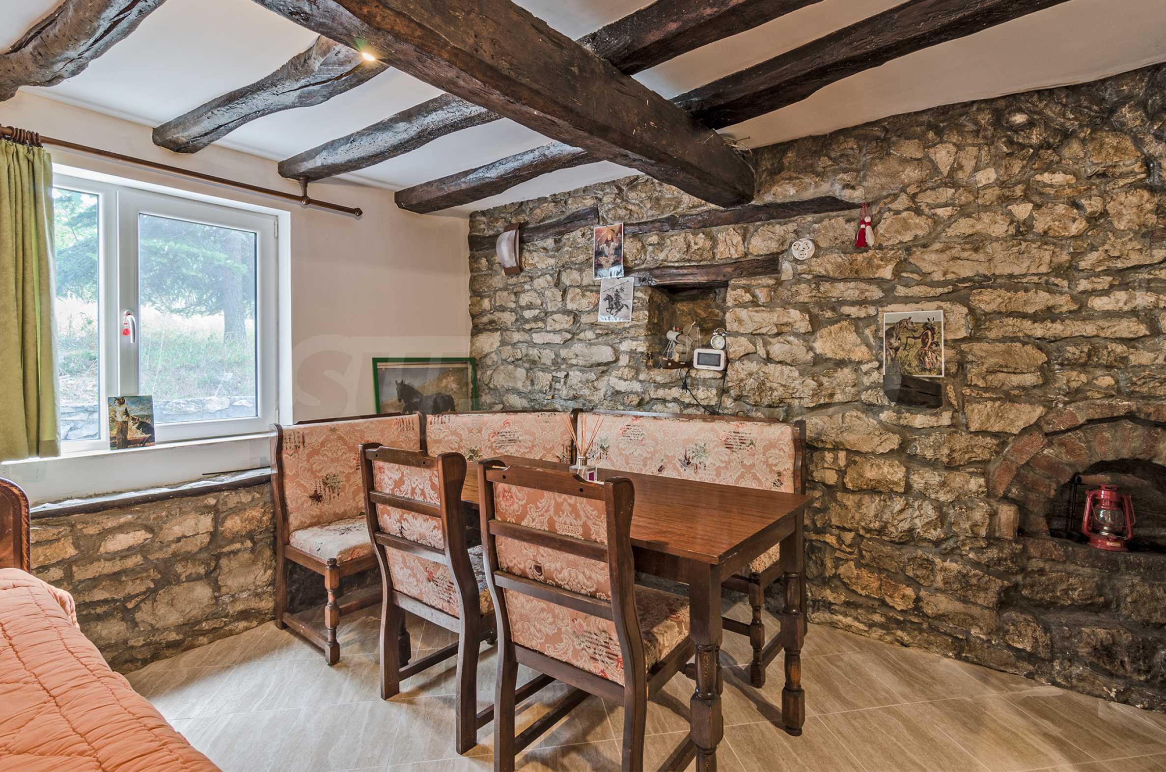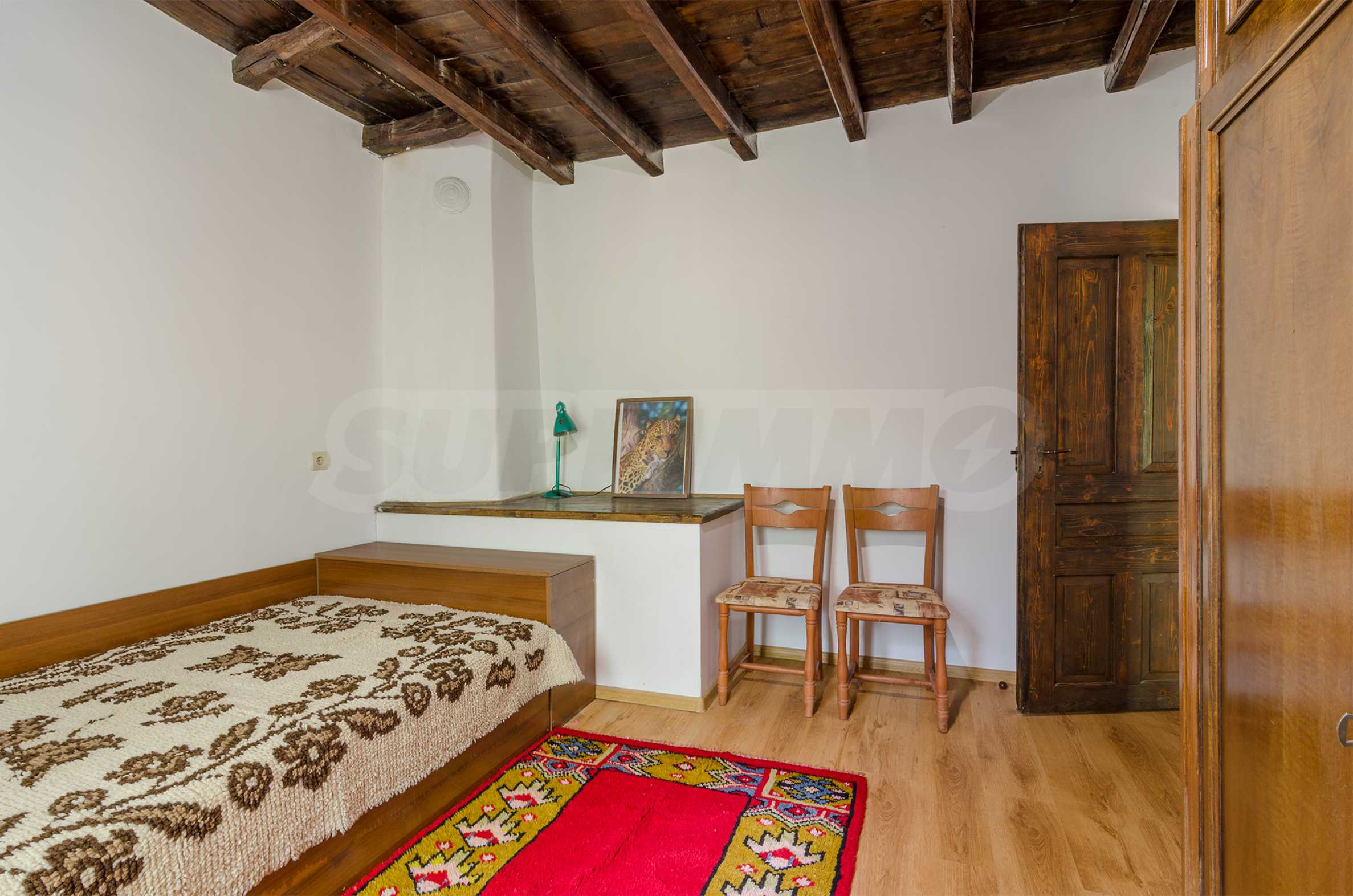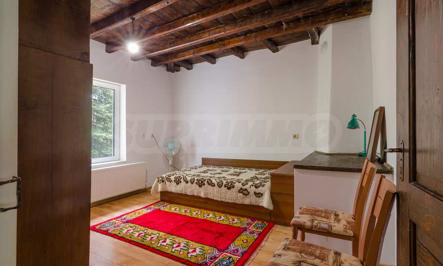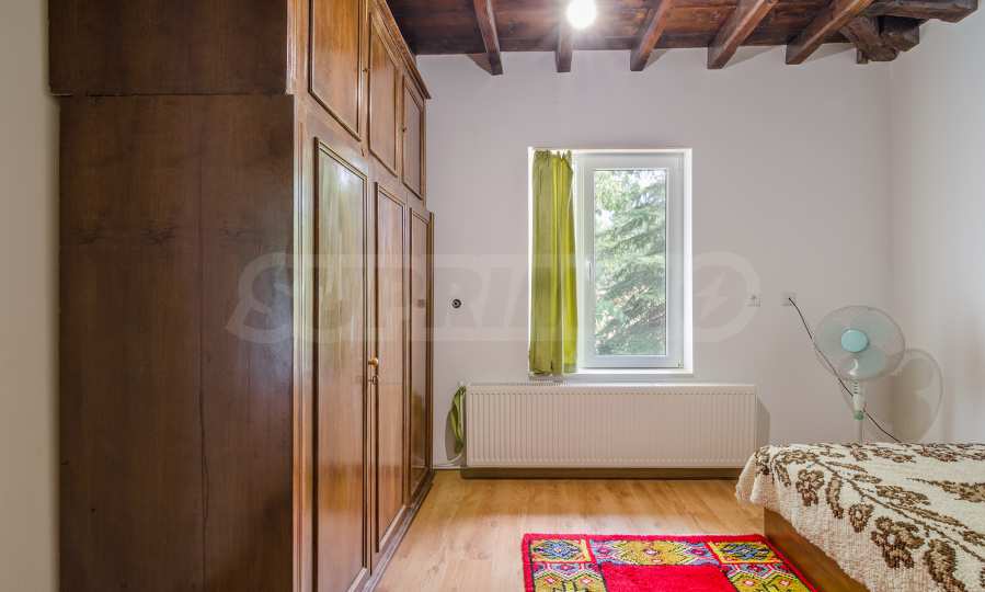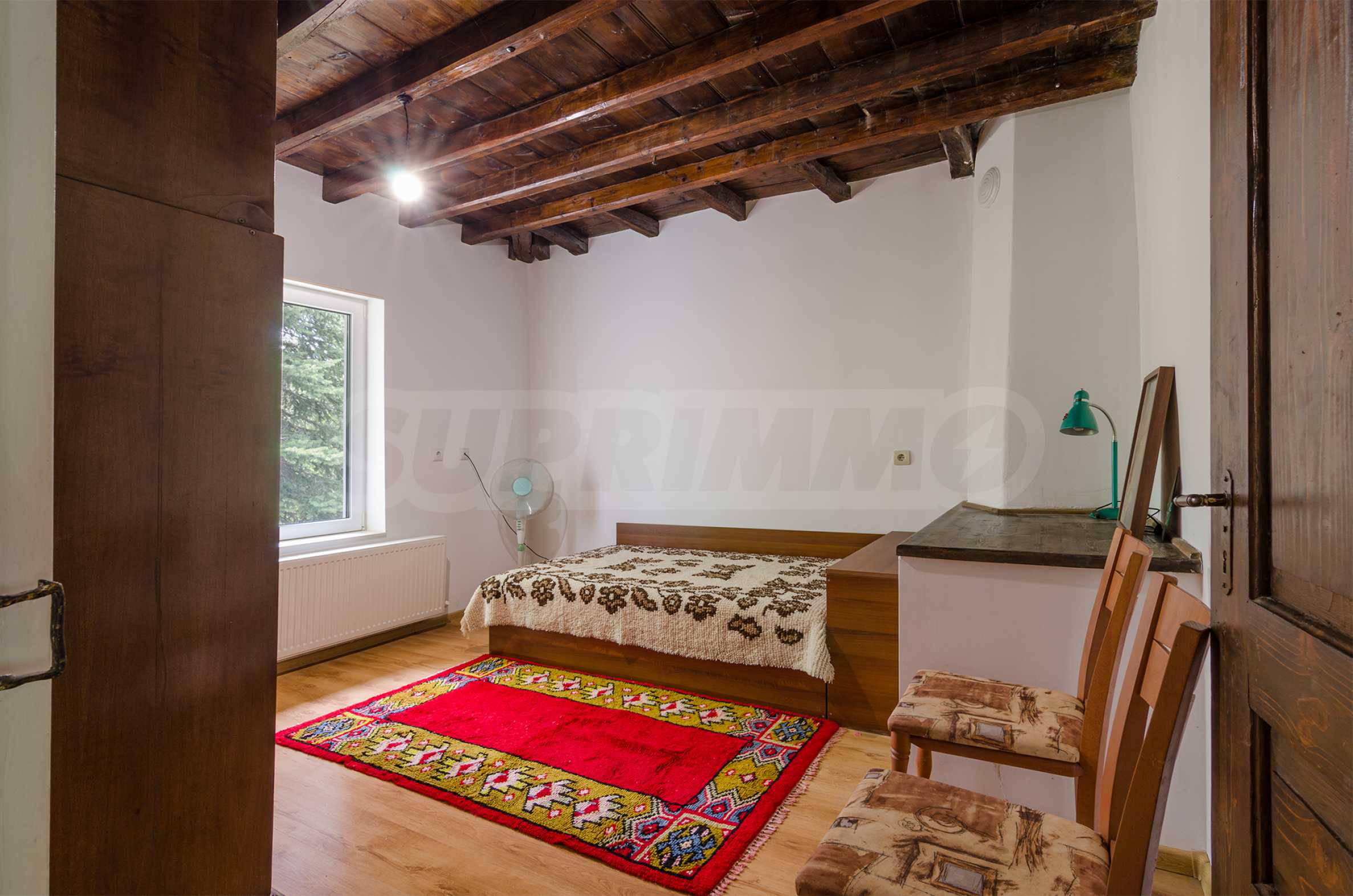 The yard is very large - 3350 sq m. It has a well, fruit trees, several large walnut trees and two preserved farm buildings of about 100 sq m and a garage.