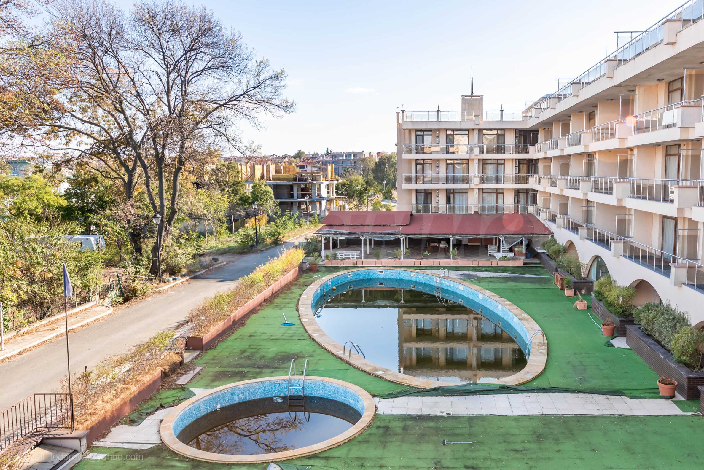 We present an operating hotel, ready business for sale, located in close proximity to the sea. It is surrounded by a massive fence, has a large swimming pool with a children's section, a restaurant, a beautifully landscaped yard and enough parking spaces for visitors.