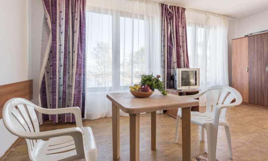 All apartments are typically furnished, according to the square footage, they have a fitted kitchen with electrical appliances, a dining area and beds. Each apartment has a combined bathroom, a terrace, and almost every apartment has a view of the sea.