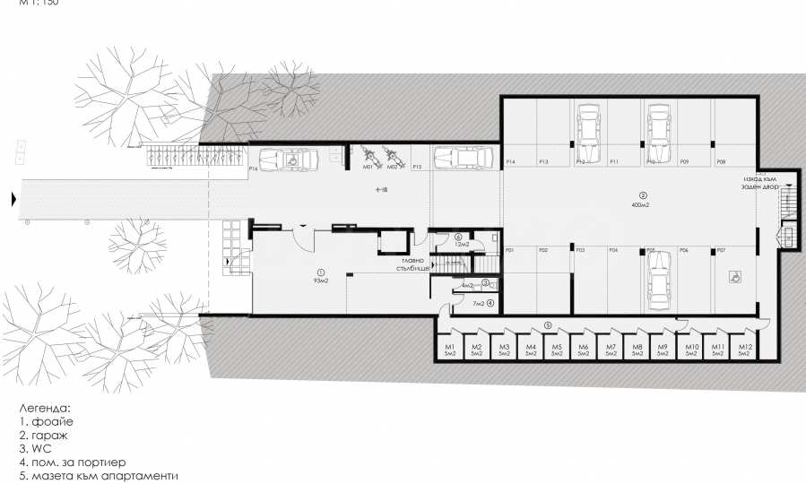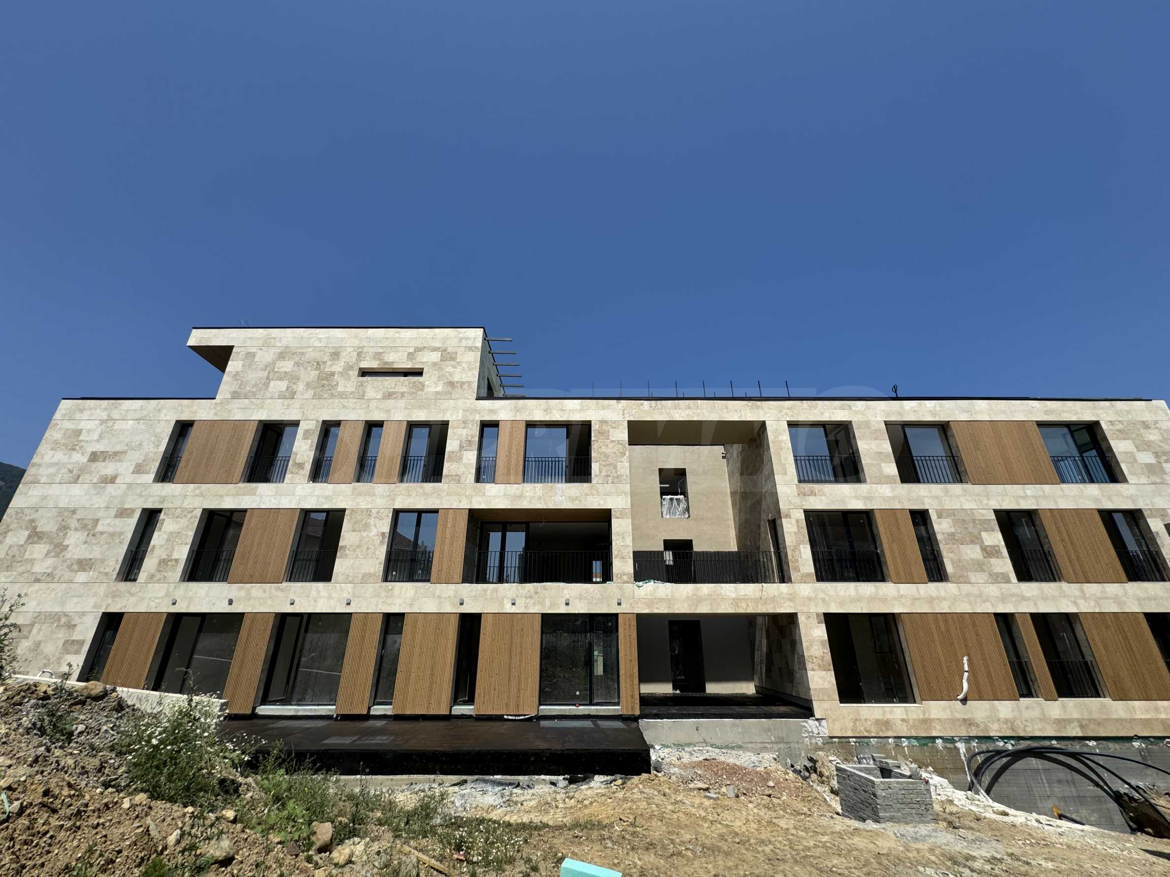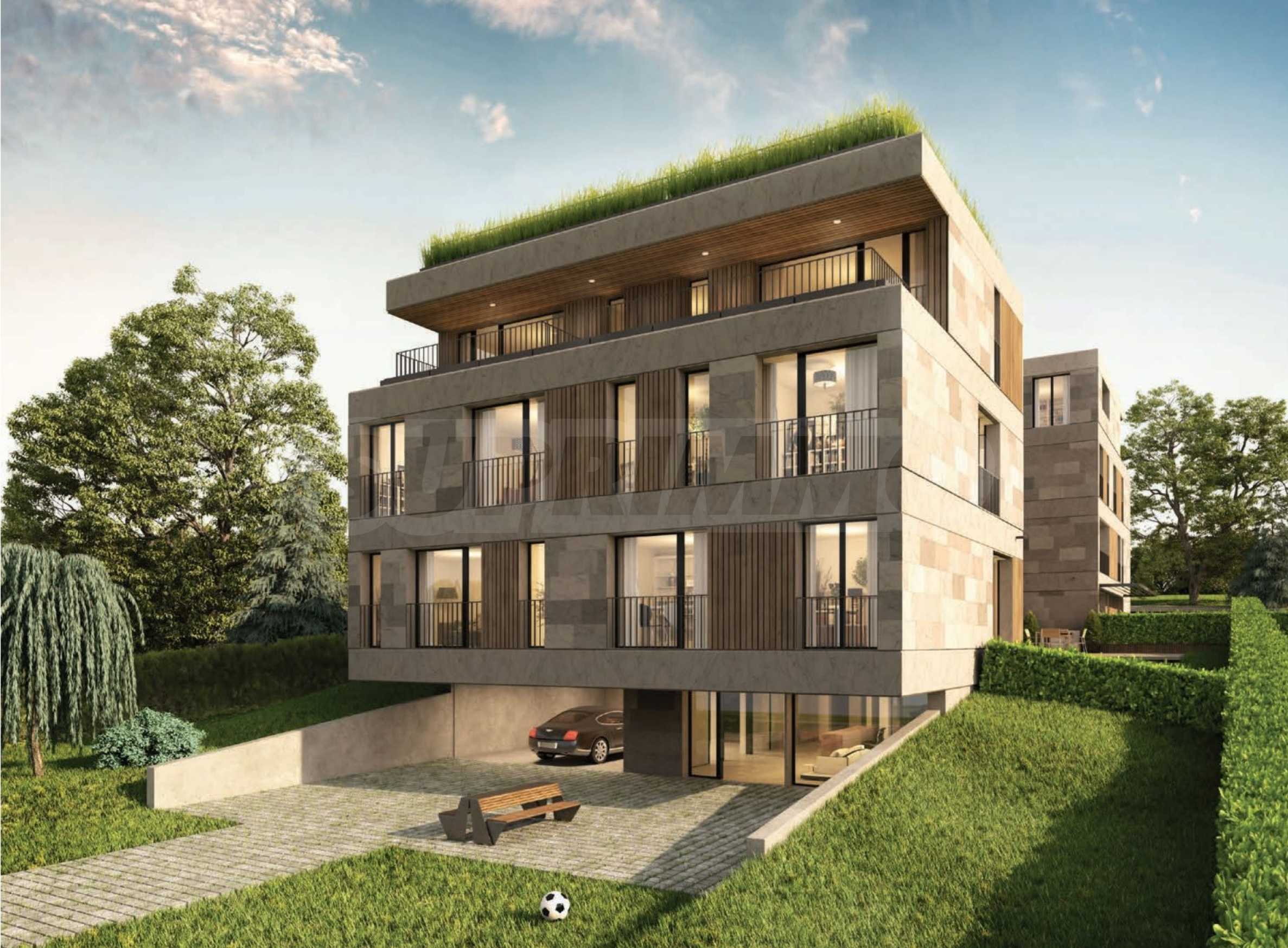 The building is boutique, of gated type and offers a richly landscaped yard and a large number of trees to ensure a cool microclimate in the summer. The execution is of high quality, provided mainly with natural materials - facade with natural stone cladding and partial cladding with natural wood - Siberian larch. The apartments have high ceilings, high-class aluminum joinery and French glazing. The approach to the apartments is through a spacious lobby, and the vertical communication is carried out by means of an elevator and a representative staircase with natural lighting and ventilation.