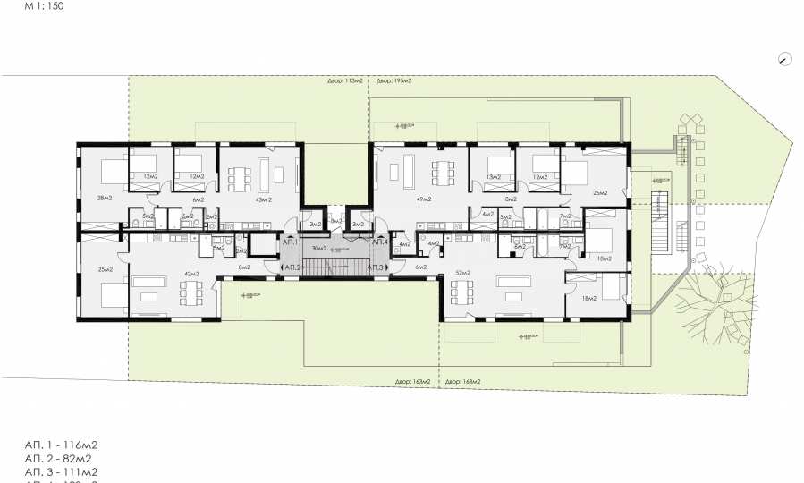 - yard - 163 sq m;