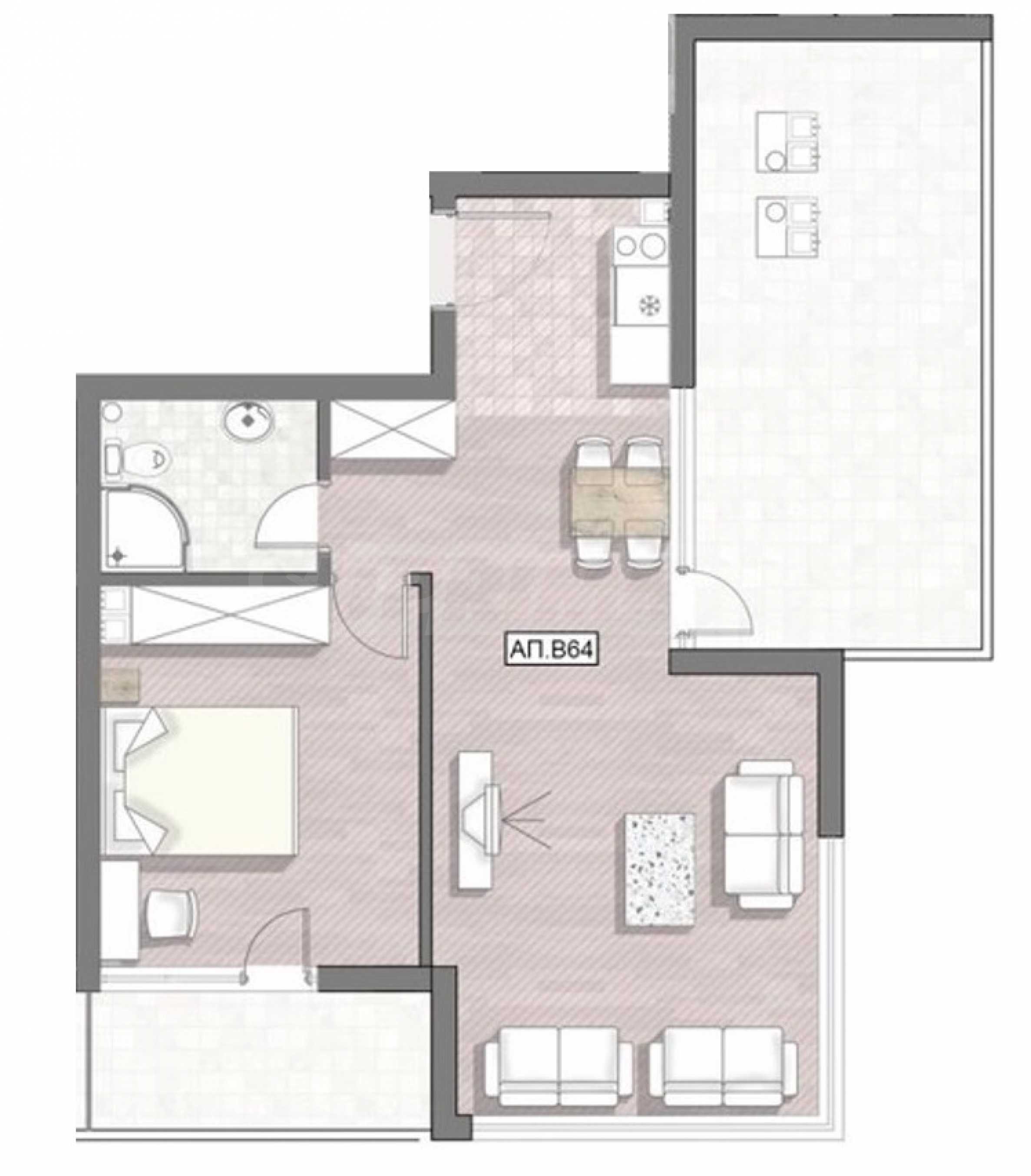The property of 96.75 m2 is located on the 6th floor of 6, facing south and west. Offered turnkey, unfurnished. There is also the possibility of furniture.