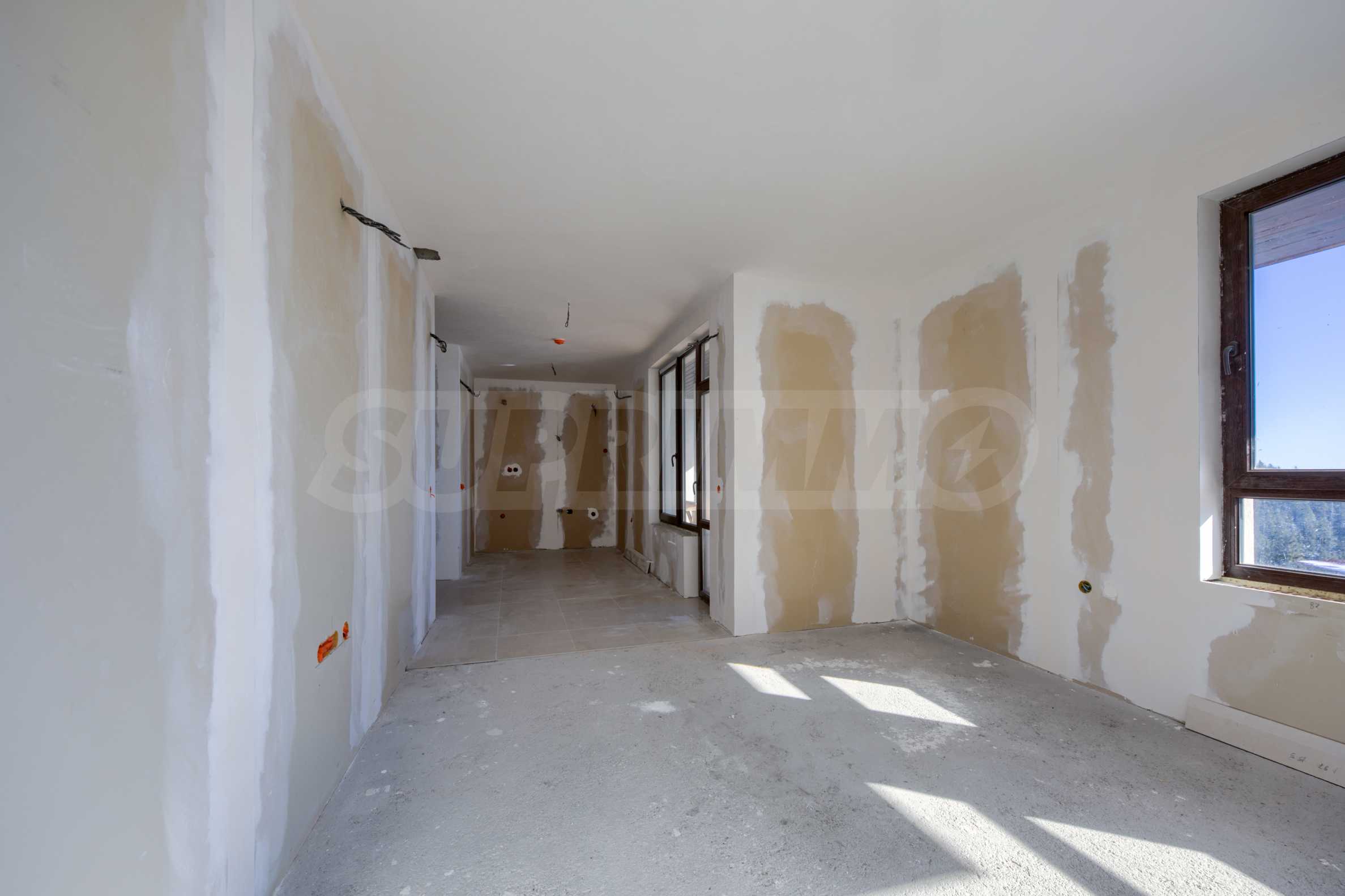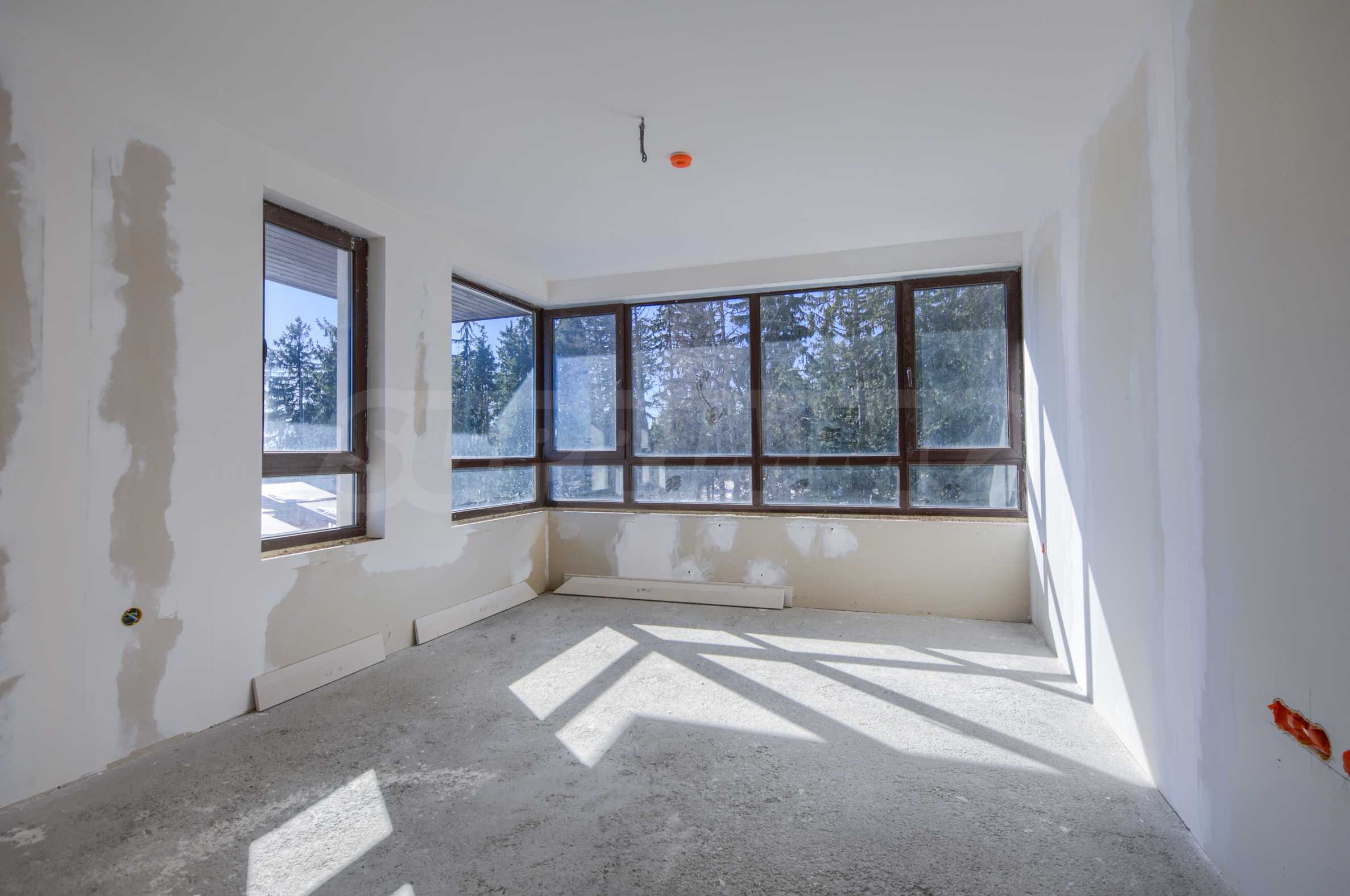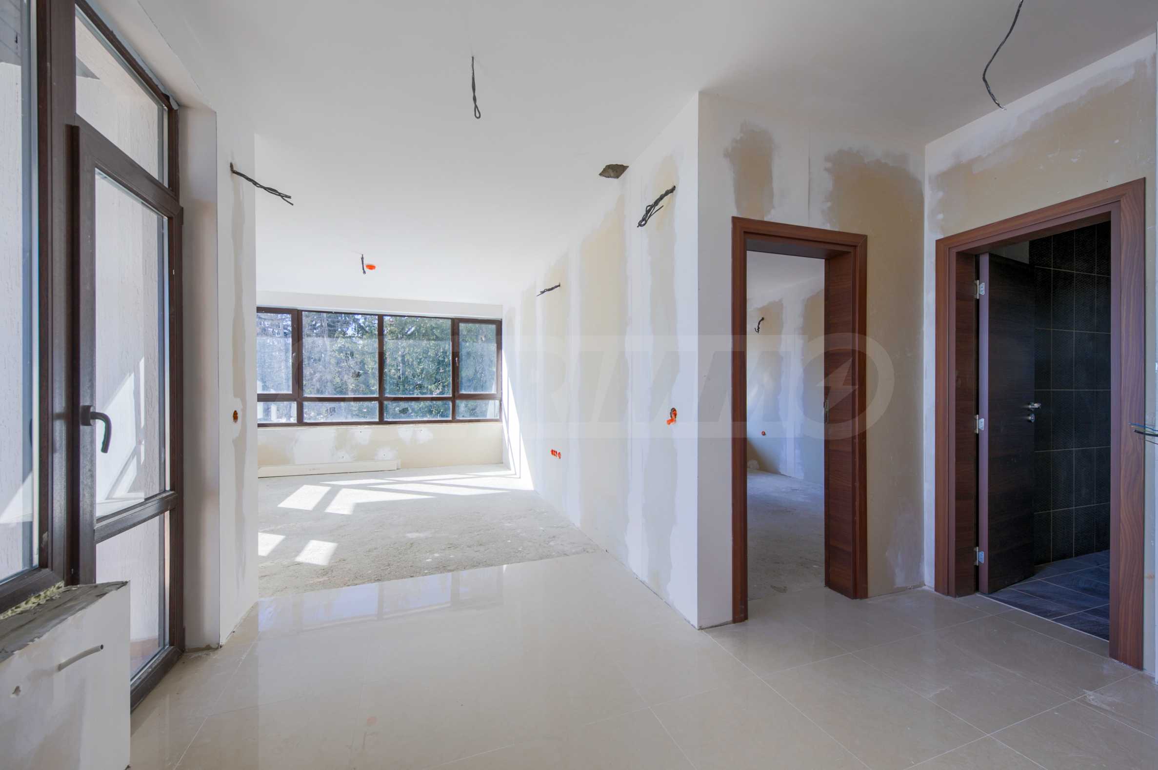 The complex consists of three sections - two buildings with apartments, each with two entrances, and another building - a hotel with a swimming pool and spa, with service and service rooms. The buildings are excellently located on a 10-acre plot. Close to villa villages and dozens of independent private villas, the complex fits magnificently into the unique nature of the Rhodopes.