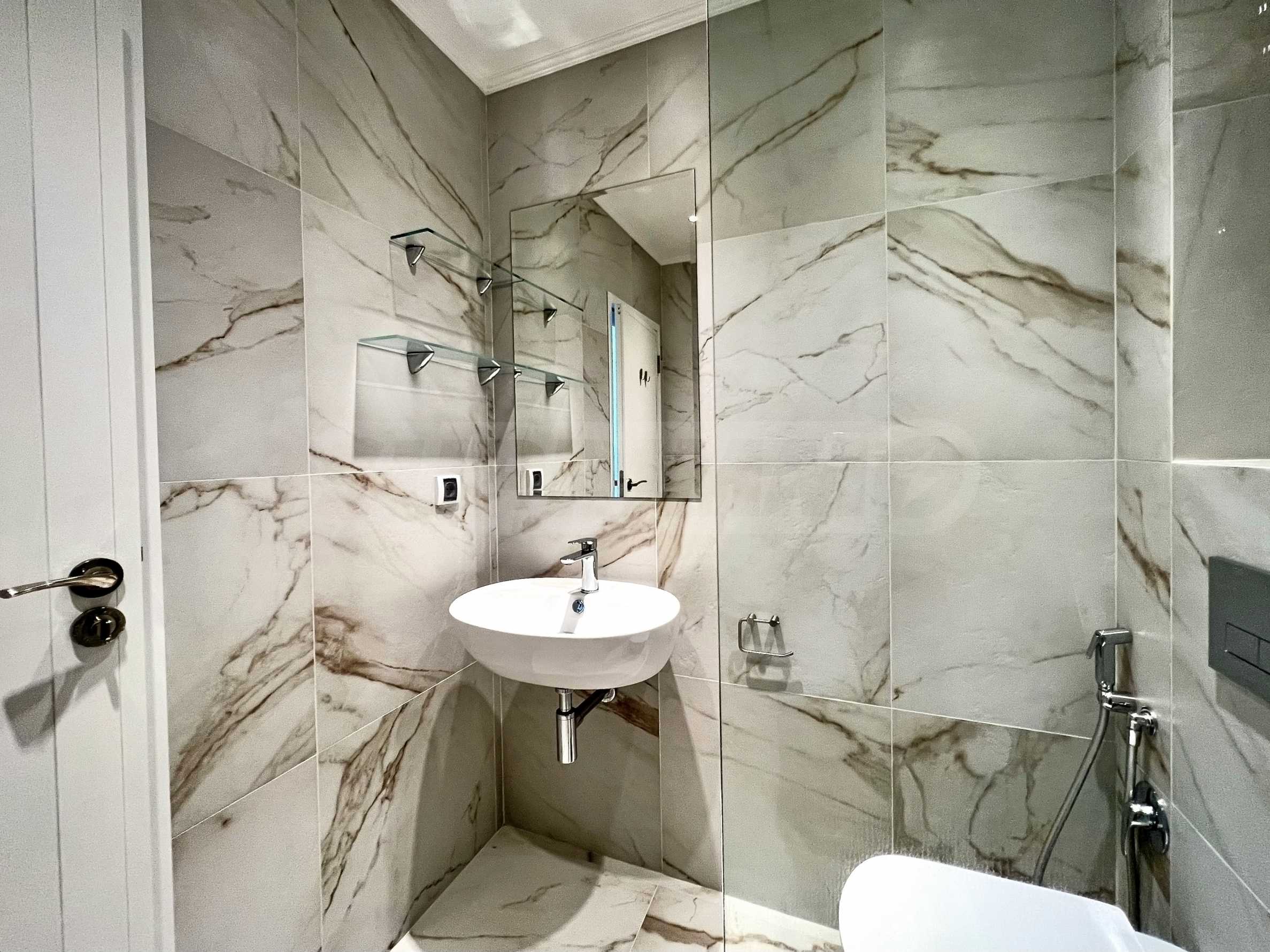 The garden in the complex is equipped with a children's playground, benches for rest, alleys for walking and enough green areas. The apartment is located both close to main roads and at the same time its location on an internal street brings unusual peace and quiet for the city.