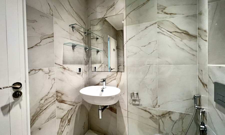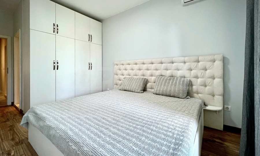The apartment is spacious, stylishly furnished, with quality custom-made furniture and equipped with everything needed for a household. The furniture is custom-made by "Dialog", the tiles and upholstered furniture are by Rilus, the oven is Electrolux, the dishwasher is by Bosch, and the washing machine is by Gorenje. The built-in wardrobes in the hallway allow for storage of enough luggage. The apartment has a security system and wiring for internet and cable, and the tenant will have a choice of service provider.