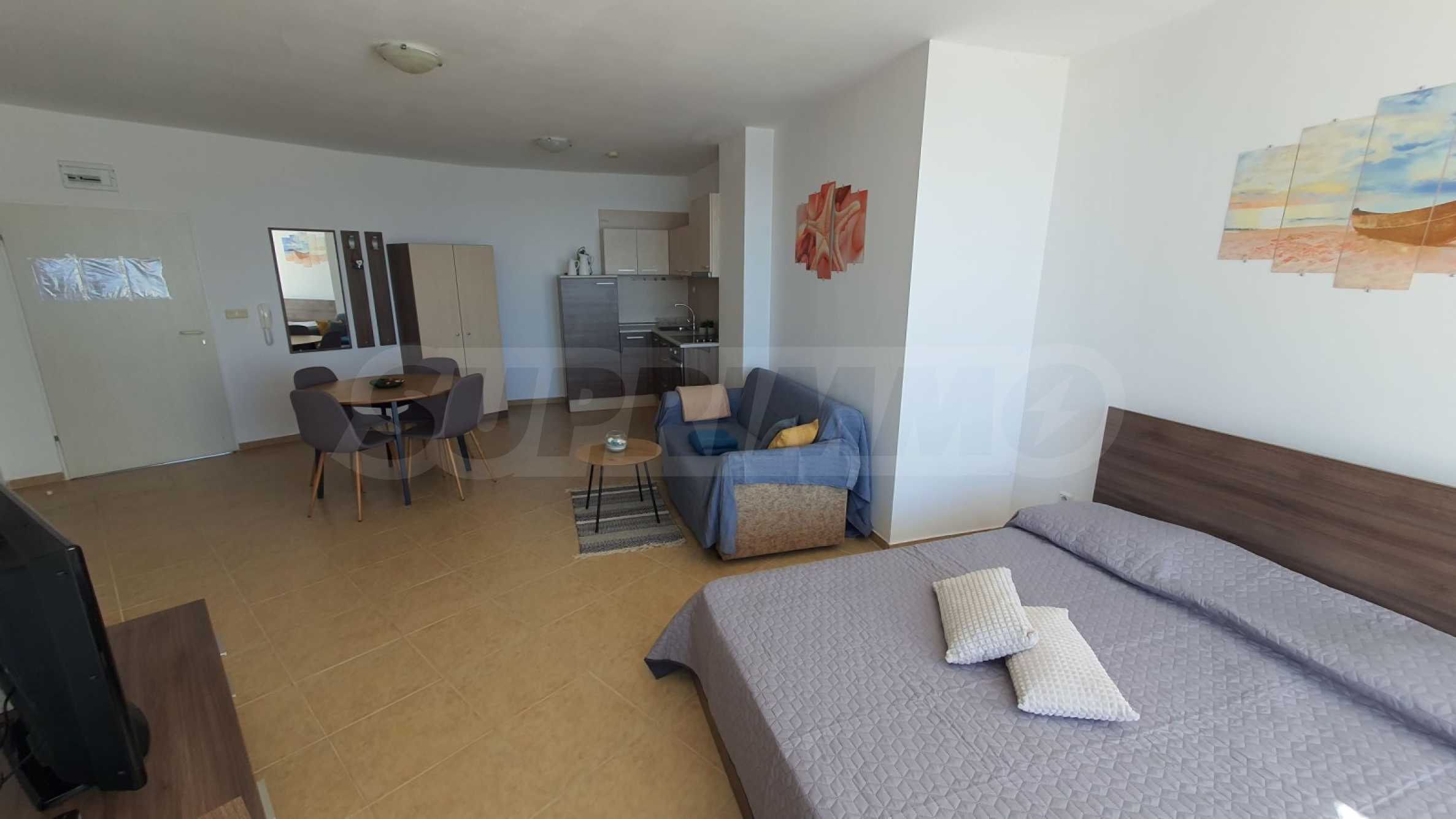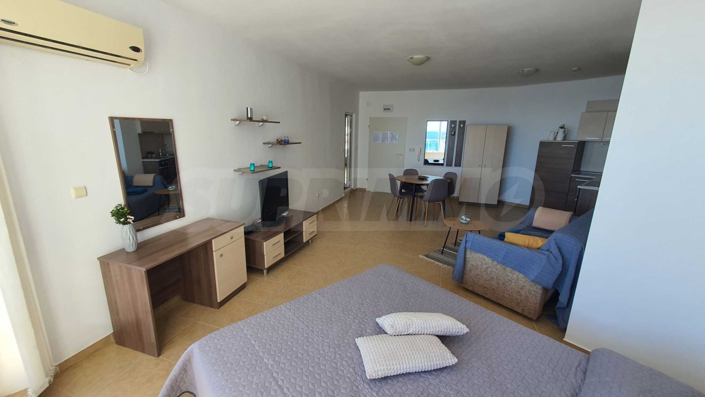 We present a fully furnished, spacious studio of 57.49 m2 for sale near Ravda. The studio is part of the popular complex with amenities, located in a quiet location between Aheloy and Ravda.
