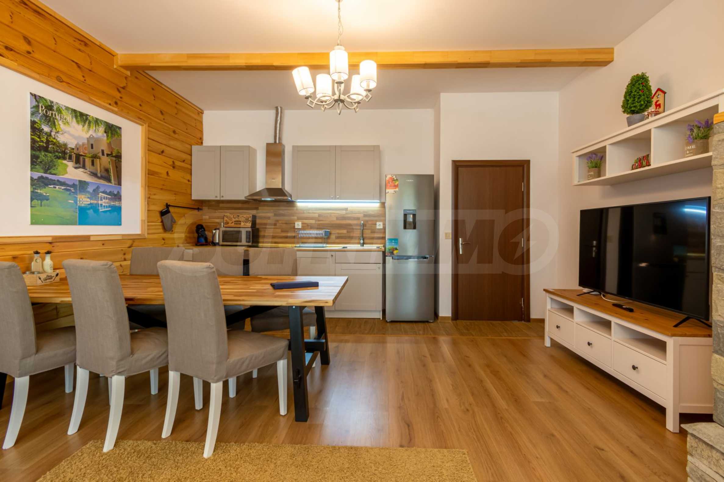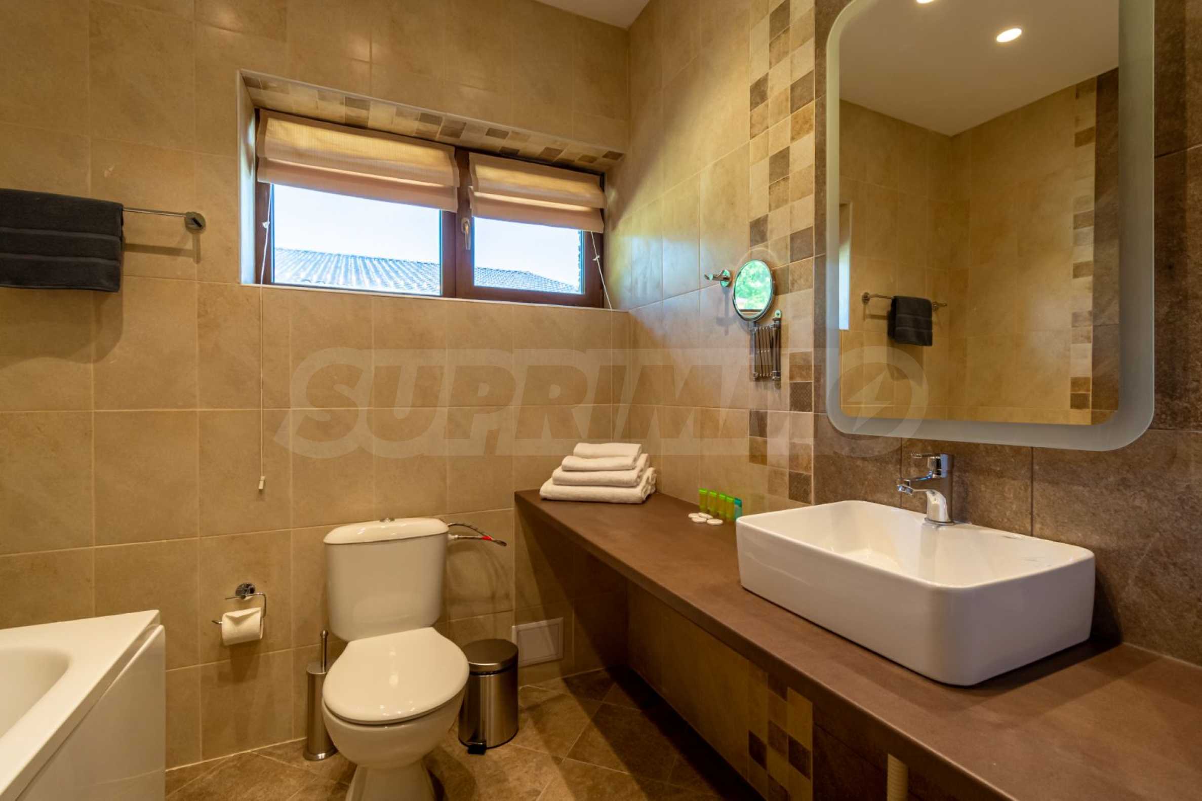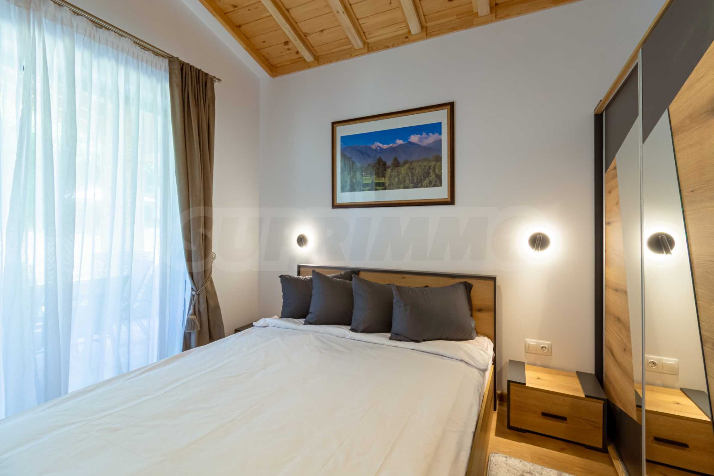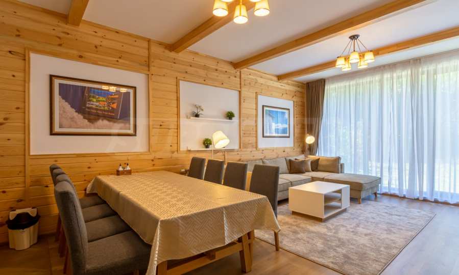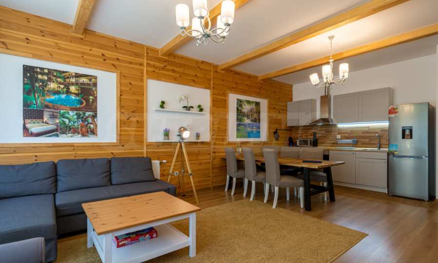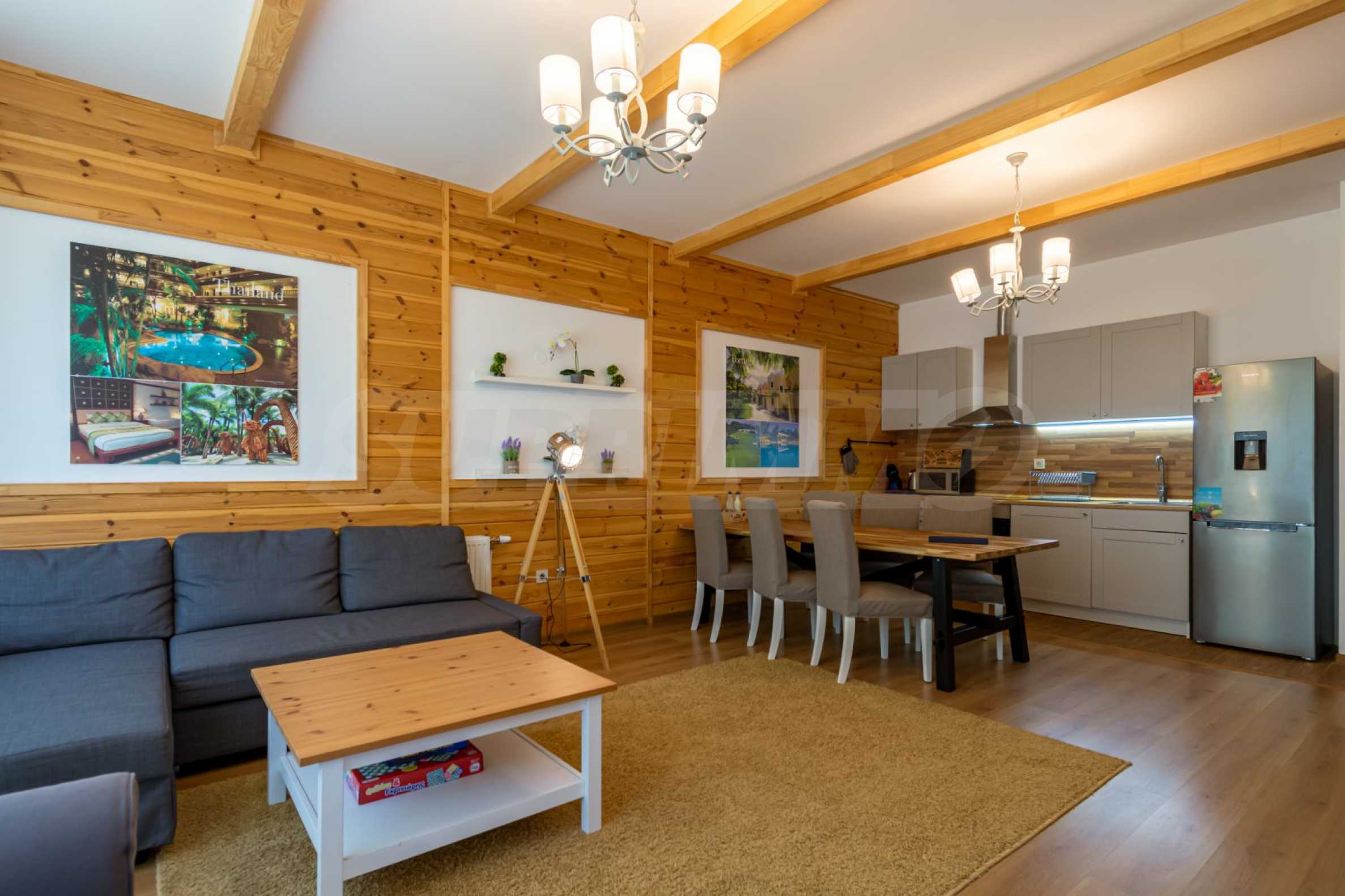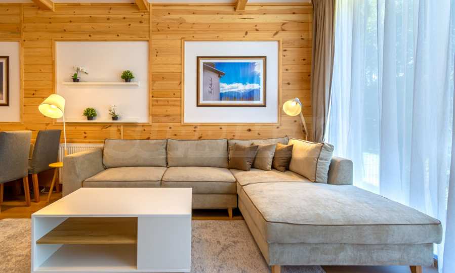 The place will definitely appeal to lovers of golf and spa treatments, as it is located next door and shares a fence with Pirin Golf Club, and less than 50 meters away is the central 5-star Pirin Golf Hotel and SPA with numerous thermal and therapeutic areas.