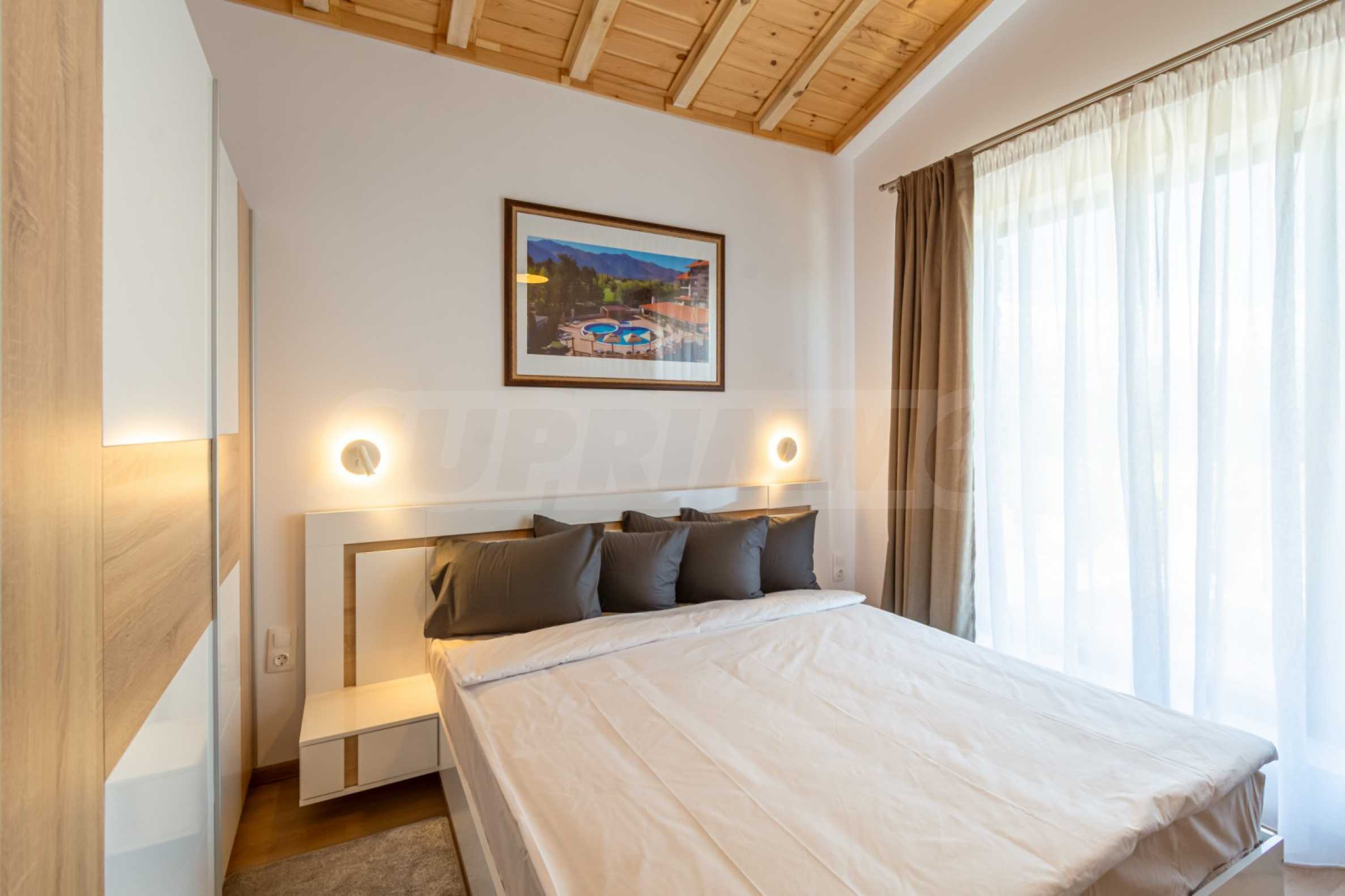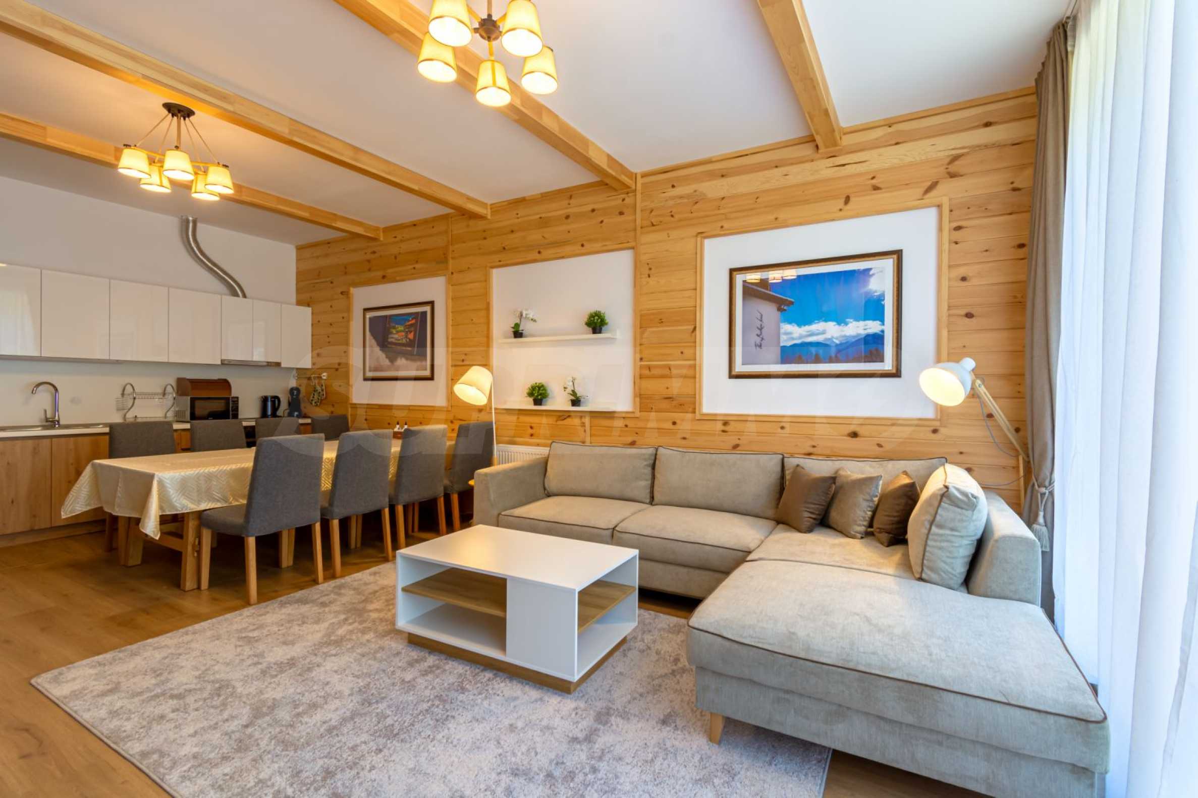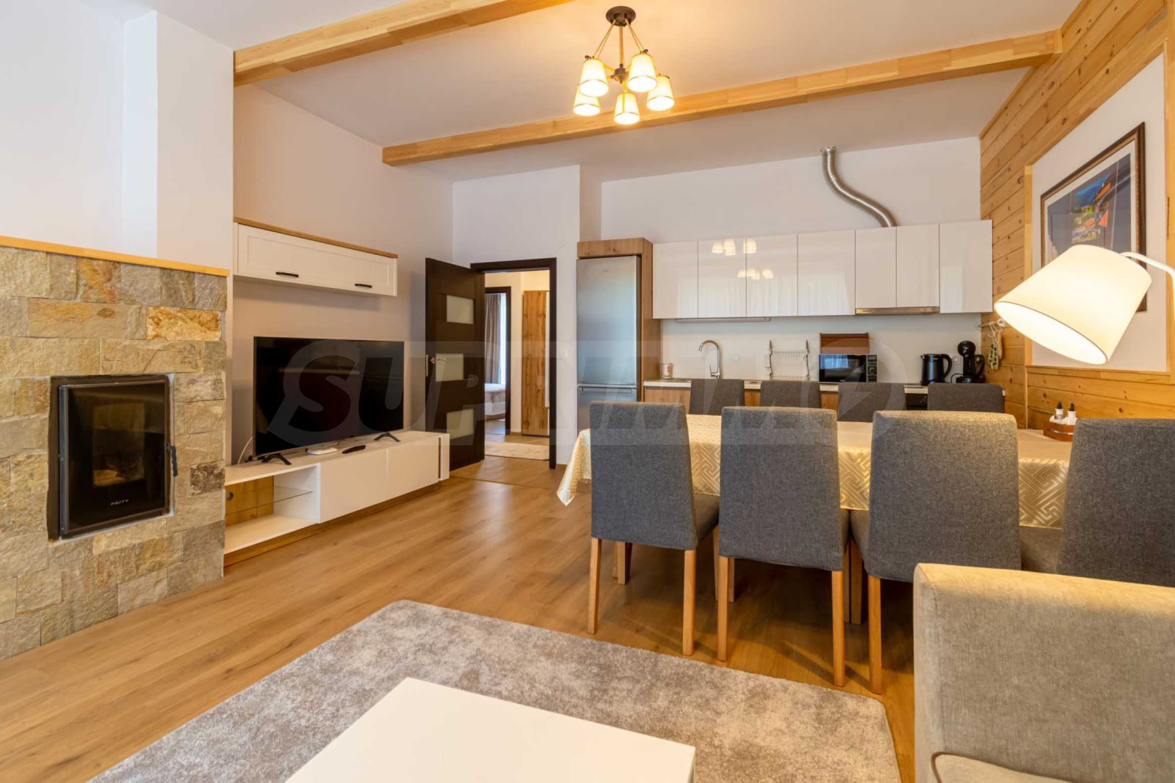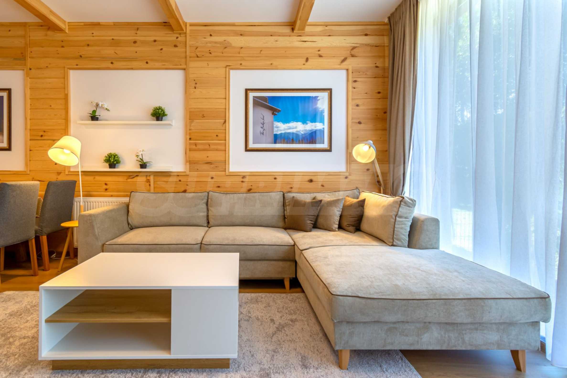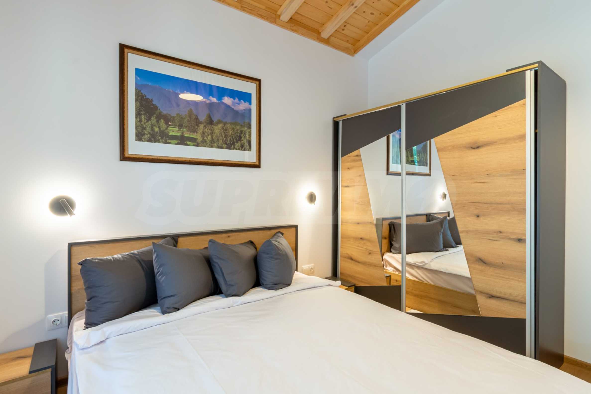 The place will definitely appeal to lovers of golf and spa treatments, as it is located next door and shares a fence with Pirin Golf Club, and less than 50 meters away is the central 5-star Pirin Golf Hotel and SPA with numerous thermal and therapeutic areas.