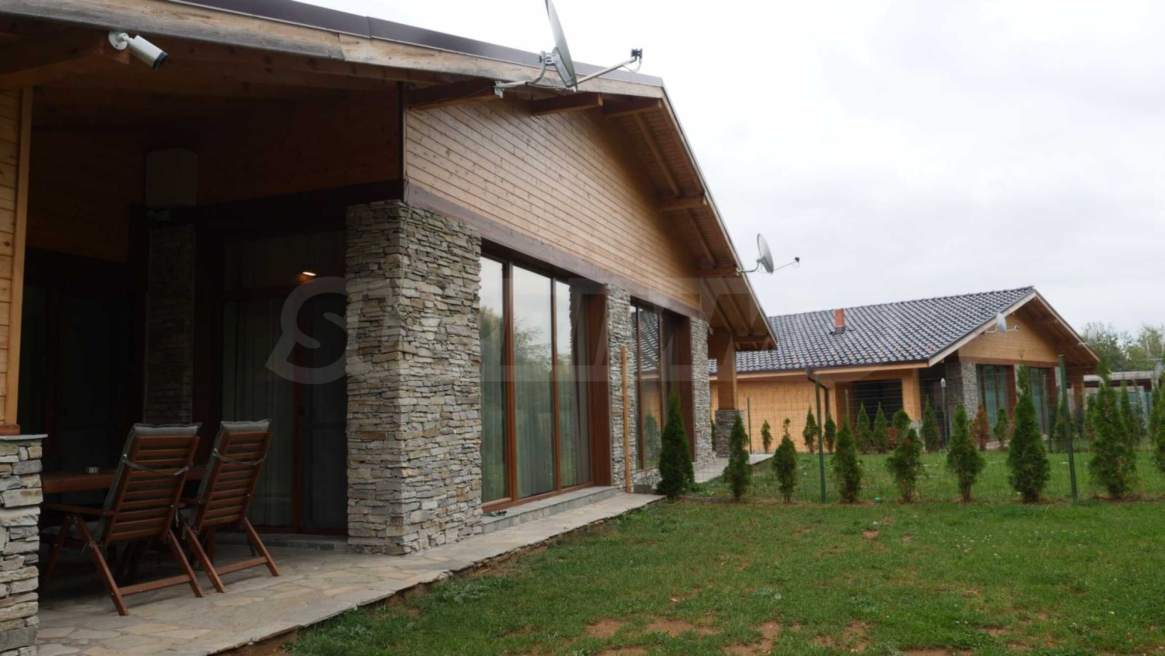 From the outside, the houses are fully insulated according to modern requirements and are faced with cut stone and wood, which makes them cool in the summer and warm in the winter months.