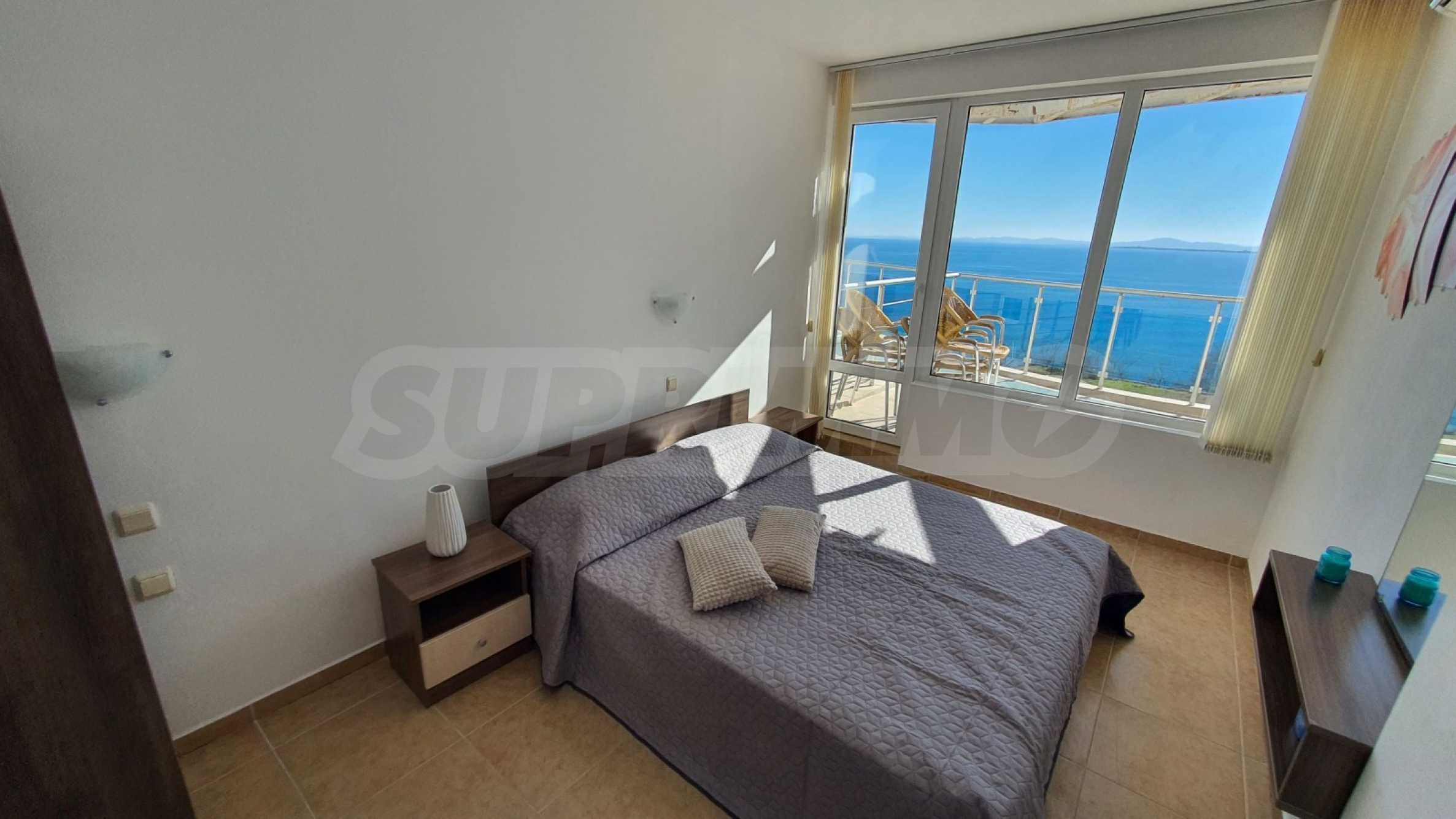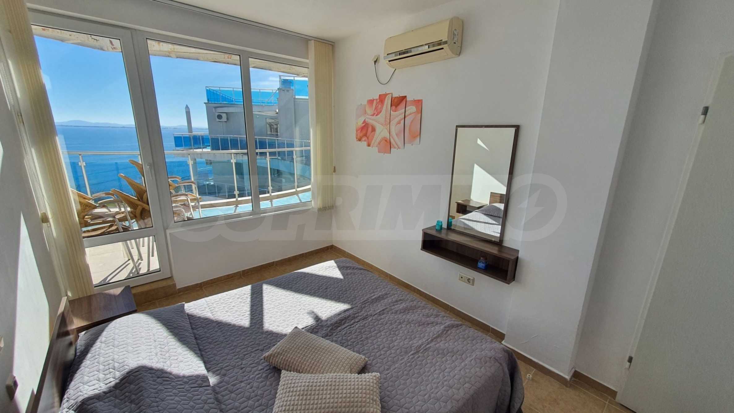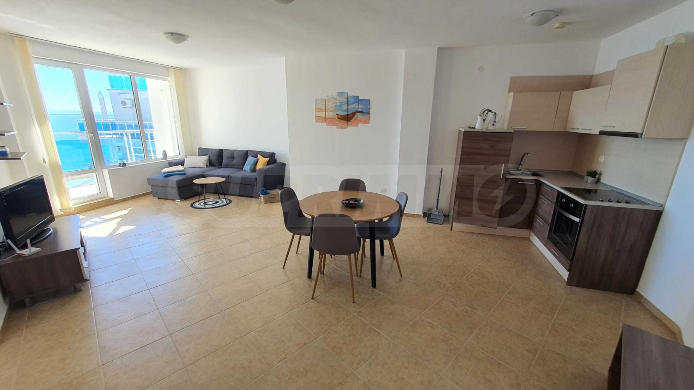 The apartment is located on the 5th floor and offers a frontal sea view from a super spacious terrace. The apartment is modernly furnished and excellently equipped, it is sold with furniture and appliances, it is a suitable option for both personal use and investment.