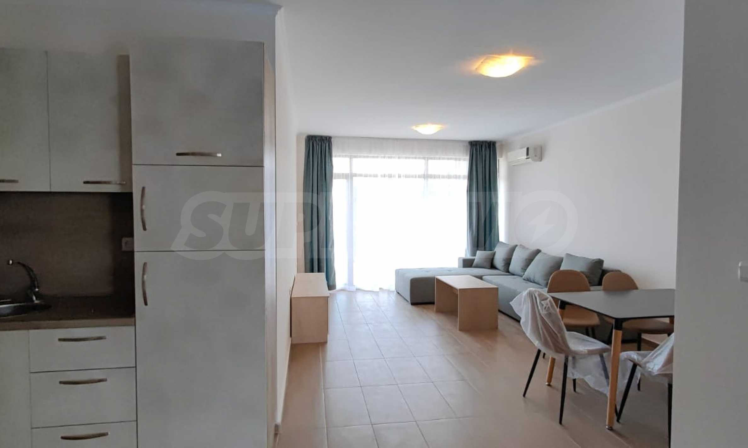 We present a functional three-room apartment, qualitatively finished and modernly furnished, in an excellent complex with swimming pools, on the first line in Saint Vlas.