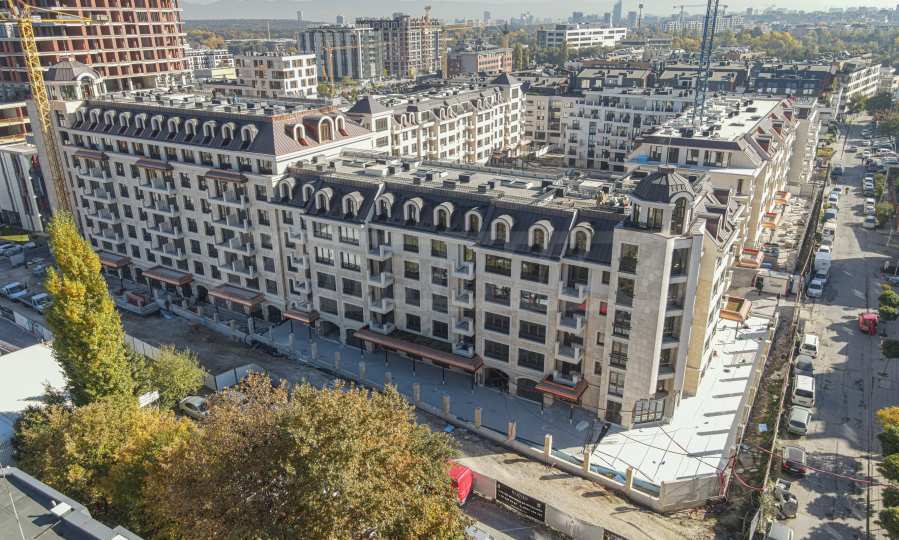 The complex consists of 4 residential buildings, an underground car park with garages and parking spaces, security, a richly landscaped extensive park area with a children's playground, recreation areas, a spa center with an indoor swimming pool and a gym, a bistro and a reception with concierge functions that will make the prospective owners get their full 5-star amenities, coziness and living comfort.