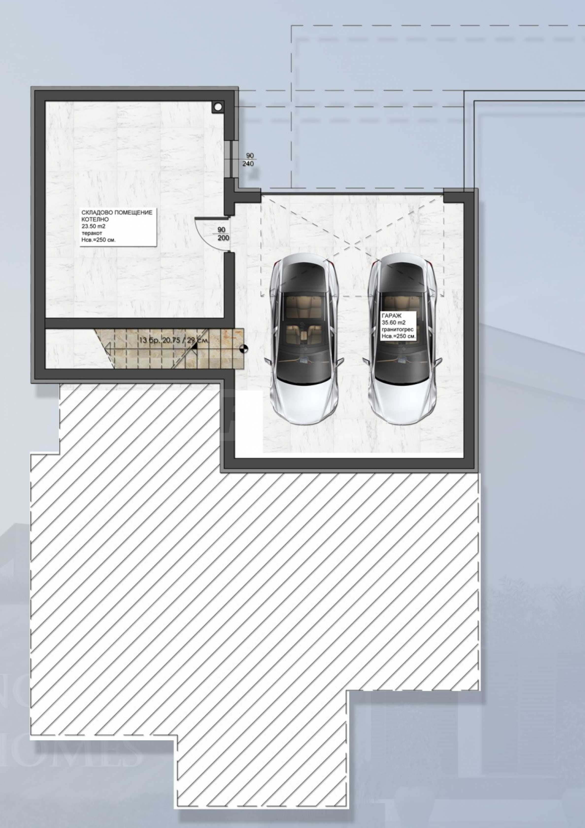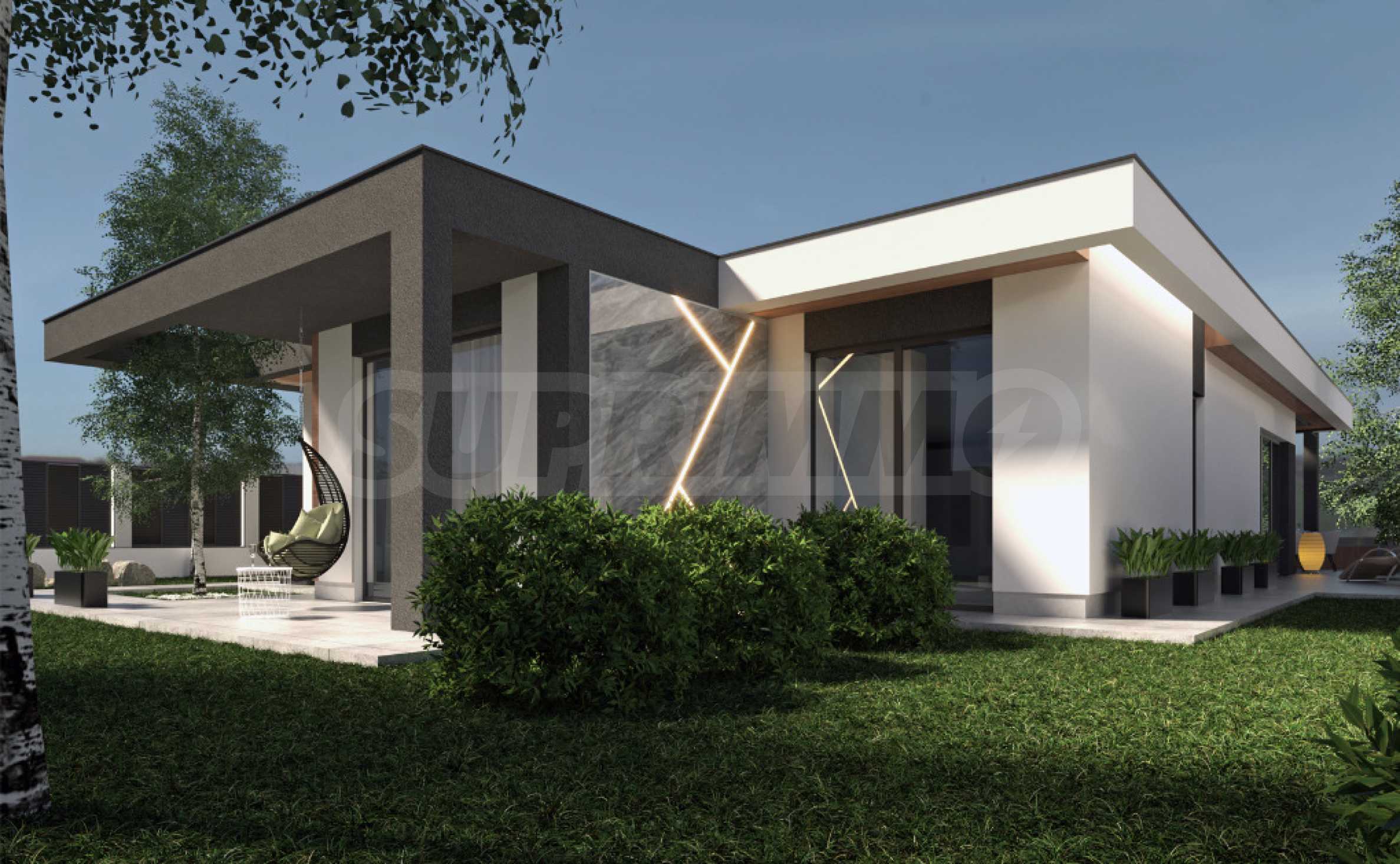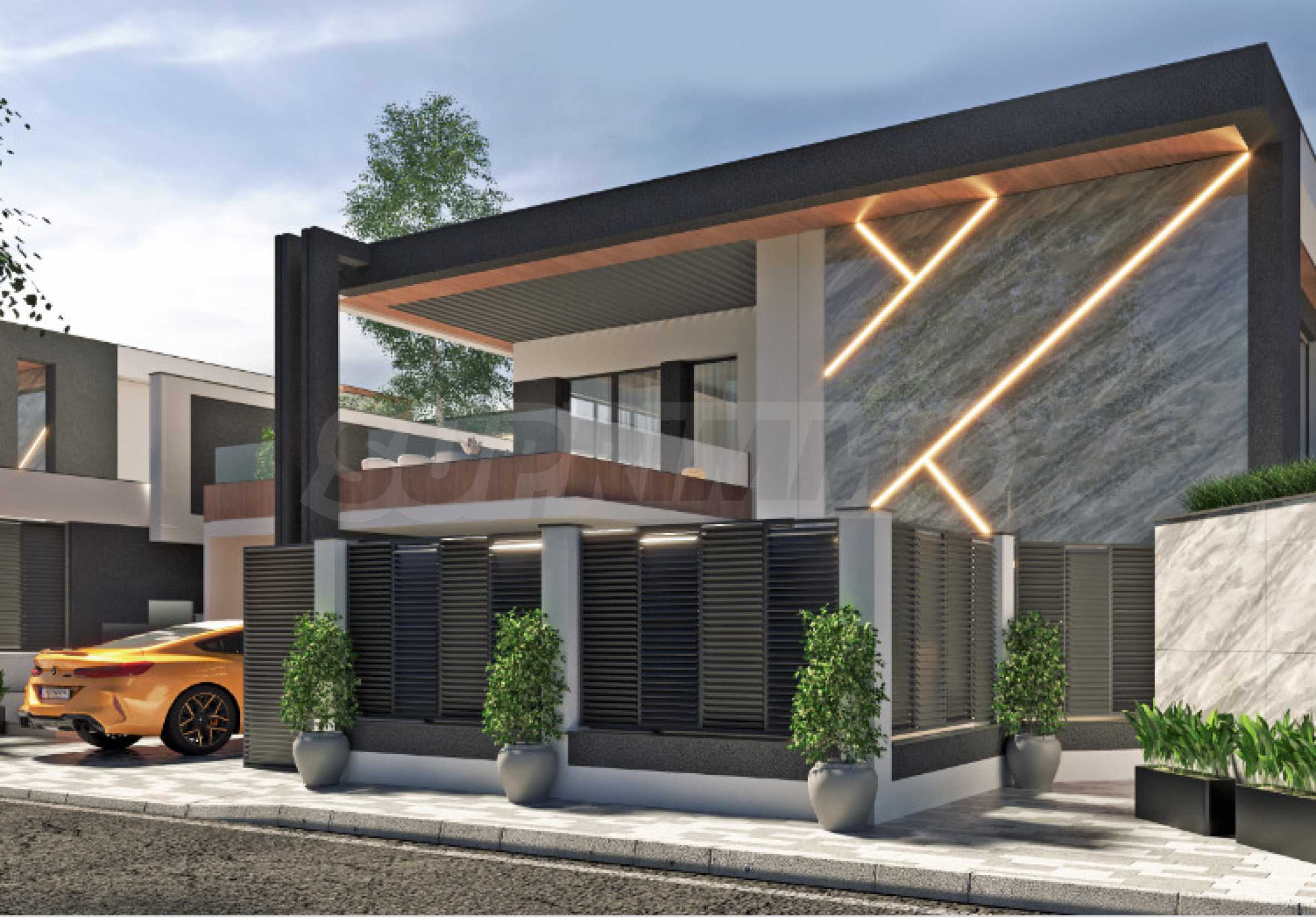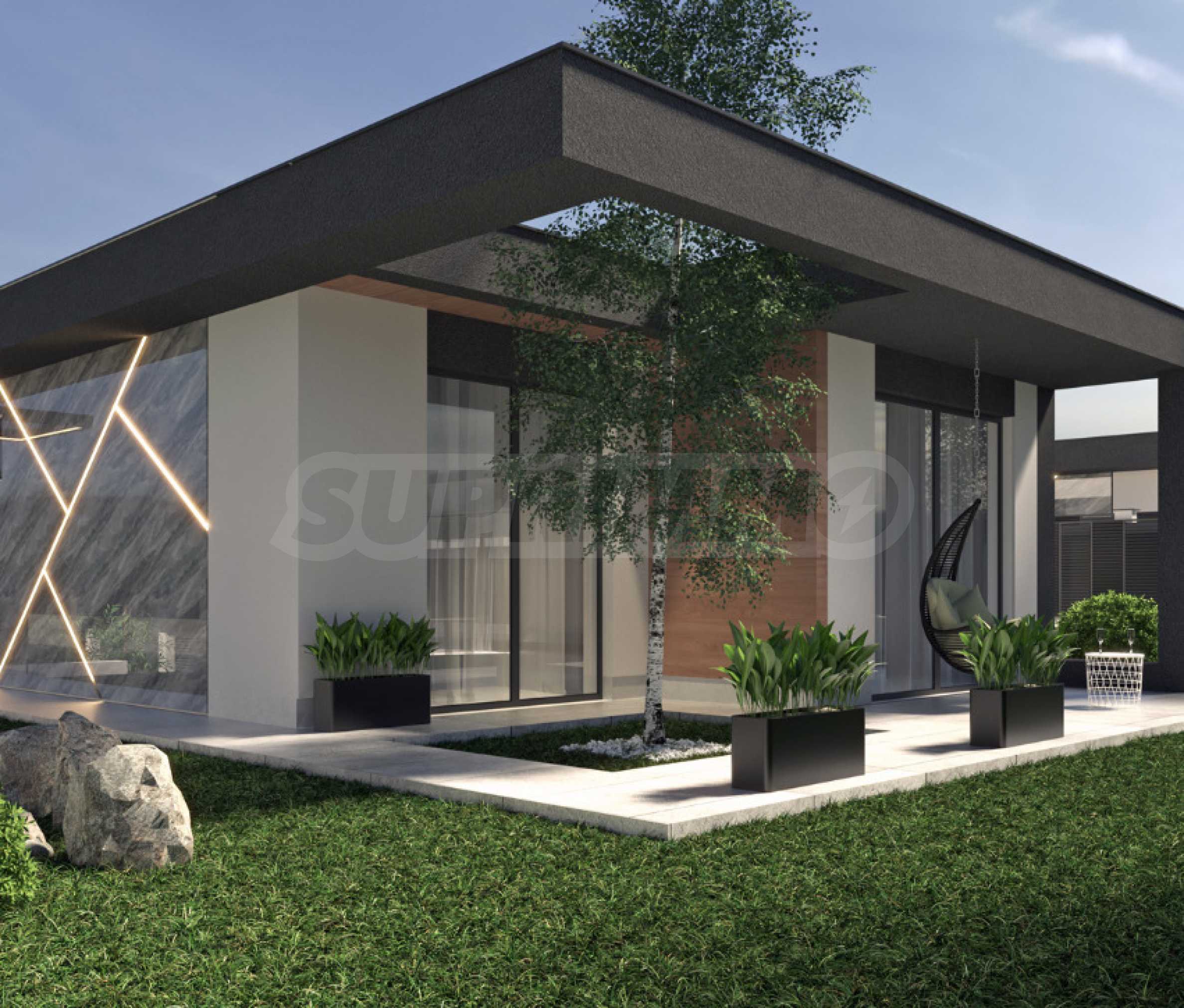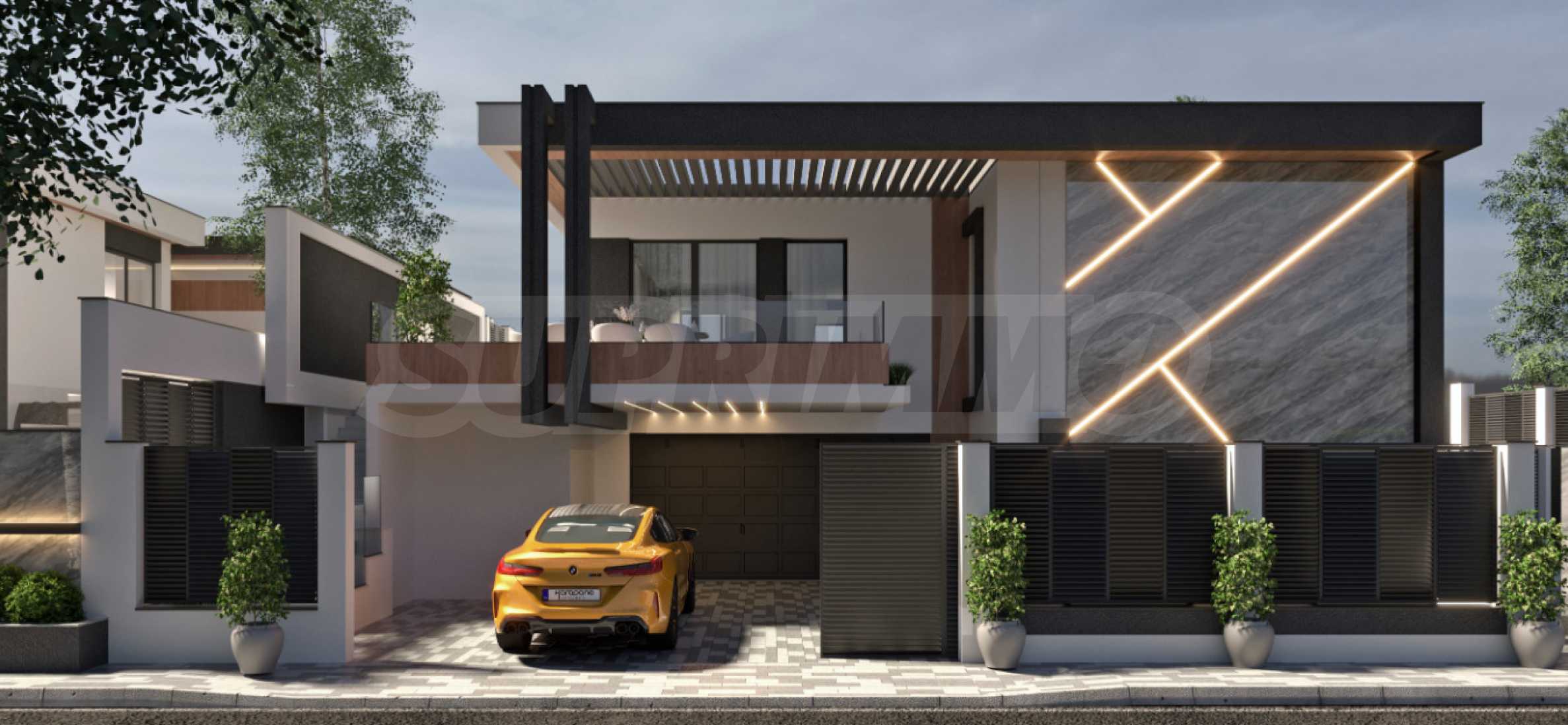 The houses are in 5 different designs, with a built-up area of 215 to 330 sq.m, distributed on one or two levels, with an attached garage for 2 cars and a private yard.