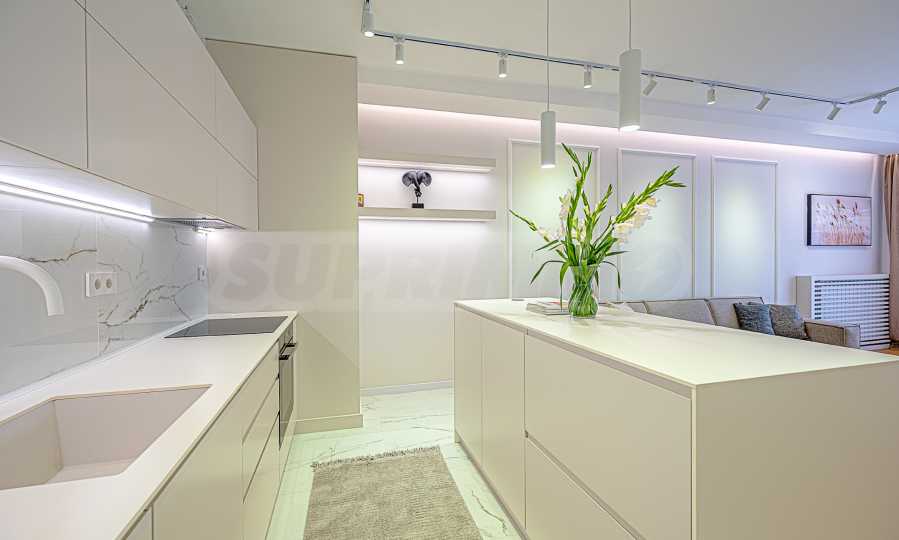 The apartment is fully furnished with high-end Miele appliances and custom-made furniture. It offers modern interior solutions with attention to every detail, which contribute to a cozy atmosphere and high quality of life. Coziness, warmth and light will welcome you in all rooms.