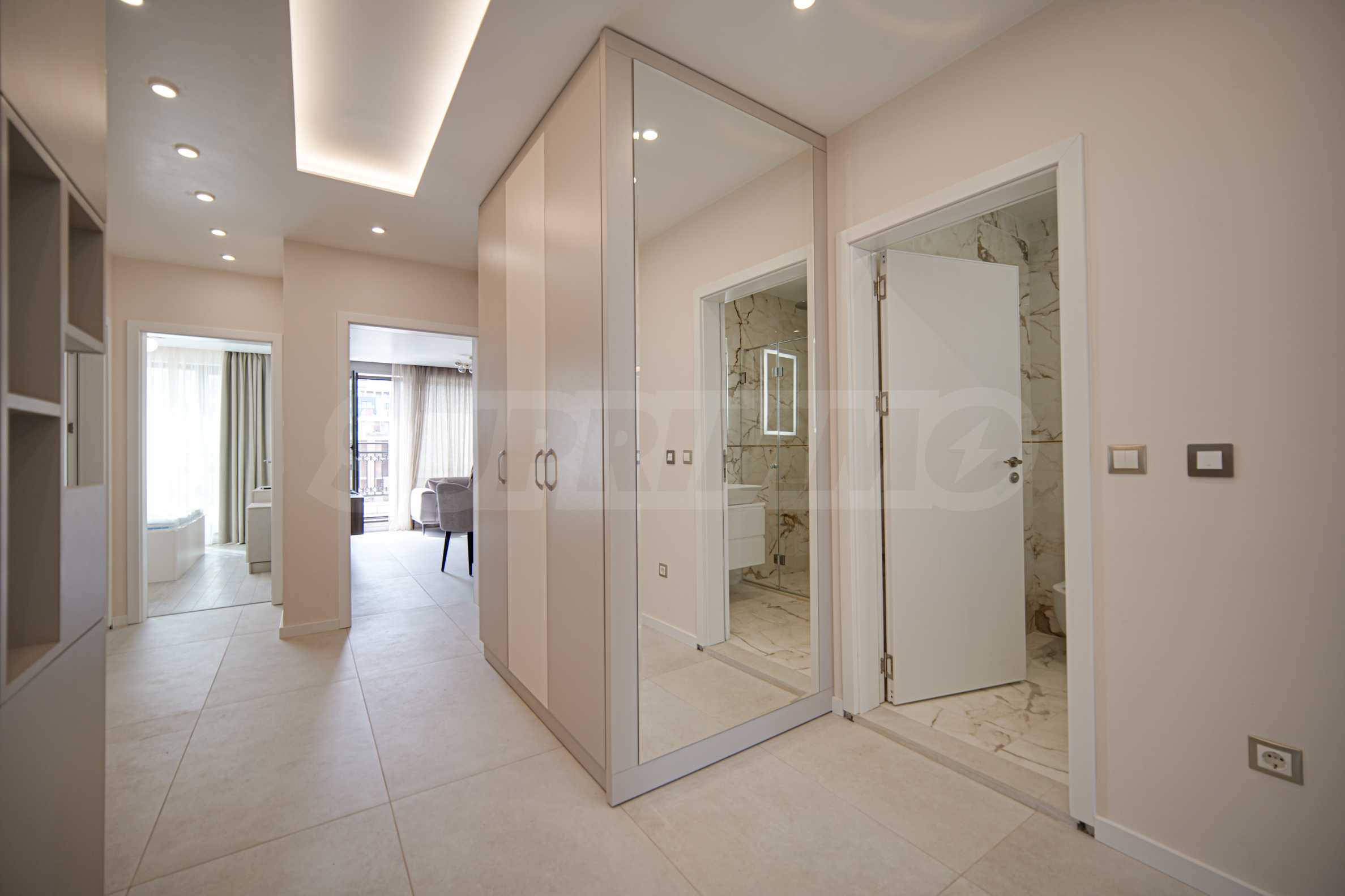 We present a brand new, comfortably furnished four-room apartment in a gated complex in Vitosha quarter, in a quiet and peaceful place with a quick exit to Simeonovsko Shosse Blvd. The location provides easy access to ring road, Paradise Center mall, Ring Mall, Vitosha Nature Park, as well as a number of hypermarkets, small shops, restaurants, cafes, kindergartens, pharmacies, banks and others.