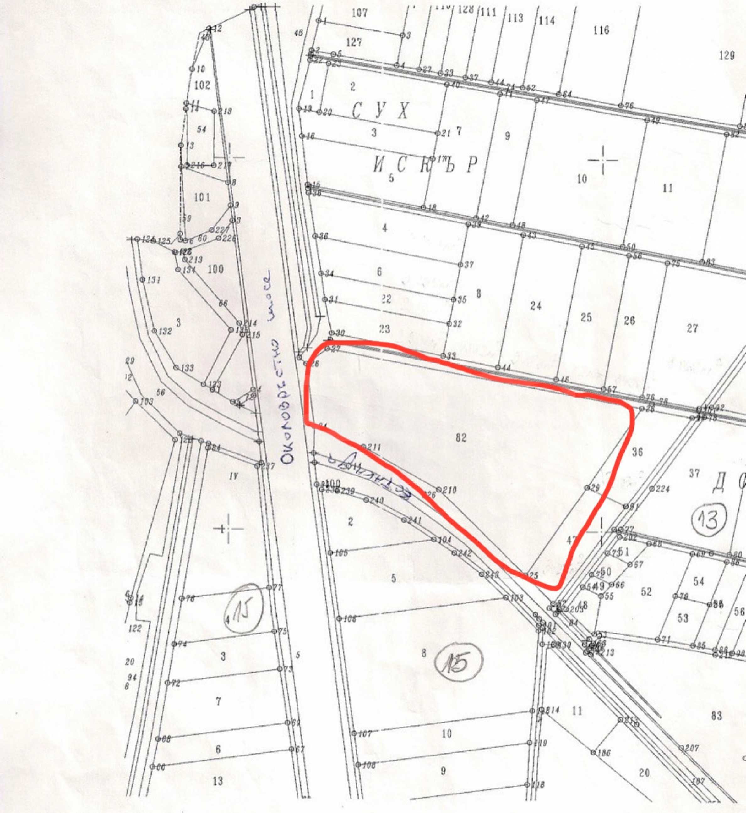 The plot faces 70 m on the ring road and 240 m on the first-class Krivina - Vrazhdebna road (next to the overpass, opposite Krivina), 150 m. from the turnoff for the new "Northern Arc" highway. An extremely communicative place, located opposite the 'Turkish Parking'.