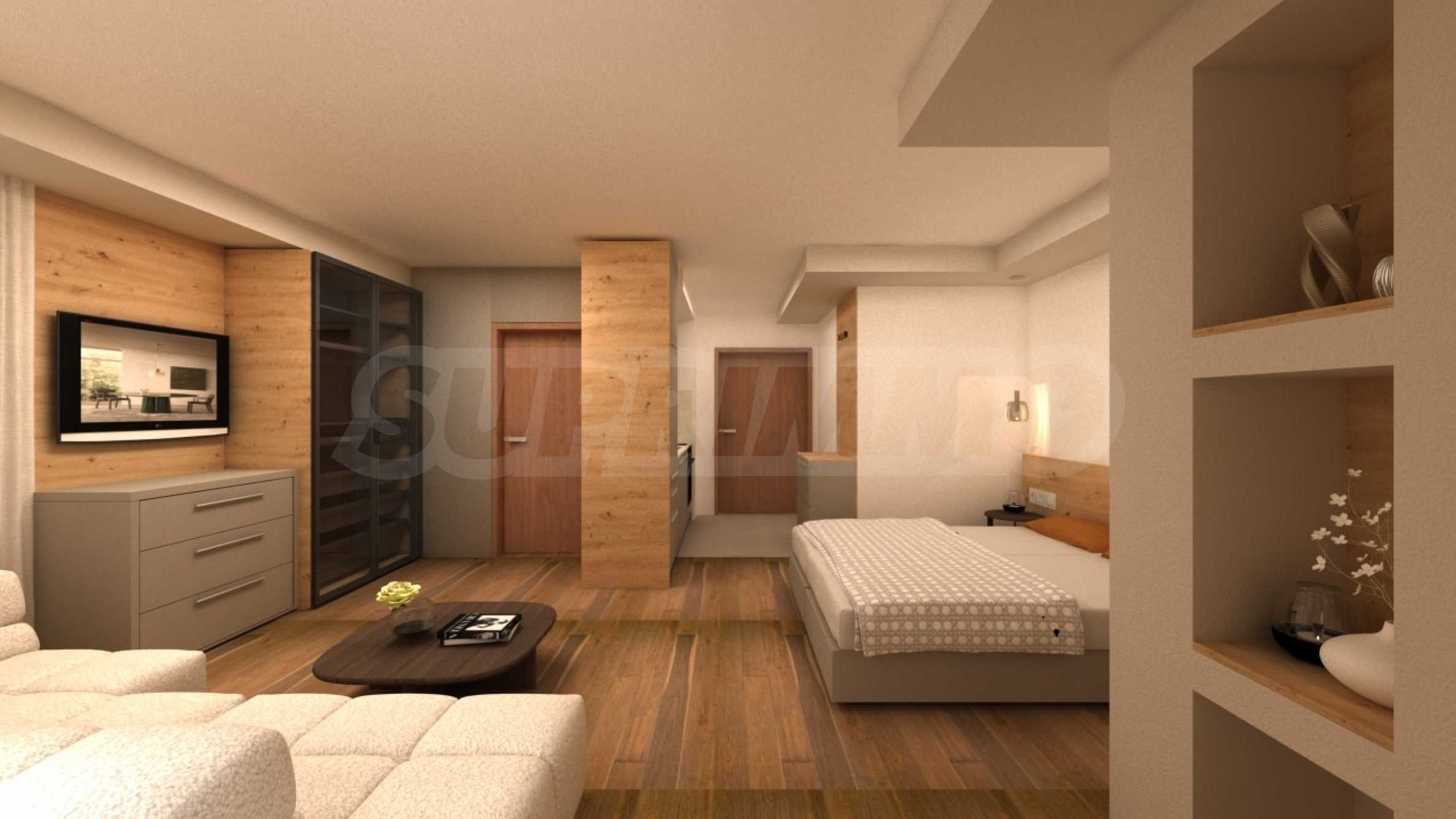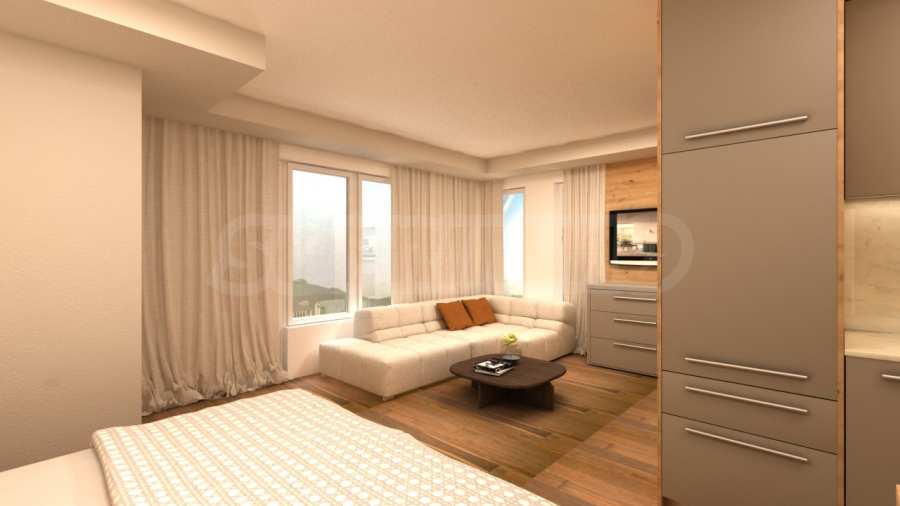 We present a turnkey one-room apartment in a new building, located only 150 m from the beach in Ravda.